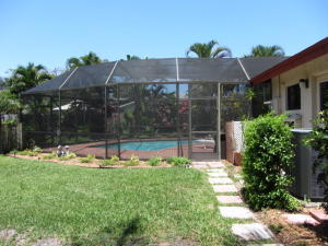 Welcome to Amberwoods. This 3BR/2BA home has updates throughout. Large kitchen with granite counter tops and stainless steel appliances. Plenty of room as an eat in kitchen, so you can make the dining area more formal. Master bedroom has a walk in closet but also has beautiful built in closets and drawers. Tongue and groove ceilings and lots of natural light throughout the home. Yard is lush and tropical, with a screened in pool and covered patio area. Walking distance to the YMCA. Centrally located and close to shops, restaurants and houses of worship. HOA is $325 per year.
