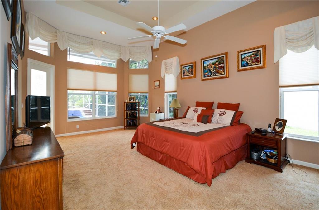 Former model home still shows like a model today! Nestled on a tropically landscaped waterfront lot in the 88 home Grand Isle neighborhood of Wyndham Lakes. Peaceful setting with no rear neighbors and breathtaking water and sunset views. Many upgrades, architectural details and pristine condition make his home special. Kitchen opens to the family room. Master bedroom is split for privacy. All bedrooms have walk in closets. "A" rated schools. Nothing to do but move in and enjoy.