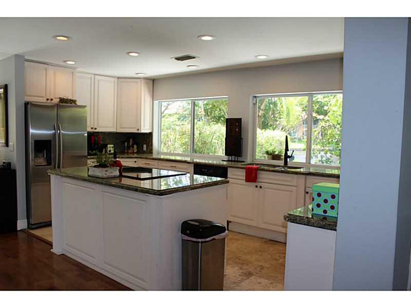 You enter your home and you are greeted by a wide open floor plan with a gorgeous kitchen and direct pool & river views! Over 150' on the river (ocean access/fix bridges) with LARGE pool & oversized 2 car garage!! This home is perfect for entertaining: la rge driveway, pool & cabana bath & LED light & a HUGE backyard. VERY relaxing environment. Wood and travertine floors. Newer roof (3 yrs), elec panel, s/s app (few months old). Built as a 3/2 it is currently converted as a 2/2 but can be converted back.
