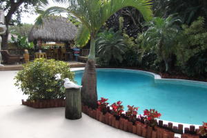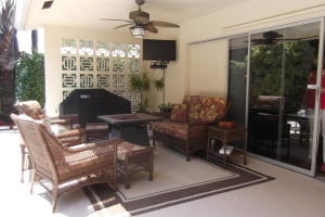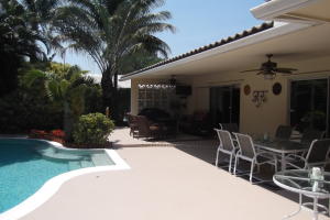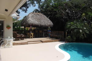 Unbelievable find in Boca Sq. 2 Bedroom 3 full baths, 2car gar. Hg. Living room & Dining area, gourmet kitchen. two Hg.Covered tiered patios,Plus Complete covered Tiki Bar. Stunning landscaped private rear yard surrounds pool & patios. Great child safe street no thru traffic. RV or boat parking OK