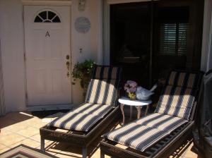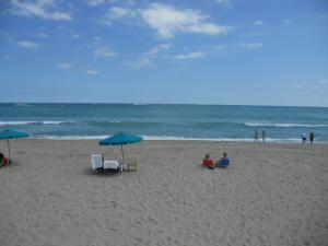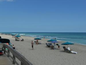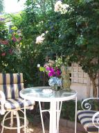 Charming cottage style beach townhouse across from Beach & Ocean. Rarely available 2BR/2.5BA has lovely private courtyard patio with SE exposure, nice BBQ area and storage shed. Updated kitchen cabinets with glass panels and decorative handles, corian-like counters, plantation shutters on front windows and custom mirrors. New air conditioner and side by side refrigerator in 2014. Half bath and laundry on first floor with large storage area under stairs. California designer has imported patio decor, which can convey. Large flowering hedge affords privacy. Low $200 per month maintenance, 4-owner building with brand new roof. Popular Palm Beach Shores location. Walk to Sailfish Marina, Ocean Mall, Shops and Restaurants. Charter fishing nearby or fish from nearby Inlet. One pet to 40 lbs ok