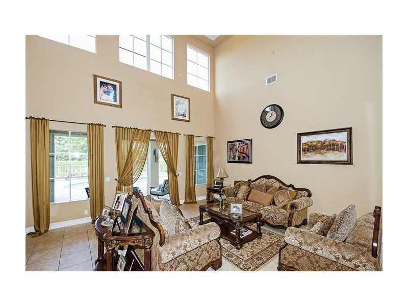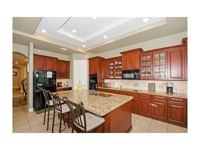 Newer kitchen featuring a large eat-off island, with pull-outs & self-closing drawers, double oven, wine cooler & wine rack. Accordion shutters on some windows, but many with impact glass, & wrought iron stair case. Free-form pool, diamond bright recently , with a surround fence & plenty of yard space. MBR & one other BDR & bath downstairs plus a den & 5th bedroom. Upstairs large BDR has doors but no closet. Owners have reversed living room & family room. Never had defective drywall. This is a 10 turnkey.