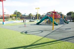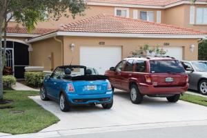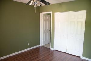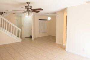 Tile on first floor, laminate on stairs and second level. There's a screened patio and huge back yard. The one car garage has a TWO car parking pad. Guard gated community features clubhouse, pool, new playground and tennis courts