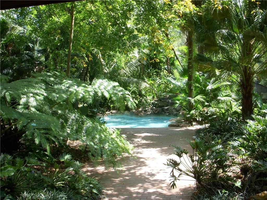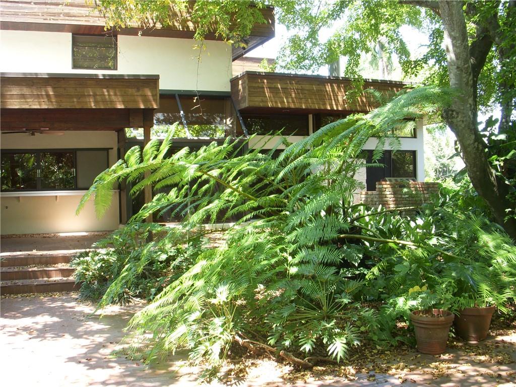 Located in Historic Plantation this custom built, Mid Century Modern style home on a builders acre is surrounded by tropical gardens.The solar heated, diamond bright salt water pool with waterfall is an oasis of serene calm. The kitchen boasts a sub zero refrigerator, solid oak cabinets, solid maple butcher block island and kitchenaid dishwasher.Office could easily be a fourth bedroom, just add a closet.Other features: fenced yard, rare exotic plants, 4 zone A/C, soaring ceilings.Must see to appreciate.
