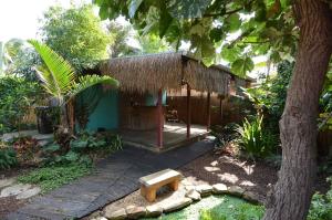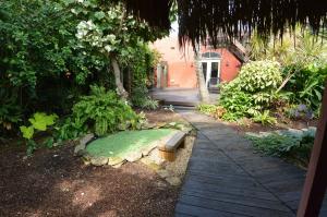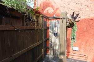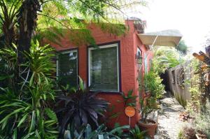 Lovely historic, Spanish-style, home built in 1928 in excellent area! This is truly a must-see, pictures do not do this place justice! Original wood floors, working fireplace-this home is full of charm! Custom-crafted Gates, Trellis and Pergolas, privacy on all sides, including new 8 foot fences along both sides. Double-lot, extra large back yard w/huge detached garage with electricity with beautiful barn-style doors. Also has fun tiki bar out back with an adorable pond. A/C is less than 3 years old, French doors lead to a wooden deck with arbor. Outdoor private shower is refreshing on a hot summer day! Lush tropical professionally-designed and installed landscaping complete with pond and many mature trees!