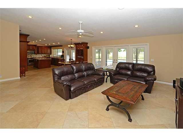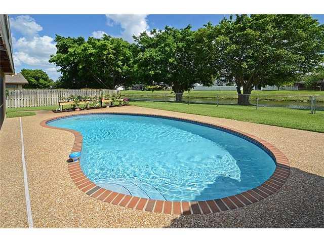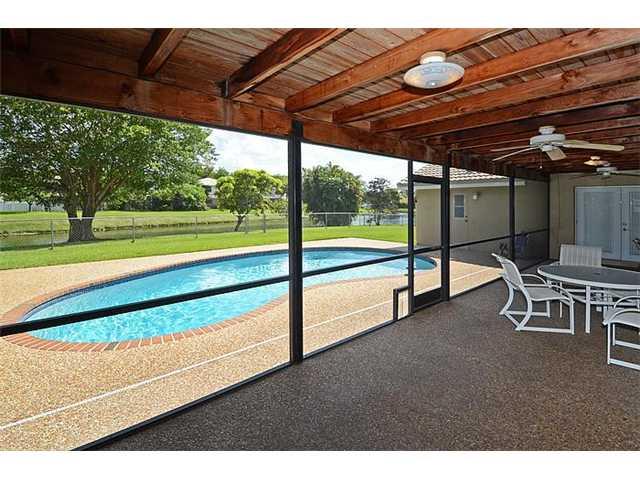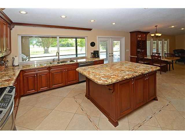 Exceptional 4/2.5 single story home with pristine water view. Screened patio w/ kidney shaped pool & oversized fenced yard. New Custom kitchen w/granite, SS appliances,cherry cabinets,tumble stone marble,built-in wine rack & storage.Recessed lighting.Diag onal 18" Porcelain tile in living areas & master.Wood floors in other bedrooms.Custom French Doors. Upgraded baths.New Roof 2007.Skylights,surround sound,new interior doors & base boards.Vaulted Ceilings. New Sprinkler pump & jacuzzi tub motor.Don't Miss!