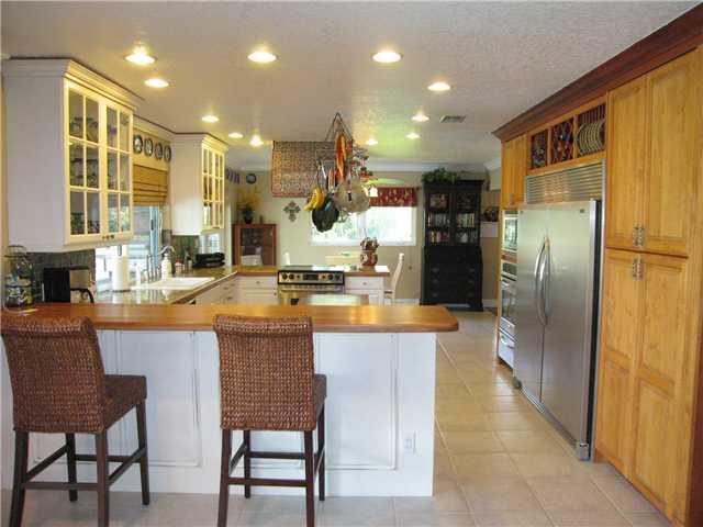 BEAUTIFUL 1/2 ACRE, CUL-DE-SAC ESTATE. 5+ CAR GARAGE! REMODELED KITCHEN WITH WOOD CABINETS, STAINLESS STEEL APPLIANCES, WITH FULL SIZE BUILT-IN REFRIGERATOR & FREEZER. 2 OVENS, MICROWAVE, DISHWASHER AND PASS THROUGH TO PATIO. CASEMENT IMPACT GLASS WINDOWS & DOORS. CROWN MOLDINGS. SPLIT A/C (AGES APPX. 1 & 5 YRS OLD). ROOF REPLACED 2001. ALL BATHROOMS REMODELED! WOOD FLOORS IN MASTER, CENTER BDRM & DEN NEXT TO DINING RM. FIREPLACE IN DEN! OUTDOOR SUMMER KITCHEN W/ GAS GRILL & REFRIG. POOL W/ WATERFALL!
