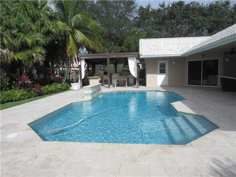 JUST REDUCED! BEAUTIFUL LAKEFRONT HOME LOCATED IN DESIRABLE CARRIAGE POINTE-A GATED COMMUNITY. GREAT FLOOR PLAN. MARBLE TILE FLOORING THROUGHOUT. UPDATED KITCHEN WITH GRANITE COUNTERS, STAINLESS APPLIANCES. UPDATED BATHROOMS, CUSTOM MASTER CLOSET. LARGE COVERED PATIO FEATURING A SUMMER KITCHEN - A PERFECT ENTERTAINING SPOT. POOL WITH WATERFALL. 4TH BEDROOM IS BEING USED AS AN OFFICE (HAS NO CLOSET). CORNER/CUL-DE- SAC LOCATION. OVERSIZED LOT WITH LUSH TROPICAL LANDSCAPING. DON'T MISS THIS GREAT HOME!