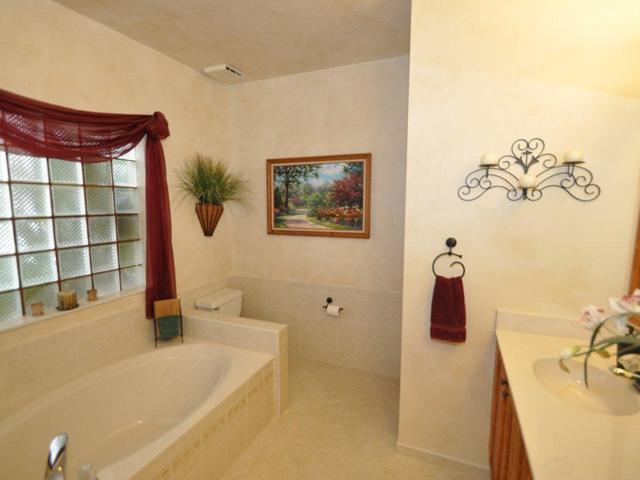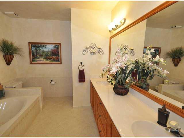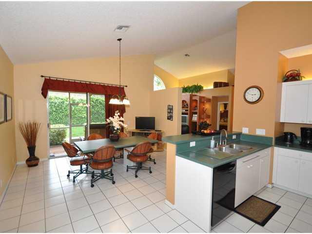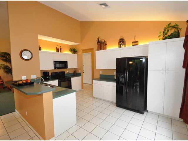 One story home with pride of ownership, volume ceilings, split bedroom floor plan. Newly painted exterior, fully fenced yard with room for pool and screened patio. Hurricane shutters thru-out including garage doors; remodeled master bath, Washer and drye r are 2 years old; eat in kitchen with newer appliances, a/c units have been replaced. Community play area with club house, pool + exercise room and walking distance to park. Manned gated community.