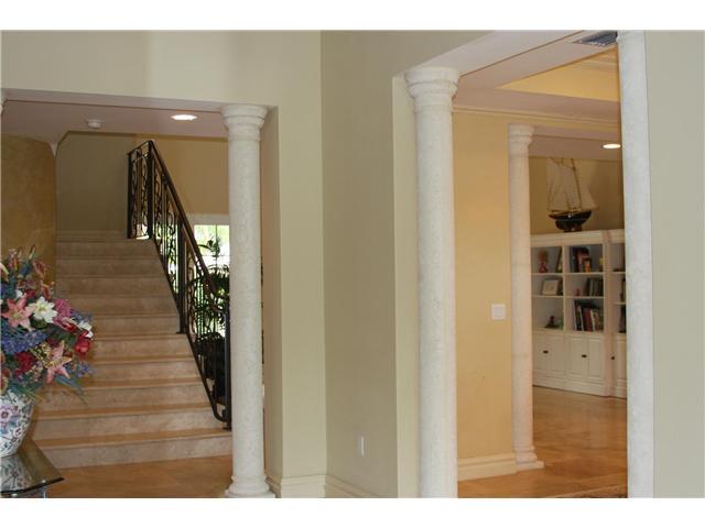 Agents see broker remarks. Spectacular gated Mediterranean all suite home in S. Grove, featuring 24" marble floors, Keystone columns, beautiful marble slab turned staircase. Gourmet kitchen w/ attached family & brkfast area, superior appliances, granite countertops, large island, wine cooler, walk-in pantry. Cherry cabinetry throughout. Master suite w/ private terrace overlooking tropical pool/spa. Lg 2nd fl. den/family room. Impact windows & doors, security sys. Gated fenced yard. Must see!