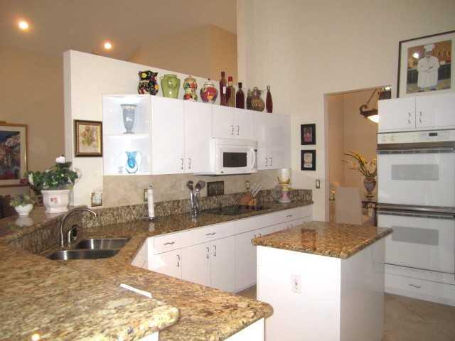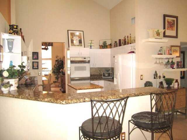 Privacy is the specialty in the backyard of this Hm. Located in a gated community with three separate entrances. Tennis & Golf Memberships Available. Community Playground. New Roof 2011 & Dramatic high ceilings accent the Split layout. White kitchen w/ Gr anite counter tops & Center island workspace. Tile floors that look like marble. Large Laundry w/ sink & Cabinets. Custom wall unit in FR. Bay window in Good Morning Rm. Large huge covered patio overlooks waterfall pool. Beautiful area for entertaining!