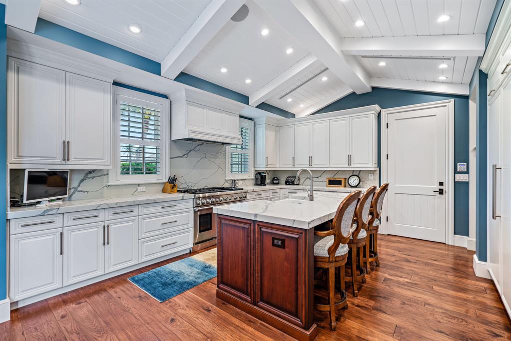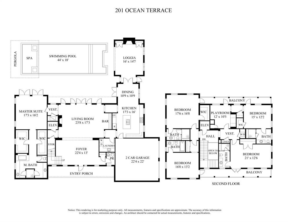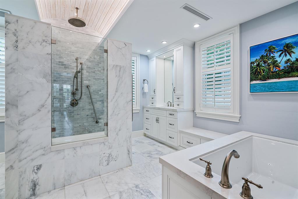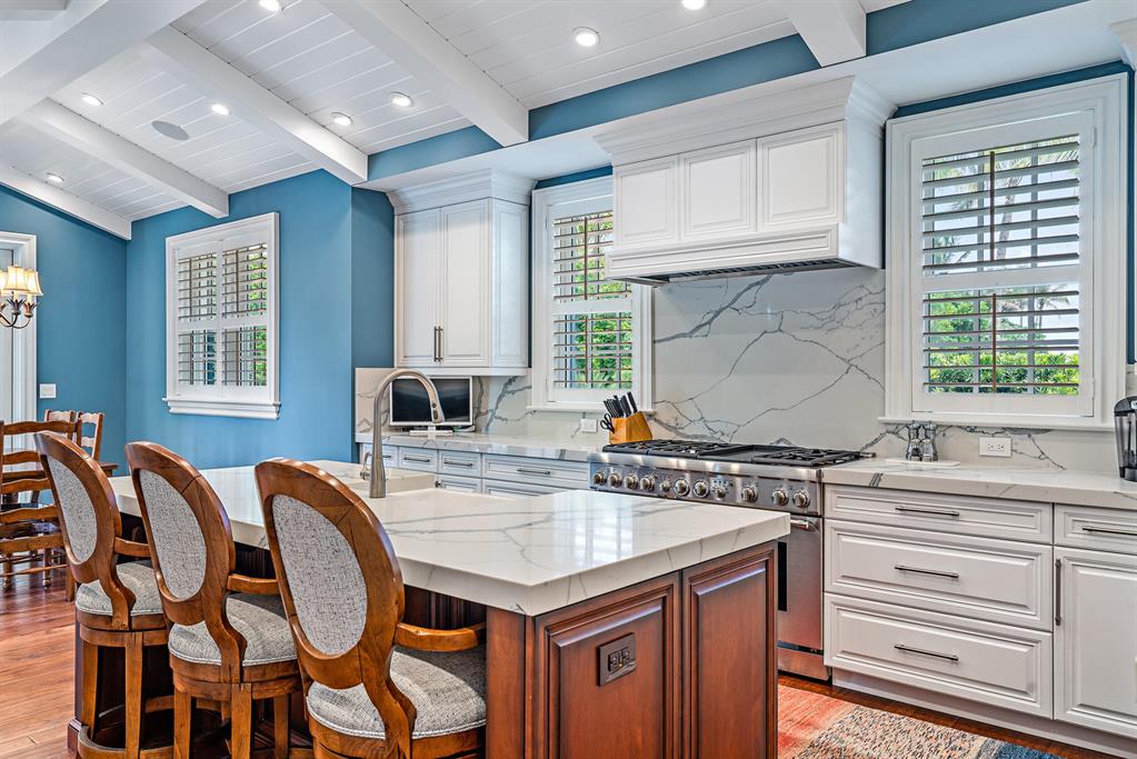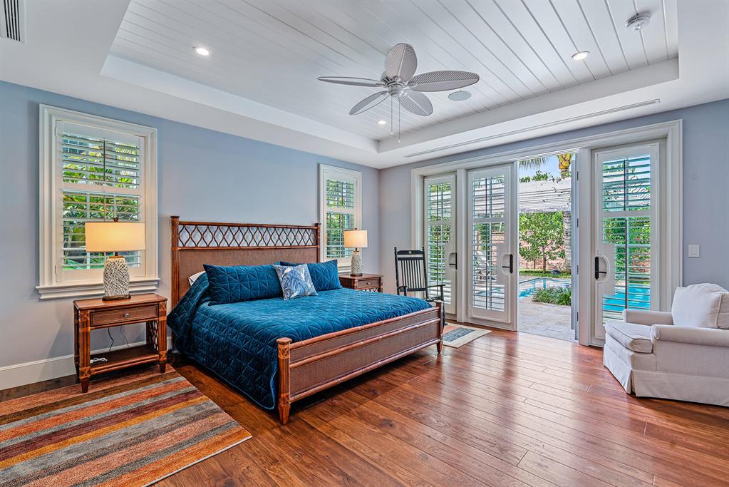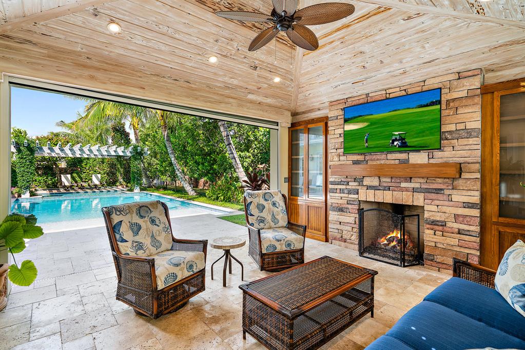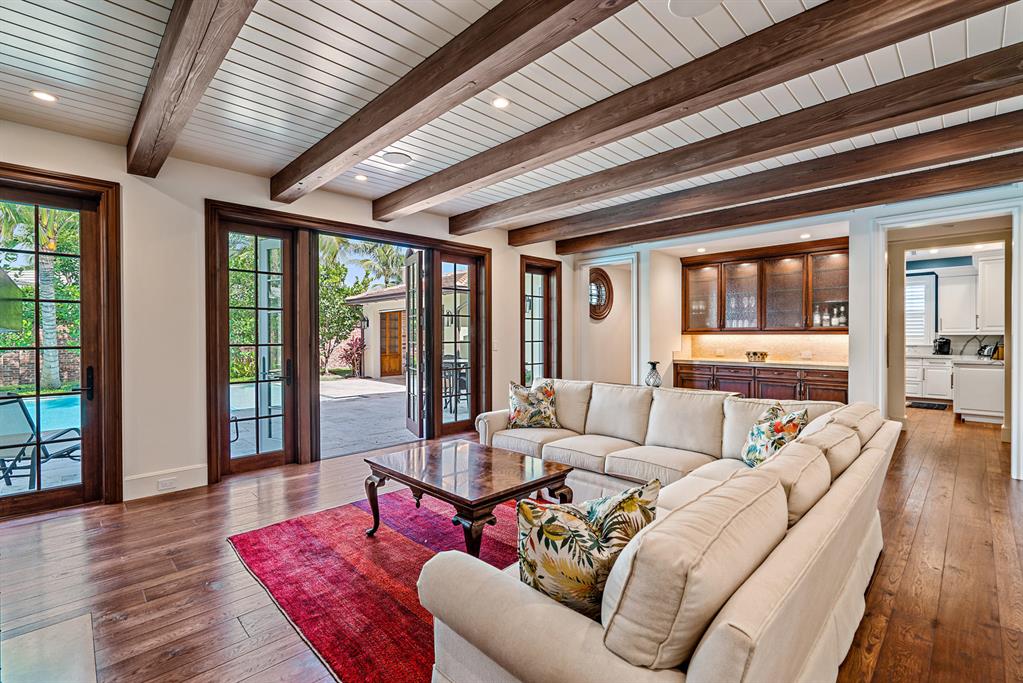 Spectacular Monterey syle 5BR home built in 2019 is the quintessential North End famiily beach house with Cabana rights. Loaded with charm and unique details ch as baclonies off the 2nd story bedrooms each with phantom screens, the outdoor living room with pecky cypress vaulted ceiling and fireplace, pool with a sun shelf surrounded with coquina decking and seating area, a spa under the pergola, koi pond, first floor master suite, phantom screens and vaulted wood ceiling in the kitchen & dining areas, Thermador appliances, dark stained, varied plank oak floors on both stories, plantation shutters throughout, Lenox AC controls SONOS system. Elevator, Kohler generator, 2-car epoxy floor garage complete this superb offering.
