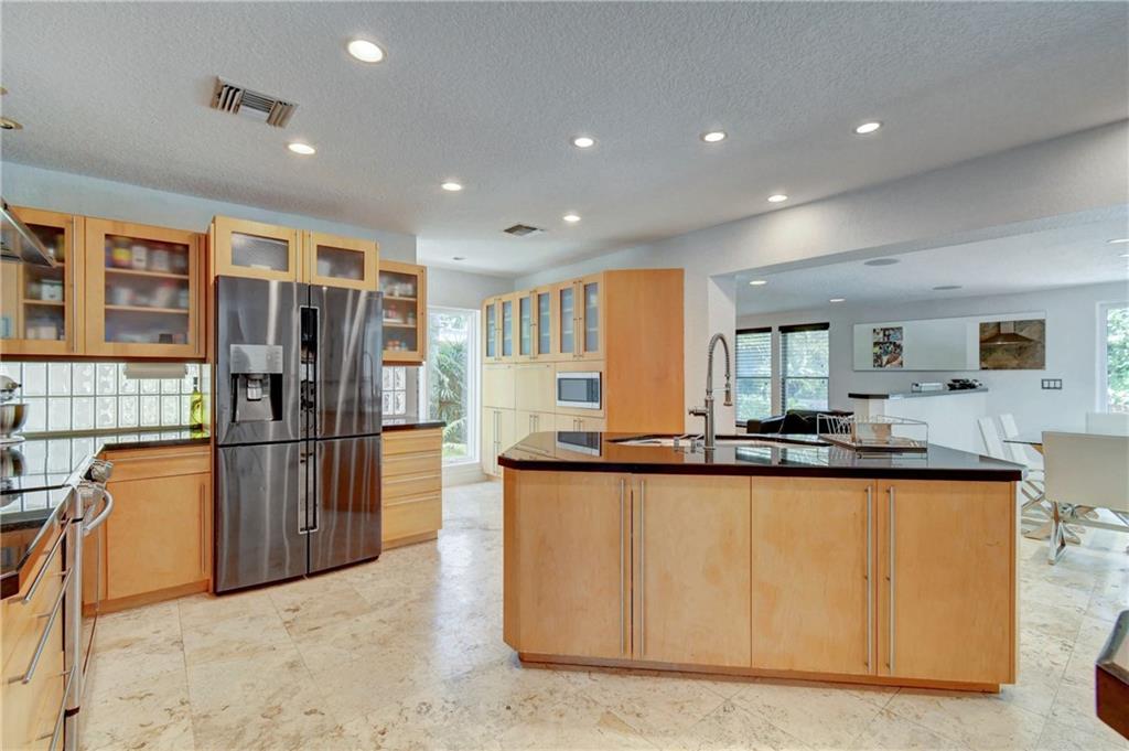 Ocean access with plenty of room for a pool. 80' of frontage nearly completely bordered by private dock space. This 3/2.5 has been converted to a 2/2.5, but could easily be reconverted without compromising the ultra modern, open floor plan this home boasts. Greeted by Intracoastal views through the over-sized hurricane impact windows and doors of the main living space, this meticulously maintained home is missing nothing more than your personal touches. New a/c units and tankless water heater: matching Samsung appliances: custom wood cabinetry: granite counter tops: natural stone floors throughout: Hunter Douglas blinds: paved circular drive and deck: Anderson windows and whole-house hurricane shutters offer everything you want and the practicality of what you need in your new home.