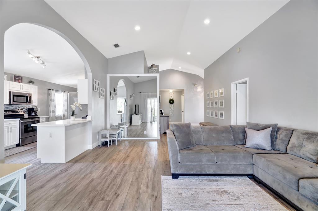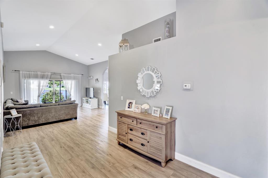 Spectacular lake front home that has been renovated and is move in ready. You will fall in love with the open concept layout featuring vaulted ceilings and split bedrooms floorpan. Large covered screened in patio offering stunning sunset views from every room across the back of the house. Modern updated bathrooms, waterproof & scratch resisted vinyl flooring throughout, beautiful white kitchen with newer appliances. Custom built in closets,Recessed lighting, accordion shutters, artificial turf making the yard ideal for children and pets! Huge bonus 4th bedroom originally garage converted by the builder with plenty of storage area. Newer AC, water heater & roof.Conveniently located next to the community pool & playground. CALL LA AGENT FOR APPOINTMENT. NO SHOWINGS UNTIL FRIDAY BY APPT ONLY