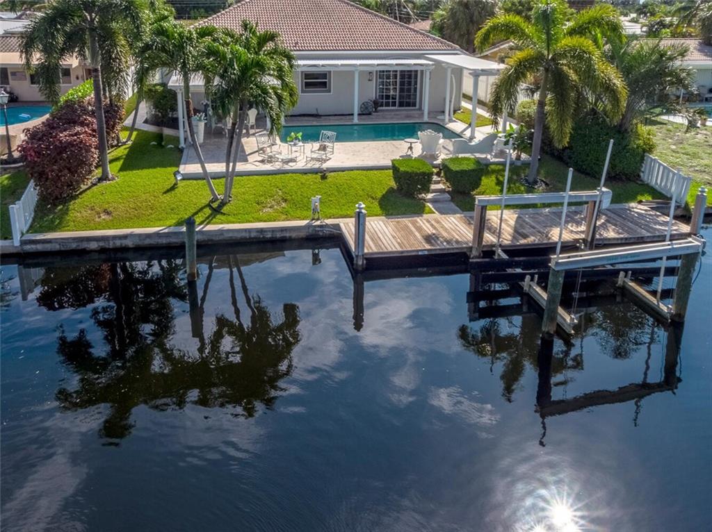 Beautiful 2008 constructed home with high ceilings, incredible open floor plan with 70 ft on the waterfront, new dock & 12k boat lift! Great curb appeal and grand entryway. All bedrooms are suite style with full baths. The kitchen offers solid white wood cabinets, stainless appliances, new backsplash with breakfast bar. The master suite has a sitting area and sliders to the pool. Master bath has a jacuzzi tub and shower combo. All rooms are a great size and have a nice flow. All impact windows and doors throughout. The backyard has a large pool with muti-color lighting, incredible sunsets, covered patio & pergola's. The home can be sold turnkey furnished. Decorated professionally by Boca Lavish. The home is bordering the incredible Pompano Beach CRA! Located on a wide private canal!