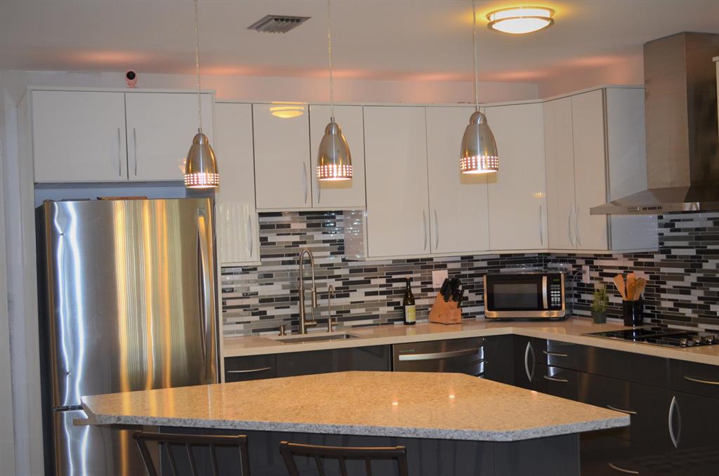 Amazing remodeled open concept 3/2 corner lot pool home with 2 car garage. Ready for new owner! This home can easily be converted to 4/2 (owner willing to add a closet to possible 4th bedroom/bonus room). New quartz kitchen countertops, high gloss cabinets all with soft close/including trash bin drawer and stainless steel appliances with vented hood-a cooks dream kitchen with plenty of storage! 24 x 24 porcelain tiles throughout the main living space. A/C replaced in May 2016, hot water heater is brand new