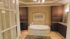 Original home rebuilt in 2003 into a Mediterranean family retreat in sought after Palm Beach Farms! Large open/split floor plan boasts 4 bedrooms, 3 1/2 baths, indoor laundry room, luxurious master suite with bay window, ensuite master bath with his and hers vanities, spa tub and separate water closet and shower. Voluminous 12' and 15' ceilings and marble and wood floors. Three sets of french doors open onto a spacious lanai, custom pool and patio added in 2005. Natural stone paths meander throughout the lush, tropical and professionally lit landscape. New AC units and water heater. Tons of attic space with drop down ladder access from garage. Short stroll to neighborhood park. Elegant designer touches throughout. This one's a must see!