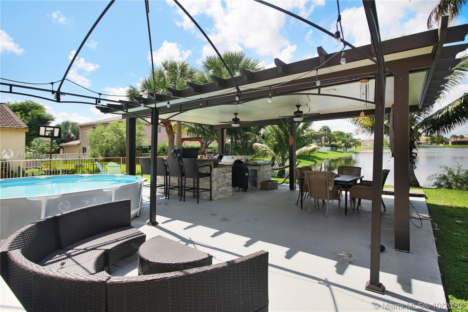 Walk in and feel right at home in this lovely waterfront property with the most gorgeous lake view! Enjoy endless and absolutely stunning sunset water views while entertaining friends and family at the outdoor Pergola Kitchen! Reside in the coveted Silver Falls of Miramar and enjoy all it's amenities like Pool, Tennis, Gym, Basketball and Playgrounds. Property upgrades include remodeled kitchen, newer floors, Rainsoft Water Filtration system and UV Light AC system.