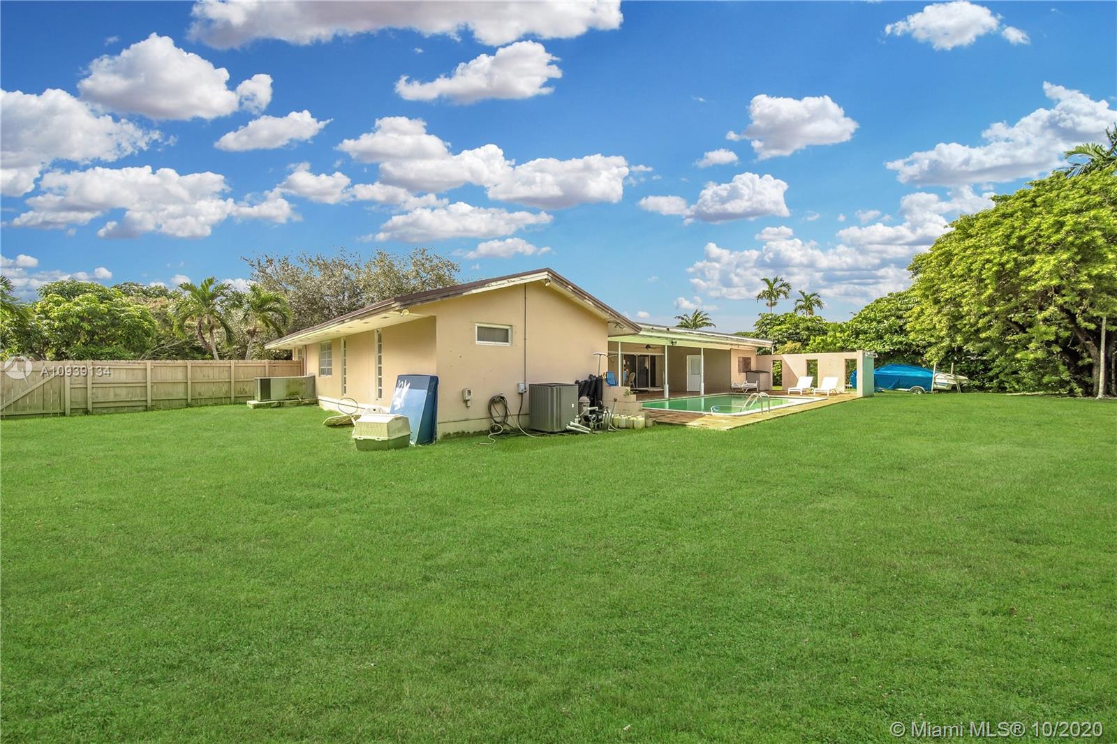 Don’t miss out on the opportunity to own this beautiful ranch style home! Enjoy a half acre of land in the Village of Pinecrest on a quiet residential street. It features 4 spacious bedrooms and 2 baths. Bonus den, which can be used as a home office, overlooking the huge yard! Plenty of space to park your cars and boat on the extended driveway plus the 2 car garage. Spanish tile. Top school district. Newer roof. Luscious backyard with a pool, perfect for entertaining. Come see it and make it your own!