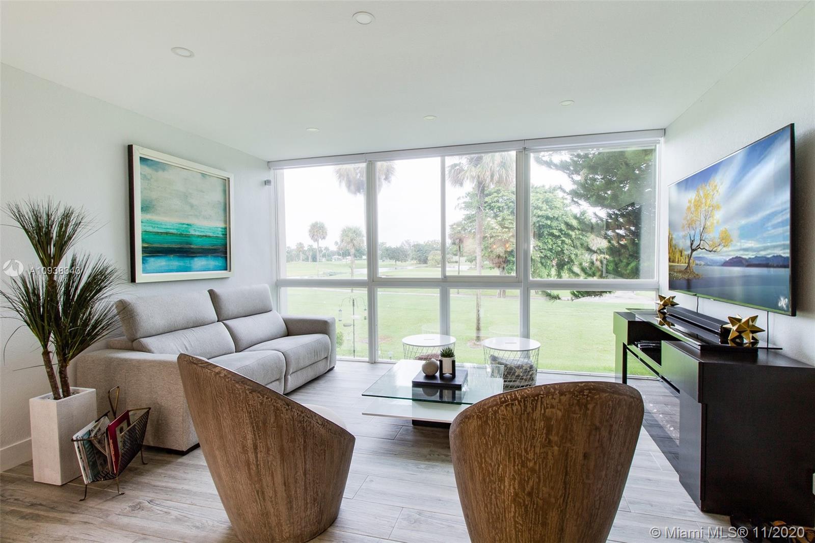 This turn-key, immaculate, NY-style tri-level 3/3 home has been beautifully modernized. Situated on the Country Club of Miami Golf Course that hosted the 1991 PGA tournament, this home's renovation and remodeling shows excellent taste and true attention to detail. There are too many upgrades to list, among which are new porcelain floors, impact windows with high-end window treatments, custom closets, customized handrails, new AC, electric water heater, washer/dryer. The first floor of the unit has full-size kitchen and bathroom and separate entrance. Corporate owners welcome but can only rent out for max of six-months out of the year after owning one year.