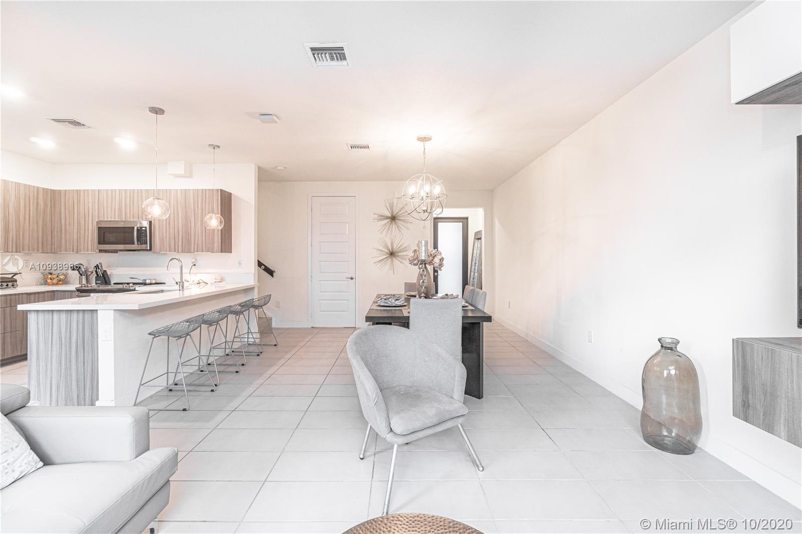 3 BEDROOMS AND 2 1/2 BATHROOMS. Unit merges the vibrant lifestyle of a new city with a modern design and bright layout. Walk into large common areas featuring Eureker Spanish porcelain tile throughout the unit. Modern kitchen with quartz counter-tops, European cabinets and stainless steel appliances. Family room leads to a fenced backyard that requires low maintenance thanks to traffic master Truegrass. Second floor features 3 bedrooms, spacious walking closets and upgraded bathrooms. Live worry free in this unit that makes your life easy with smart home technology. Clubhouse is considered one of the best in the State of Florida.