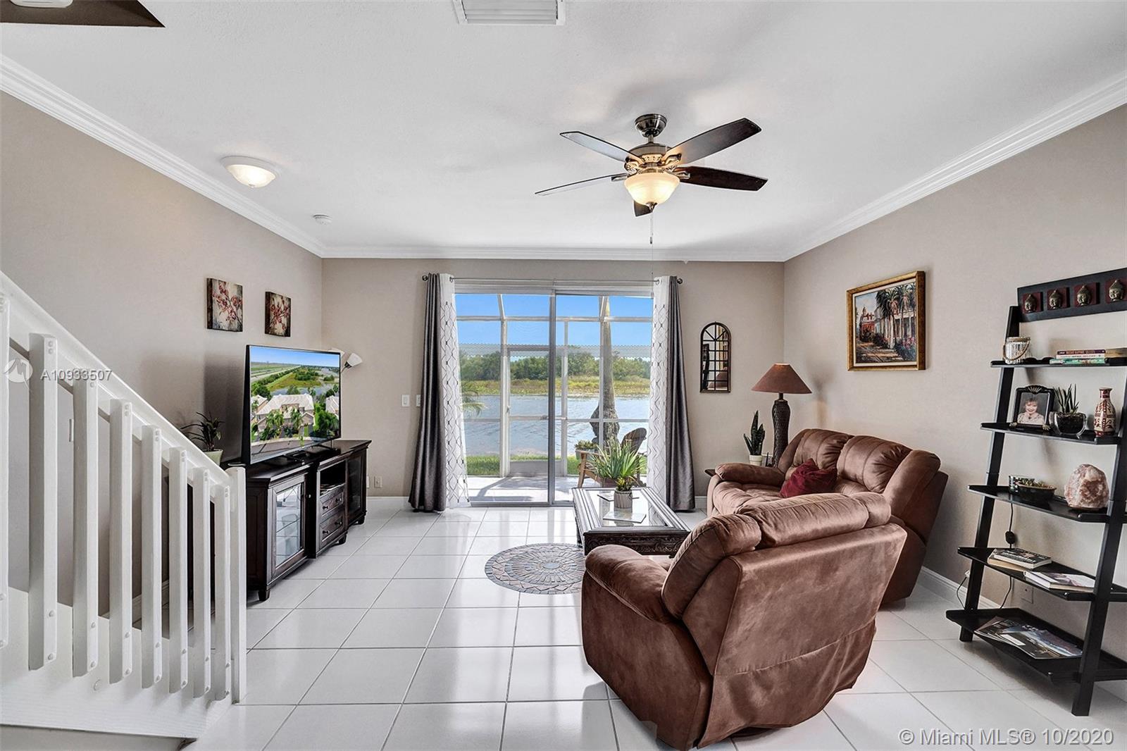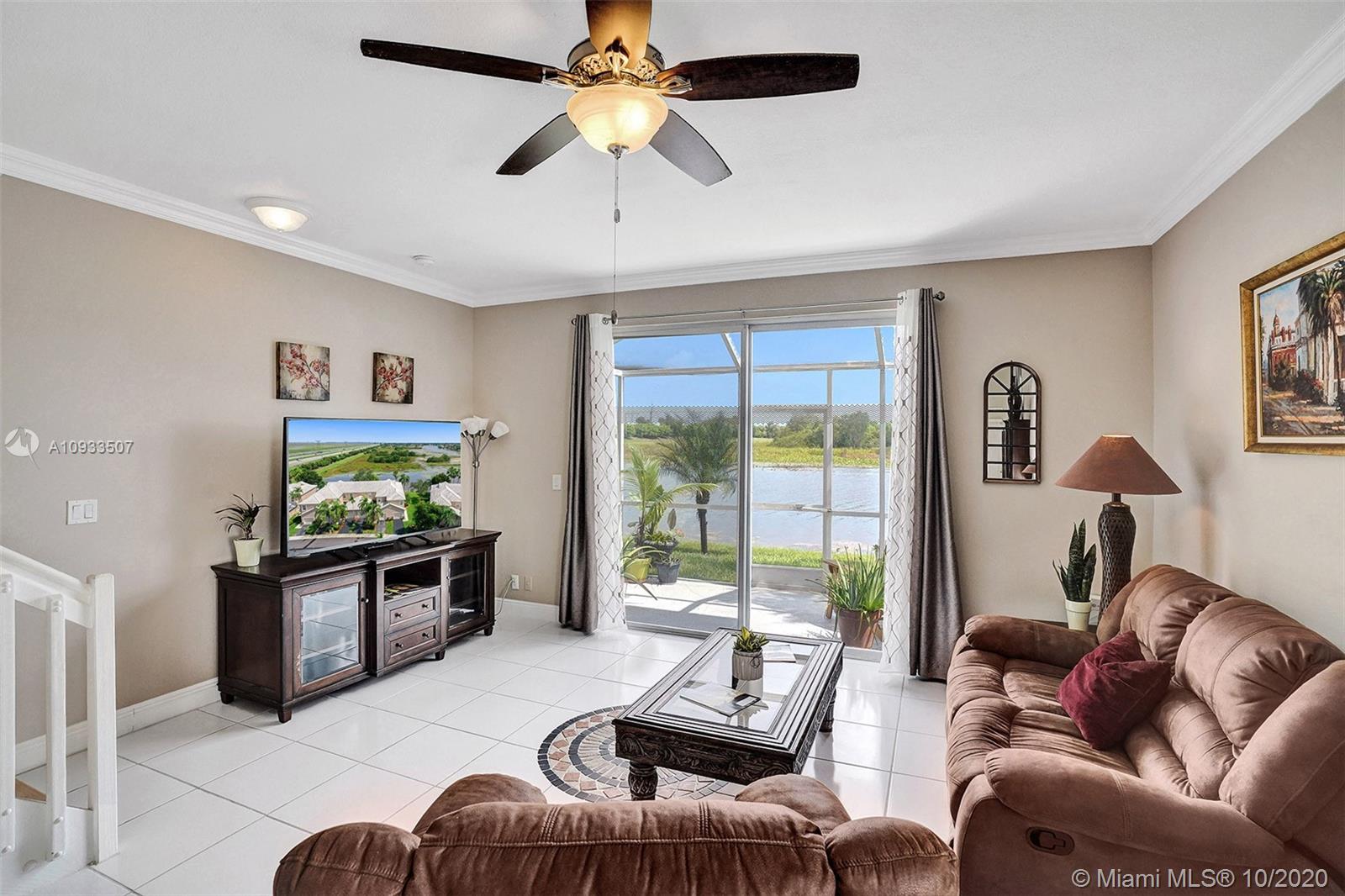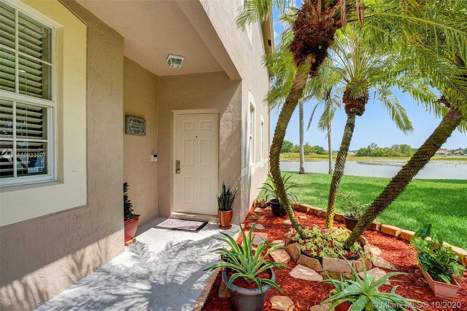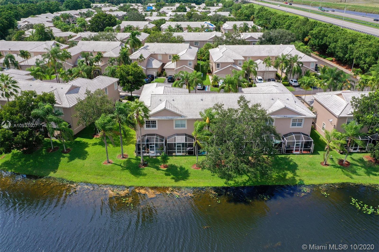 Enjoy beautiful lake views from the screened patio of this well-maintained 4 bedroom, 2.5 bath townhome in San Messina. Upgrades galore. Eat-in kitchen with updated cabinets, soft close drawers, granite countertops & stainless steel appliances. Tile floors downstairs, wood laminate on stairs and bedrooms. All bedrooms upstairs. Updated bathrooms. TRANE a/c system with UV light. Oversized one car garage allows for tons of storage. Samsung Steam front loader washer & dryer in garage. "Smart" garage door opener. HOA amenities include community pool & tot lot. Easy access to highways, shopping & dining. Publix & Imagine Charter School across the street. All A-rated Weston schools. This gem is truly move-in ready! A pleasure to show! See attachments for floor plan, HOA info & Feature Sheet.