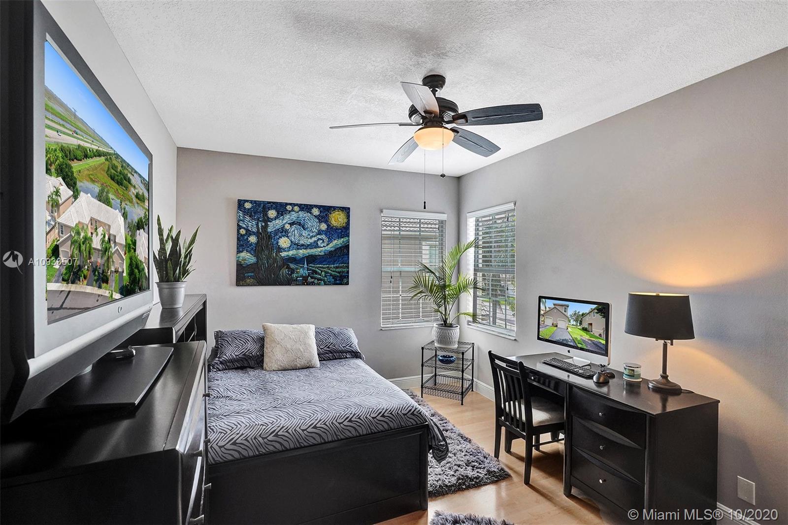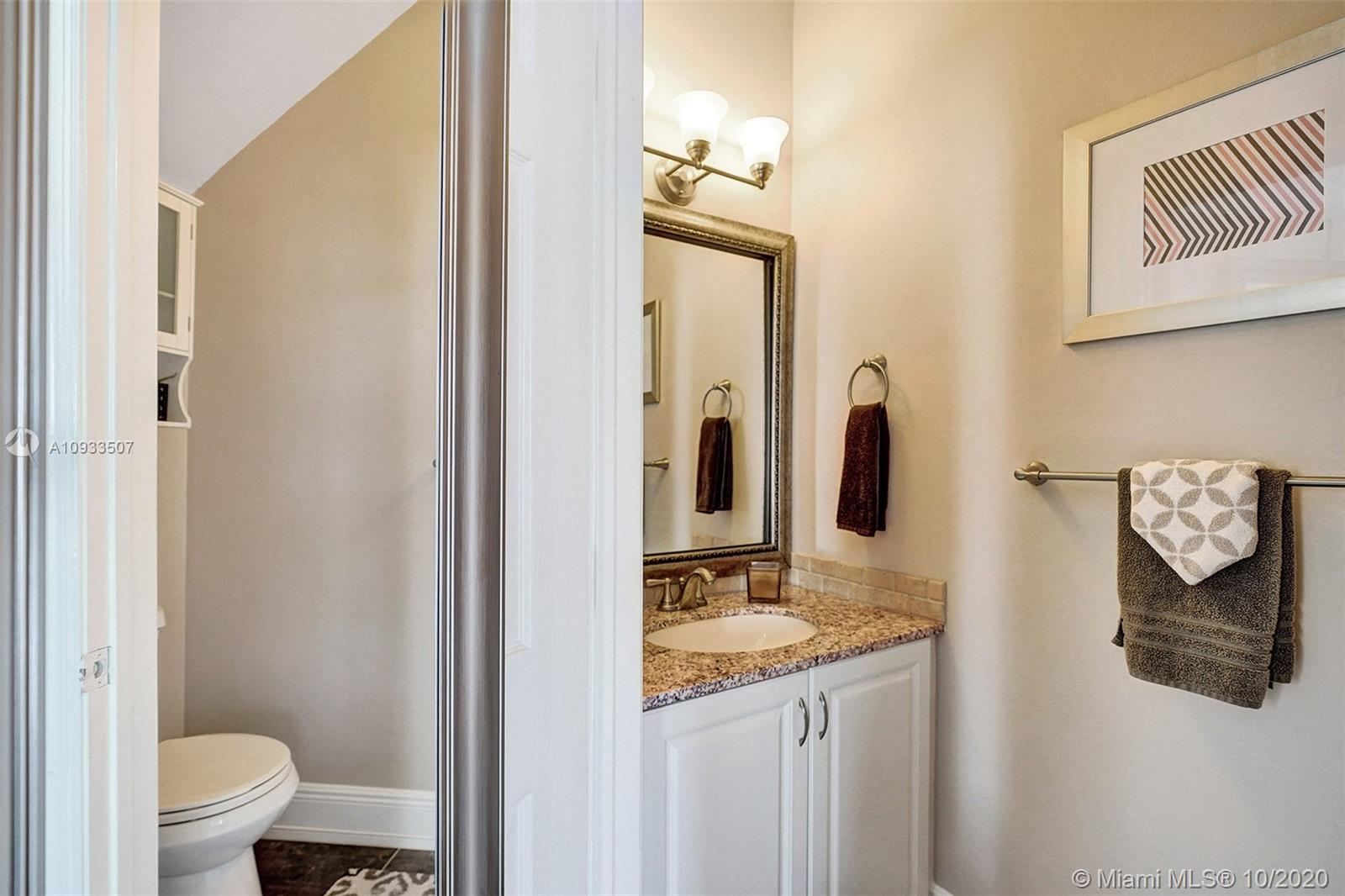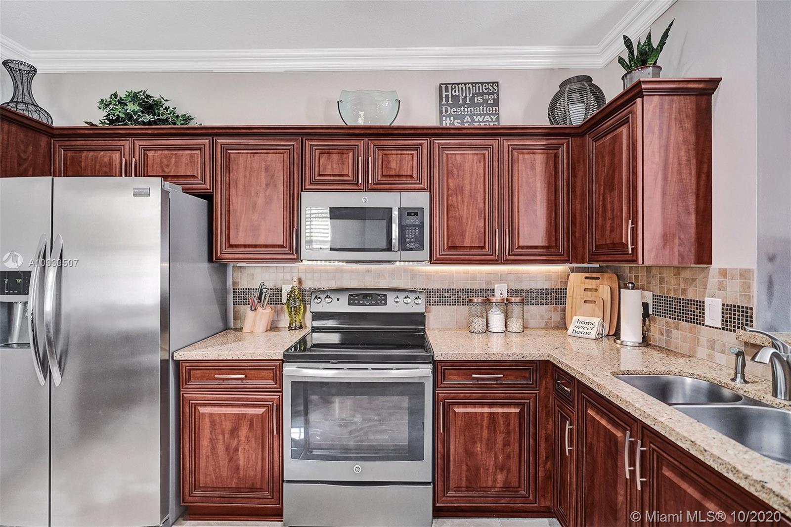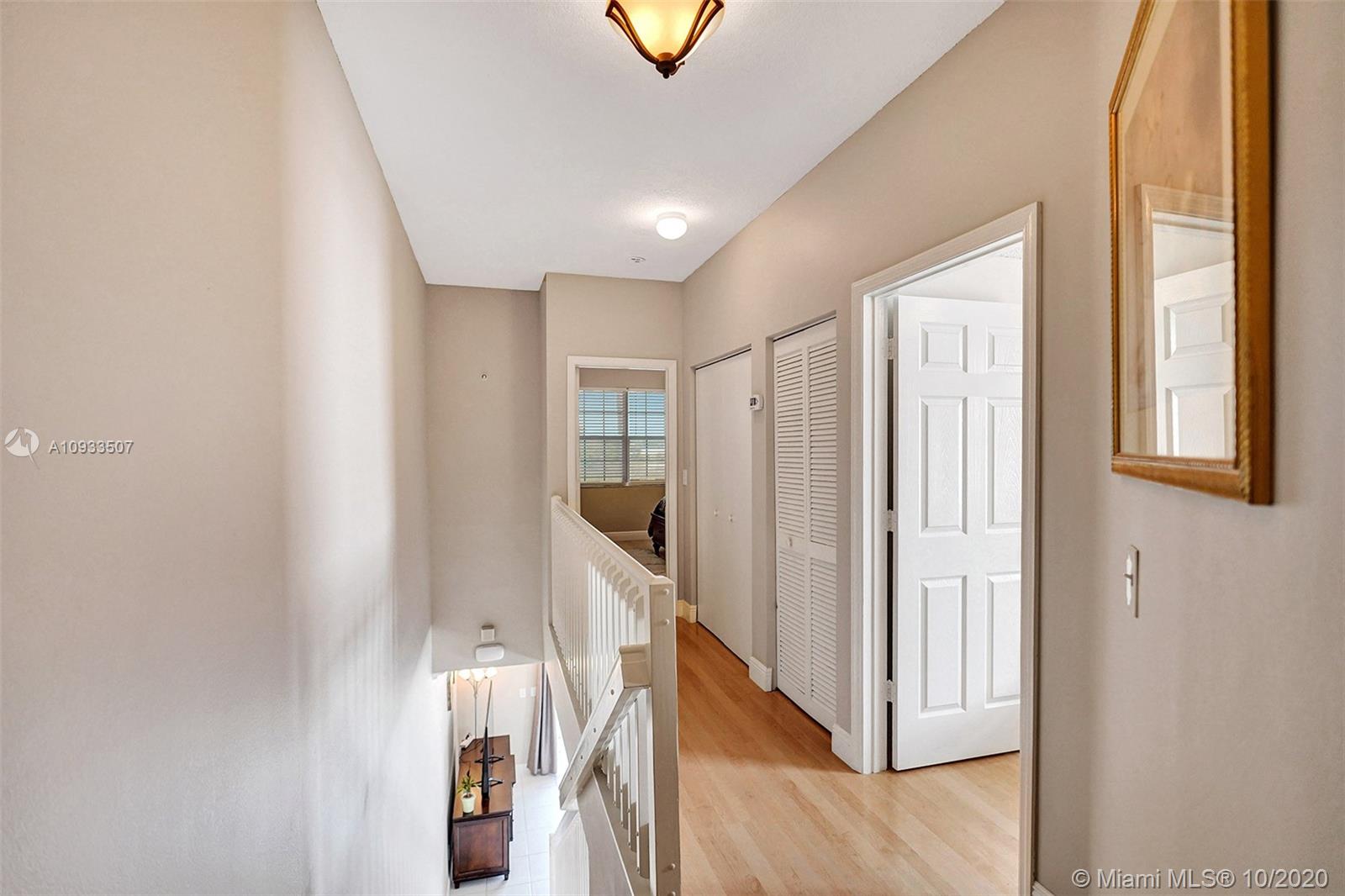 Enjoy beautiful lake views from the screened patio of this well-maintained 4 bedroom, 2.5 bath townhome in San Messina. Upgrades galore. Eat-in kitchen with updated cabinets, soft close drawers, granite countertops & stainless steel appliances. Tile floors downstairs, wood laminate on stairs and bedrooms. All bedrooms upstairs. Updated bathrooms. TRANE a/c system with UV light. Oversized one car garage allows for tons of storage. Samsung Steam front loader washer & dryer in garage. "Smart" garage door opener. HOA amenities include community pool & tot lot. Easy access to highways, shopping & dining. Publix & Imagine Charter School across the street. All A-rated Weston schools. This gem is truly move-in ready! A pleasure to show! See attachments for floor plan, HOA info & Feature Sheet.