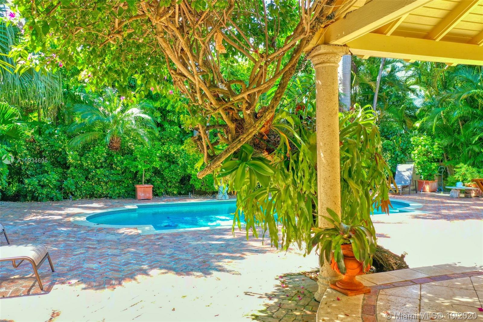 Located in the best part of Pine Tree Dr, the house is surrounded by a lush garden with mature trees, offering true privacy to its newly constructed pool and covered patio. Inside, the main floor has a formal living room and dining room, galley kitchen, bath and a large family room. (could be made into a master bedroom) Upstairs there are 3 bedrooms and 2 full baths, all with restored original wood floors and an east facing terrace. Impeccable condition. Impact windows throughout. Heated pool, swim current, salt chlorination system, mosquito system, 3 zone a/c No garage Walking distance to Pine tree park, Fisher park and kid's friendly Lakeview neighborhood, and only 1 speed bump!