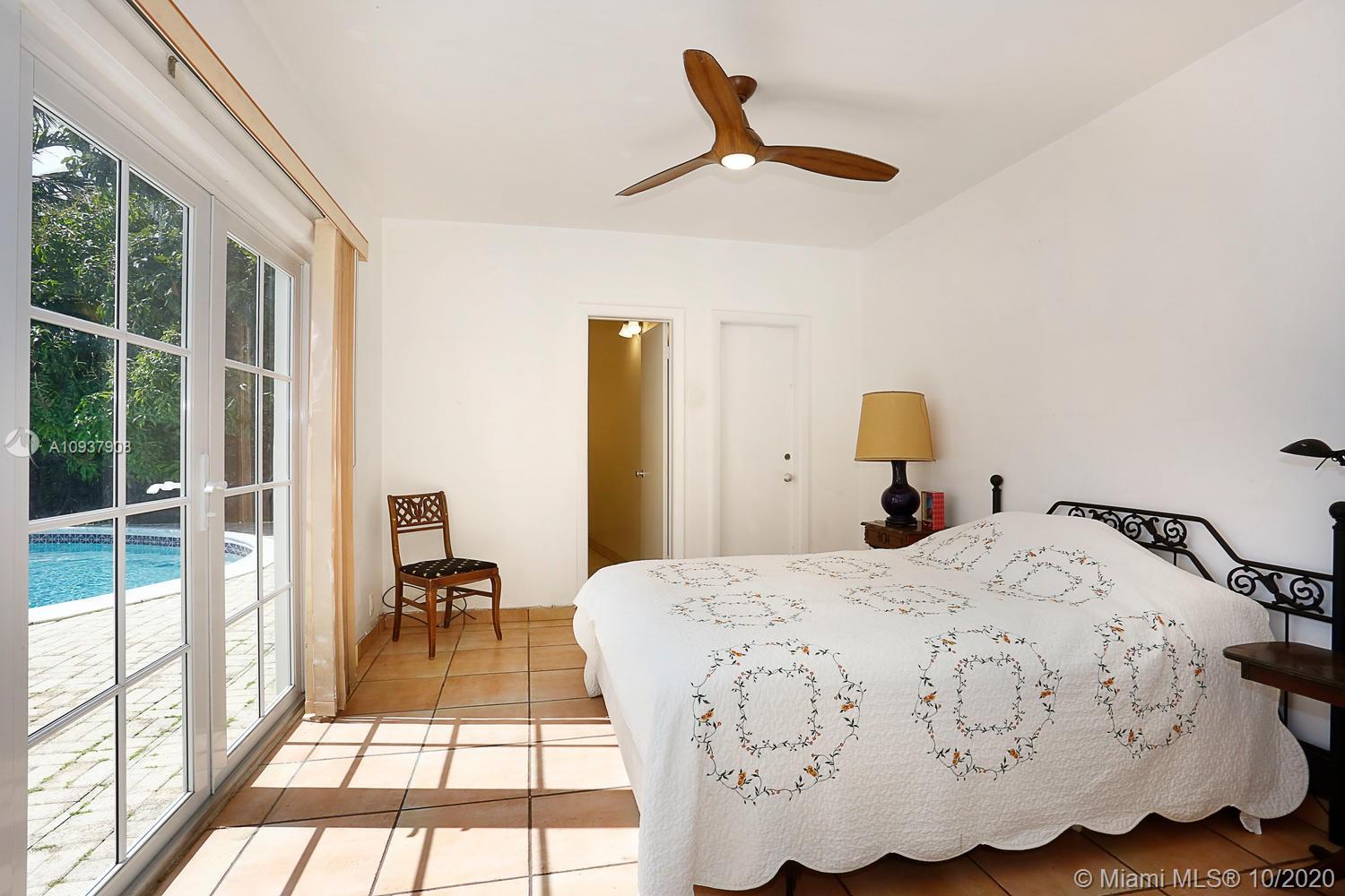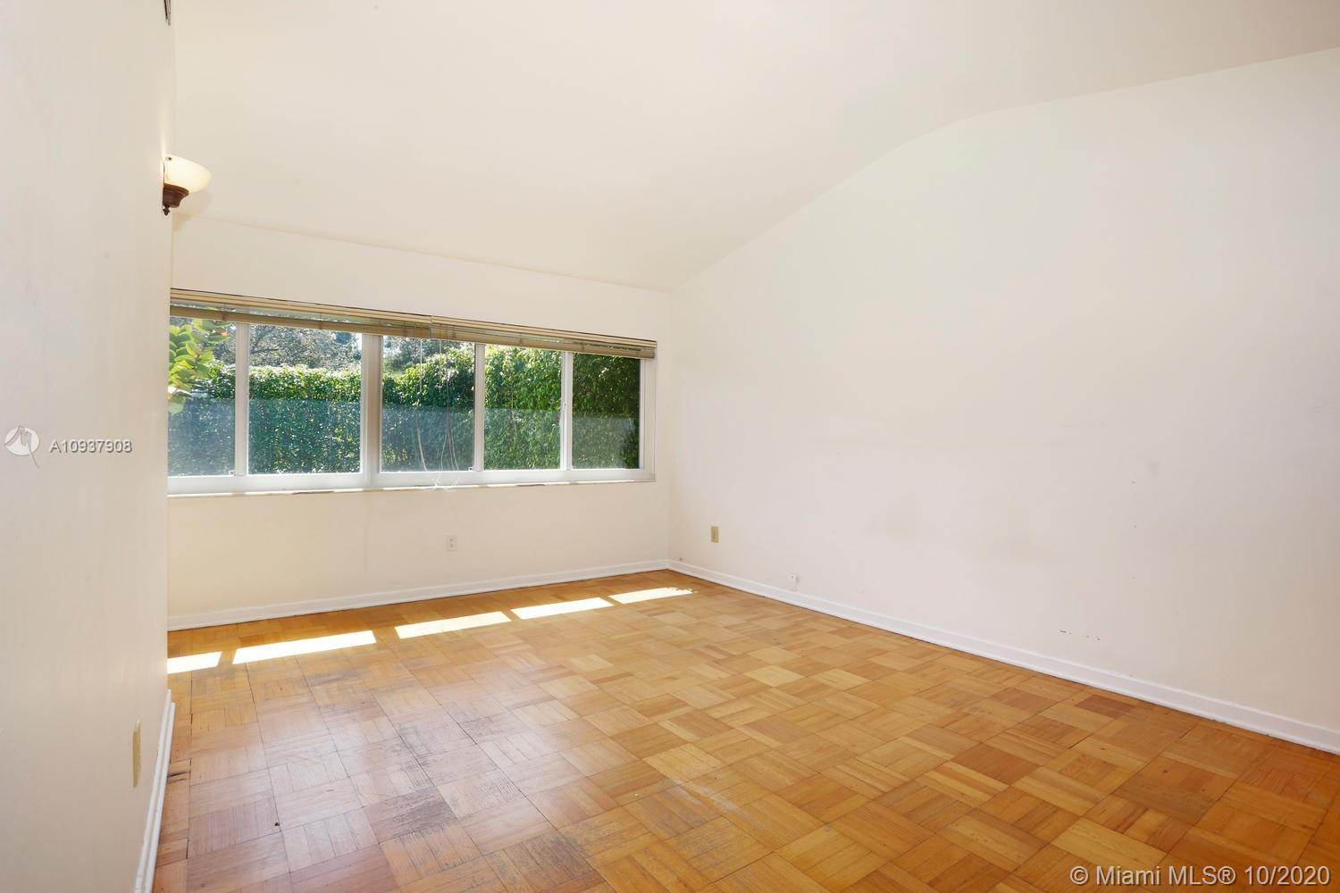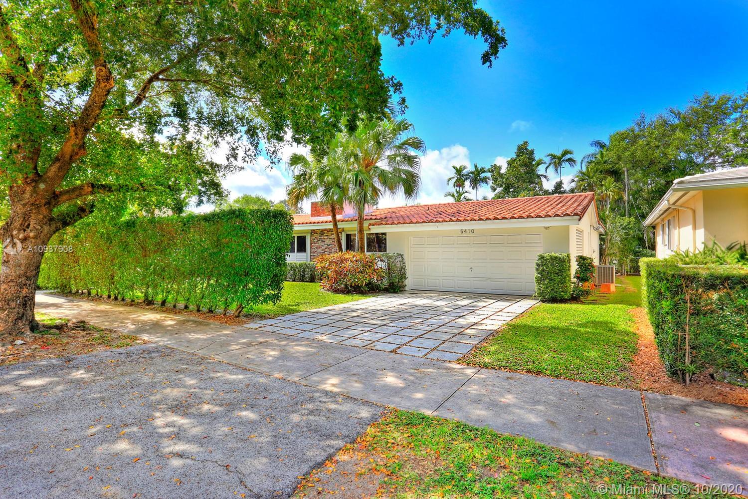 Classic mid-century modern-style home on historic & tree-lined Alhambra Circle. Hidden behind a tall privacy hedge and surrounded by 11,550 SF of gardens with fruit trees & tropical landscaping. Light-filled, open living spaces feature vaulted ceilings and banks of French doors that overlook ultra-private courtyard with large pool & terrace. Split-plan bedroom layout with 4th BR/BA ideal for housekeeper or guests ( private entrance). Notable features include: sunny kitchen w/ gas range & granite countertops, large master suite w/vaulted ceilings, separate laundry room, 2 car garage & most windows & doors with impact glass. Walking distance to UM campus, Riviera Country Club and close to The Biltmore Hotel.