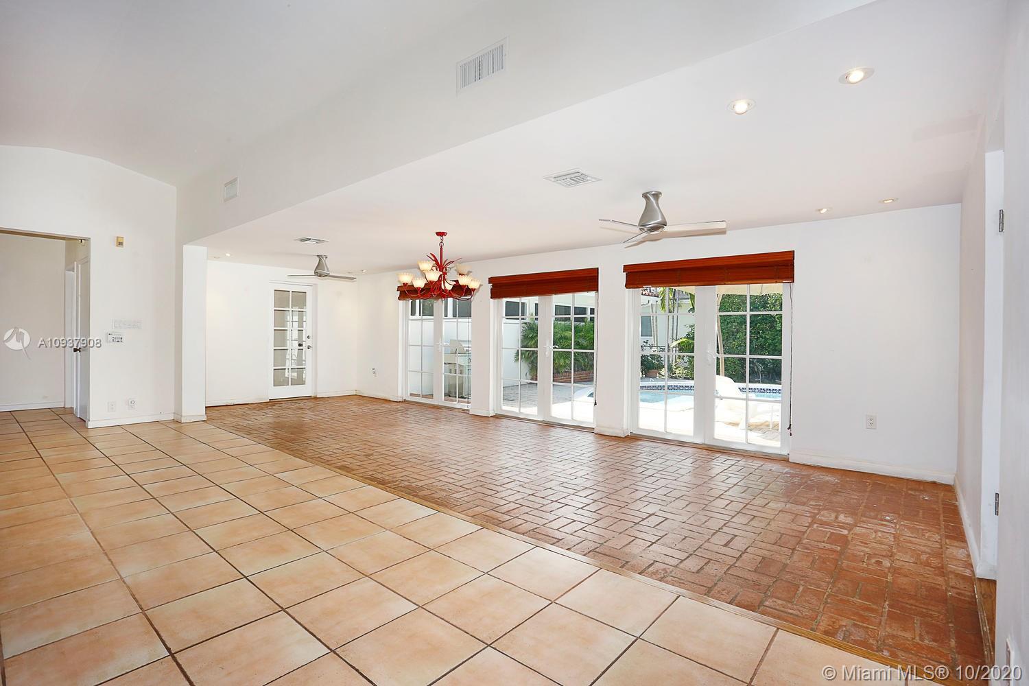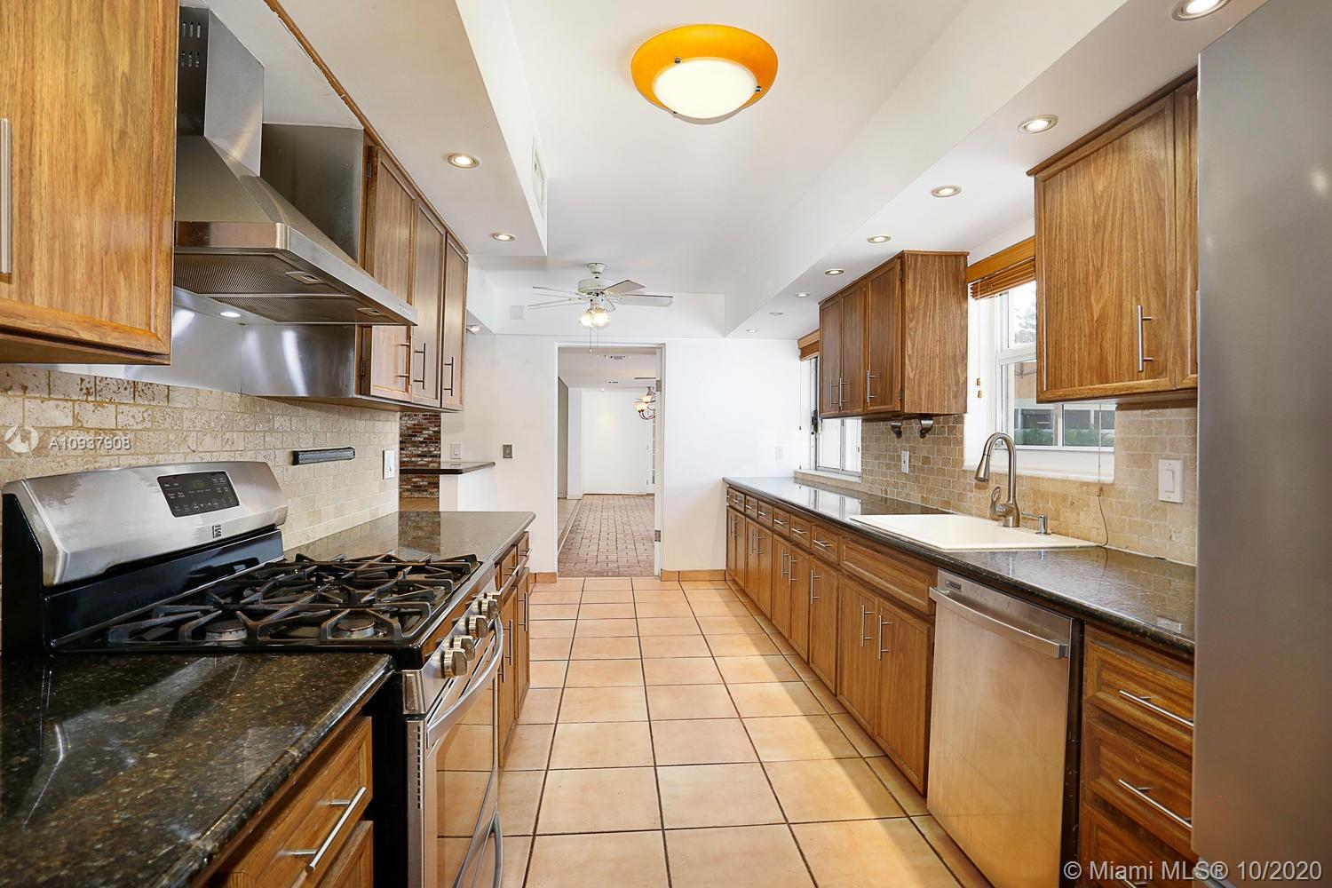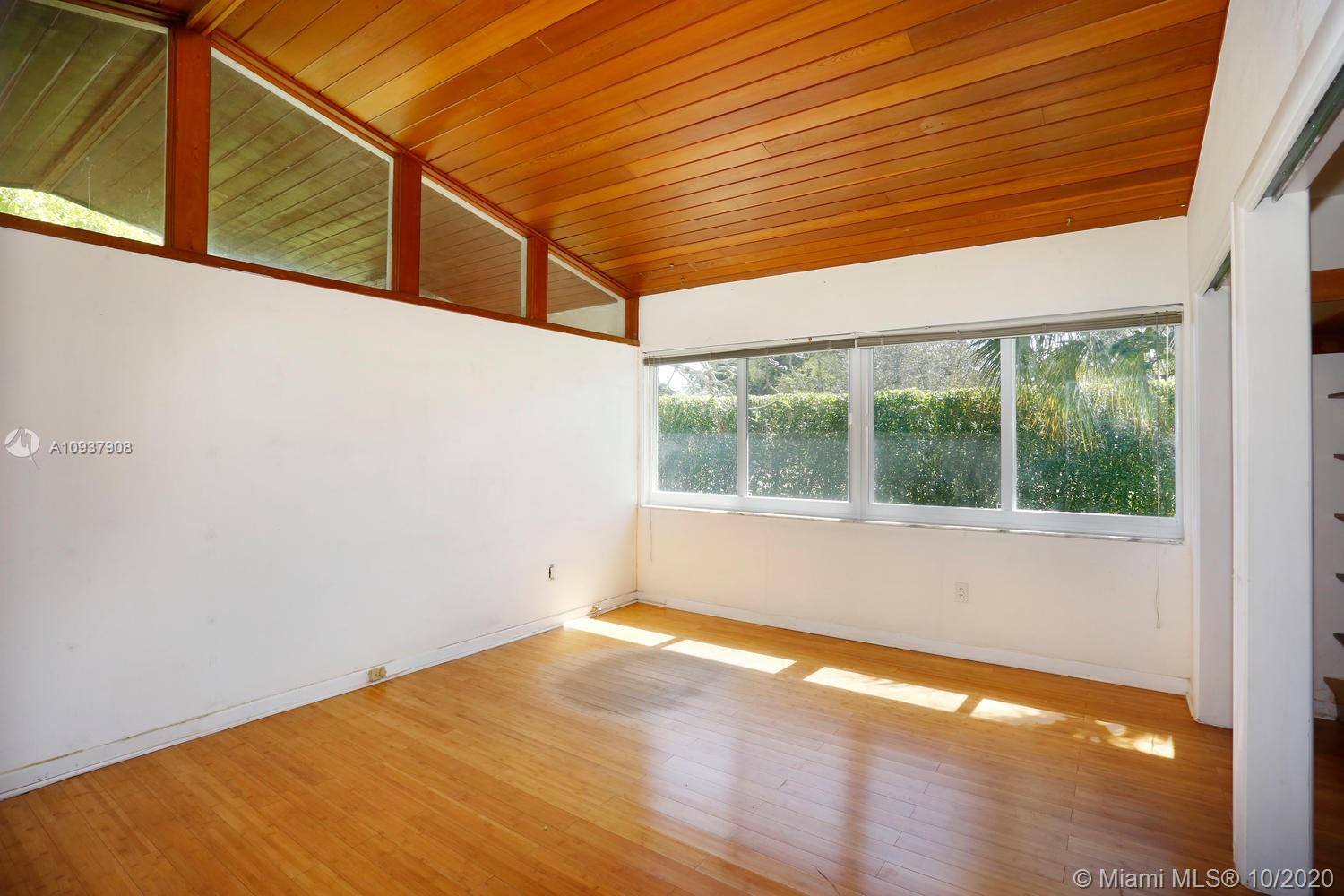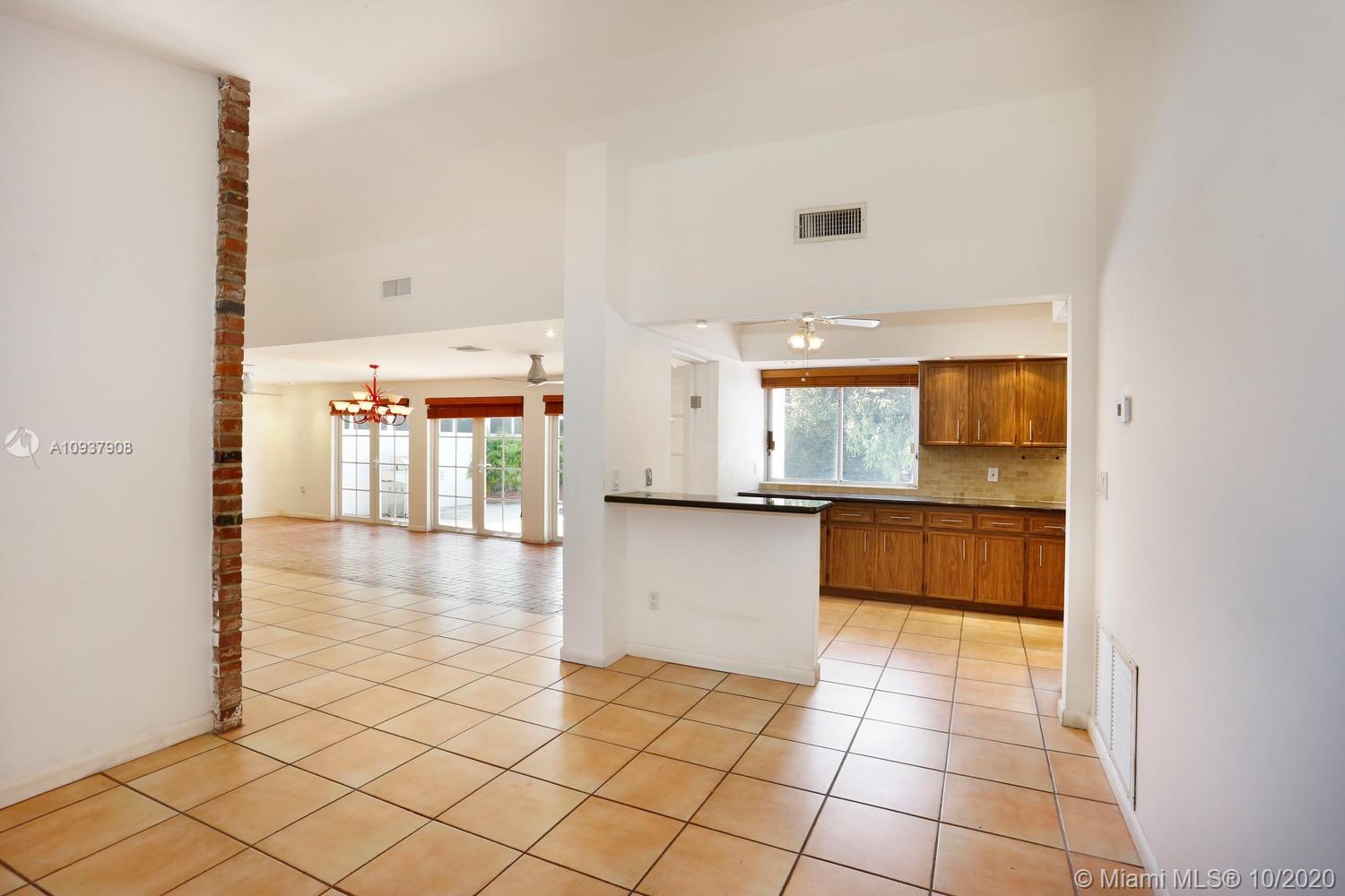 Classic mid-century modern-style home on historic & tree-lined Alhambra Circle. Hidden behind a tall privacy hedge and surrounded by 11,550 SF of gardens with fruit trees & tropical landscaping. Light-filled, open living spaces feature vaulted ceilings and banks of French doors that overlook ultra-private courtyard with large pool & terrace. Split-plan bedroom layout with 4th BR/BA ideal for housekeeper or guests ( private entrance). Notable features include: sunny kitchen w/ gas range & granite countertops, large master suite w/vaulted ceilings, separate laundry room, 2 car garage & most windows & doors with impact glass. Walking distance to UM campus, Riviera Country Club and close to The Biltmore Hotel.