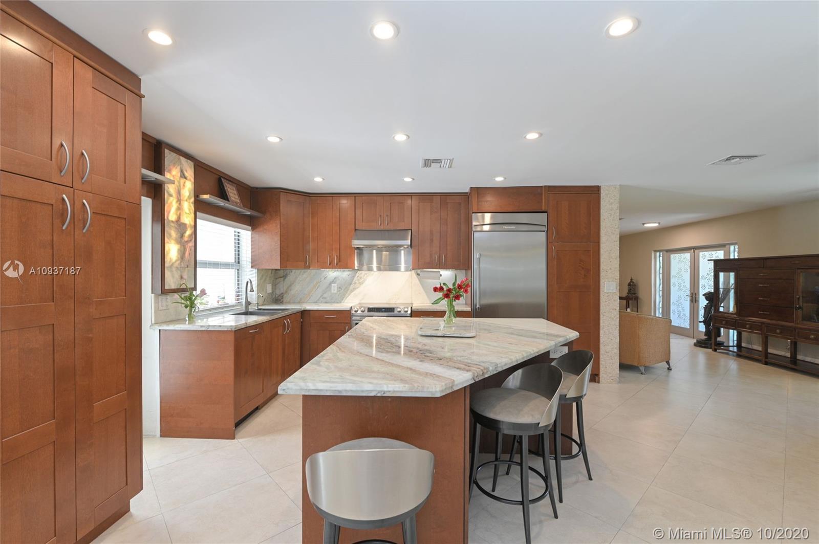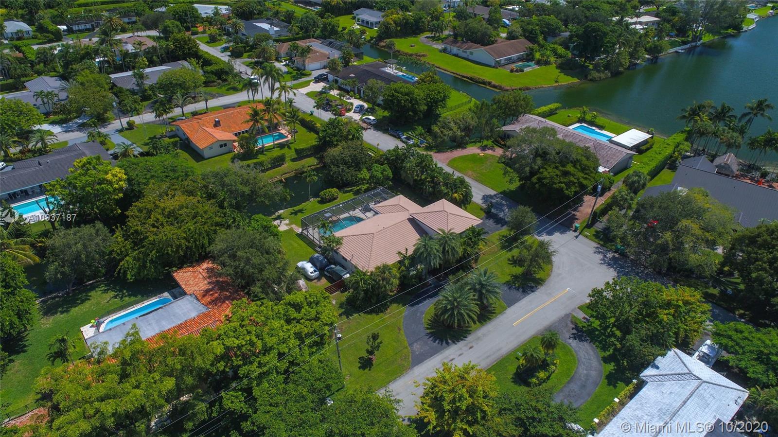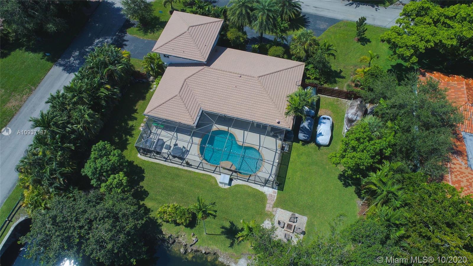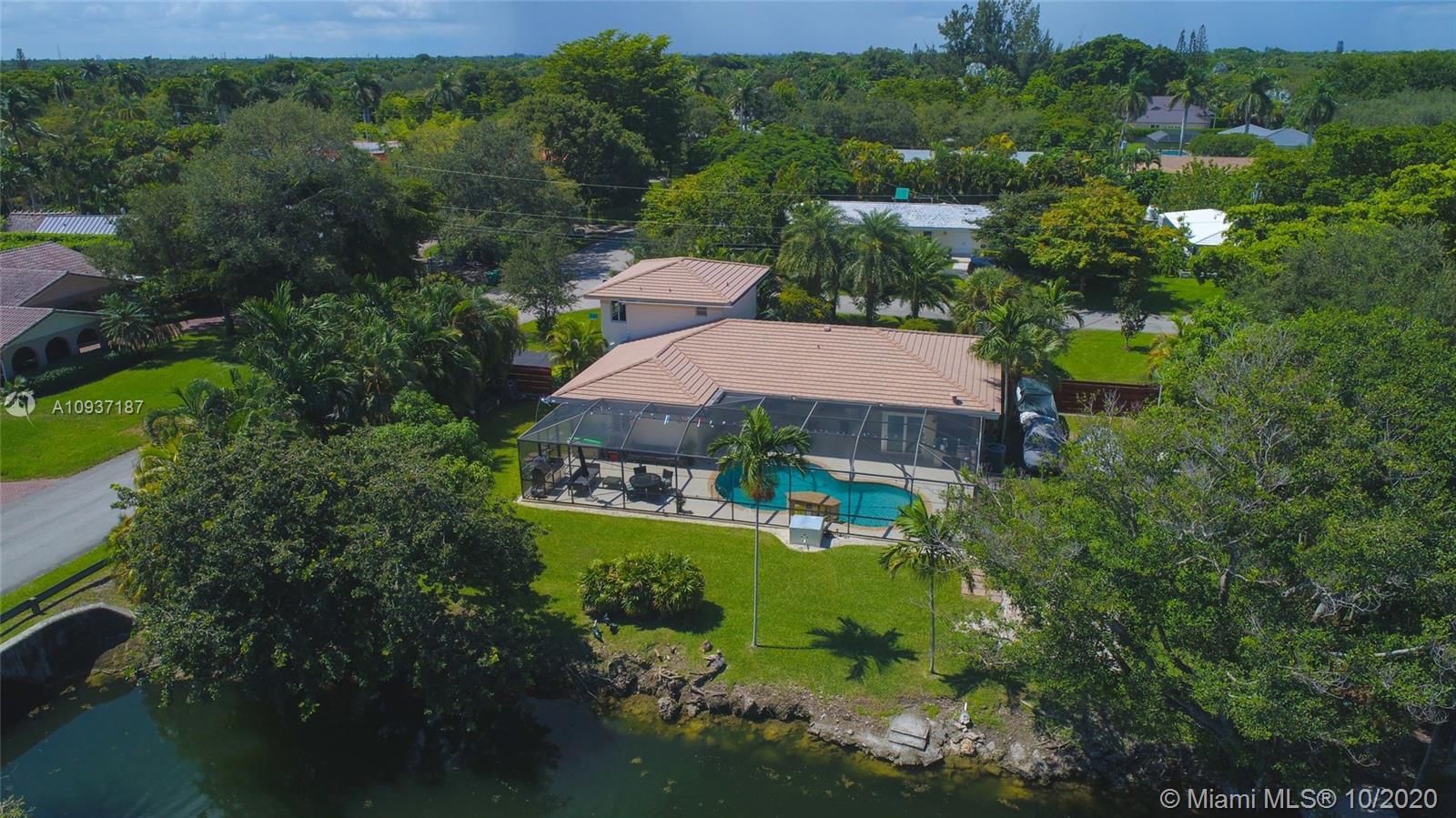 Beautiful updated 3 bedroom + office, 3 bathroom waterfront and pool home in sought after Palmetto Island, in Pinecrest. Extra large corner lot .4 acres-with mature trees,offers privacy and room to add to this upscale home. Bright, open floor plan,ideal for entertaining. Oversized kitchen island quartz countertops, Thermador refrigerator, Stainless steel appliances; water and pool views. 1st floor offers 2 large bedrooms with convertible den/office . Custom split bathroom allows for private in laws suite. Laundry room. The 2nd floor offers expansive master suite bamboo floors, walk in closet, double head rain showers & jacuzzi jetted tub. Nutone central vac cleaning system, alarm, intercom, Newer roof with warranty.Partial impact windows. Newly painted. Pristine- move in ready.
