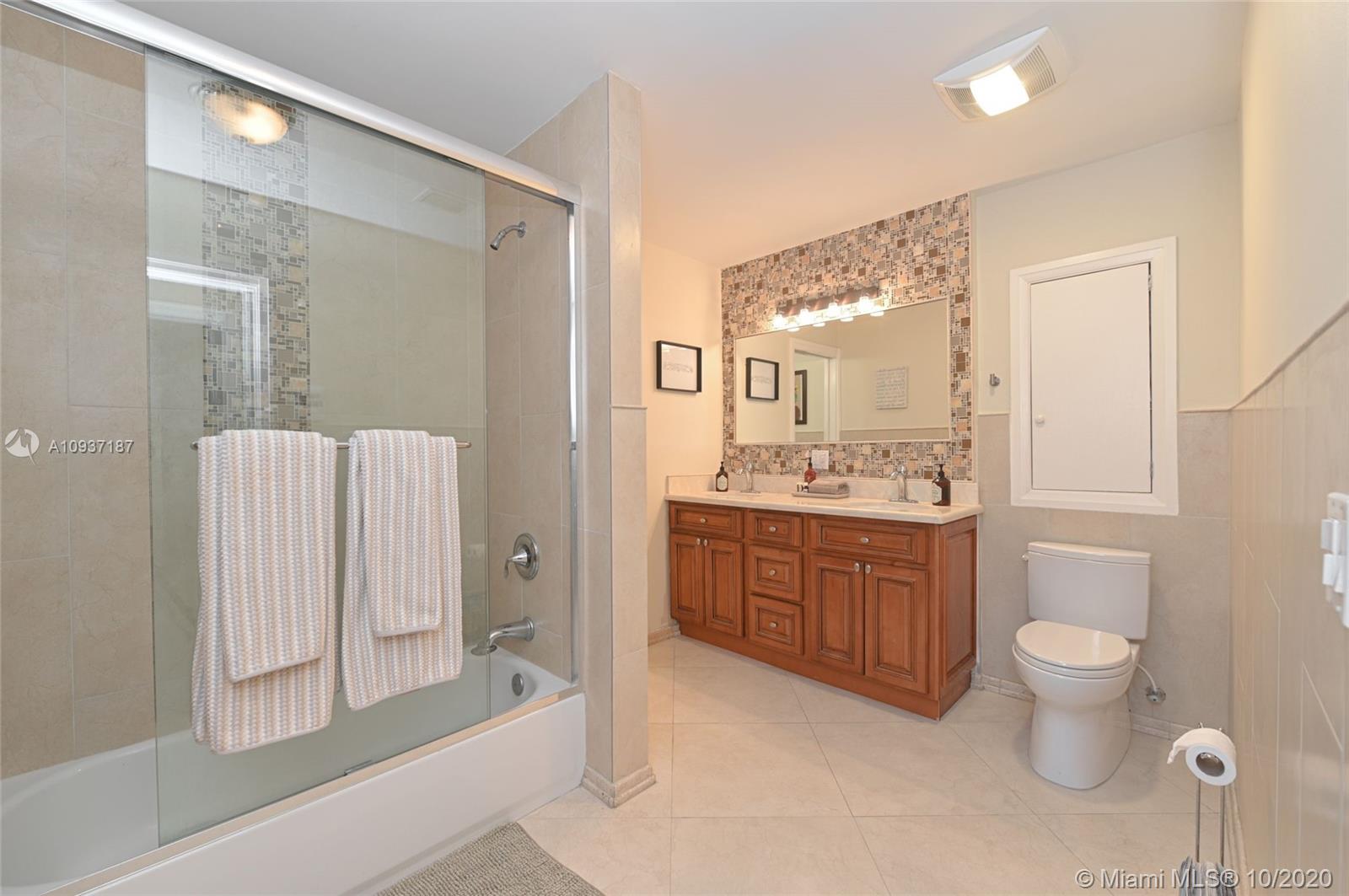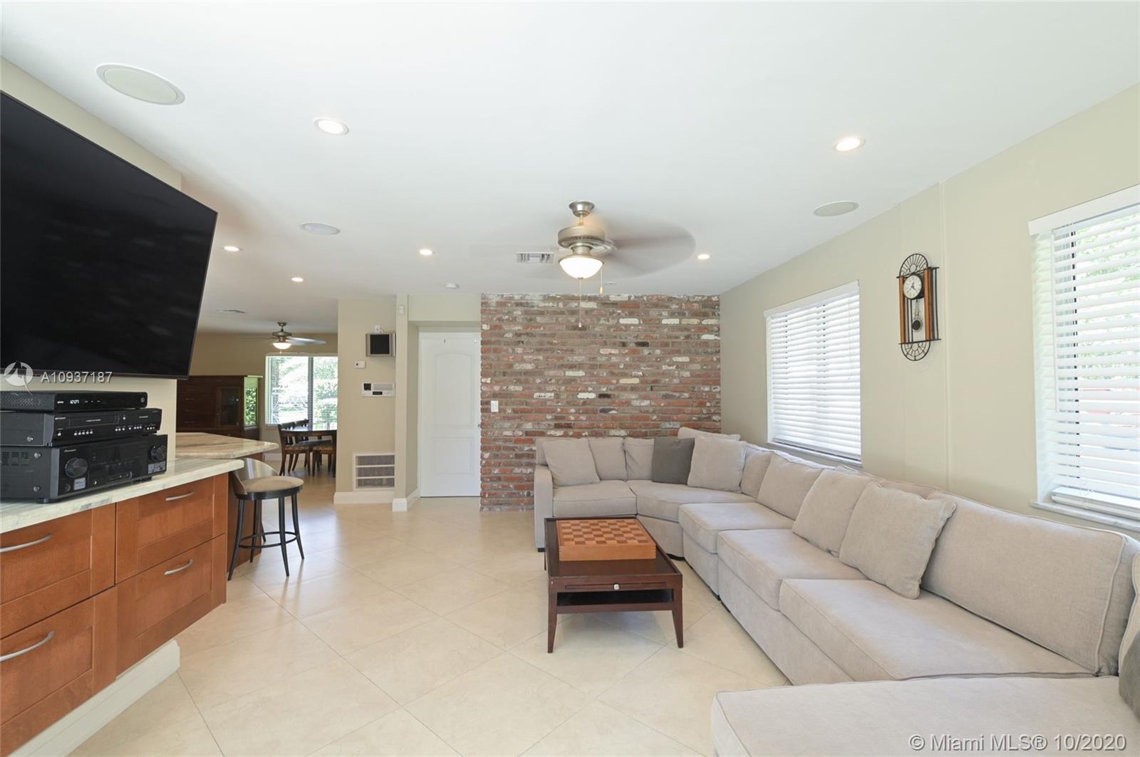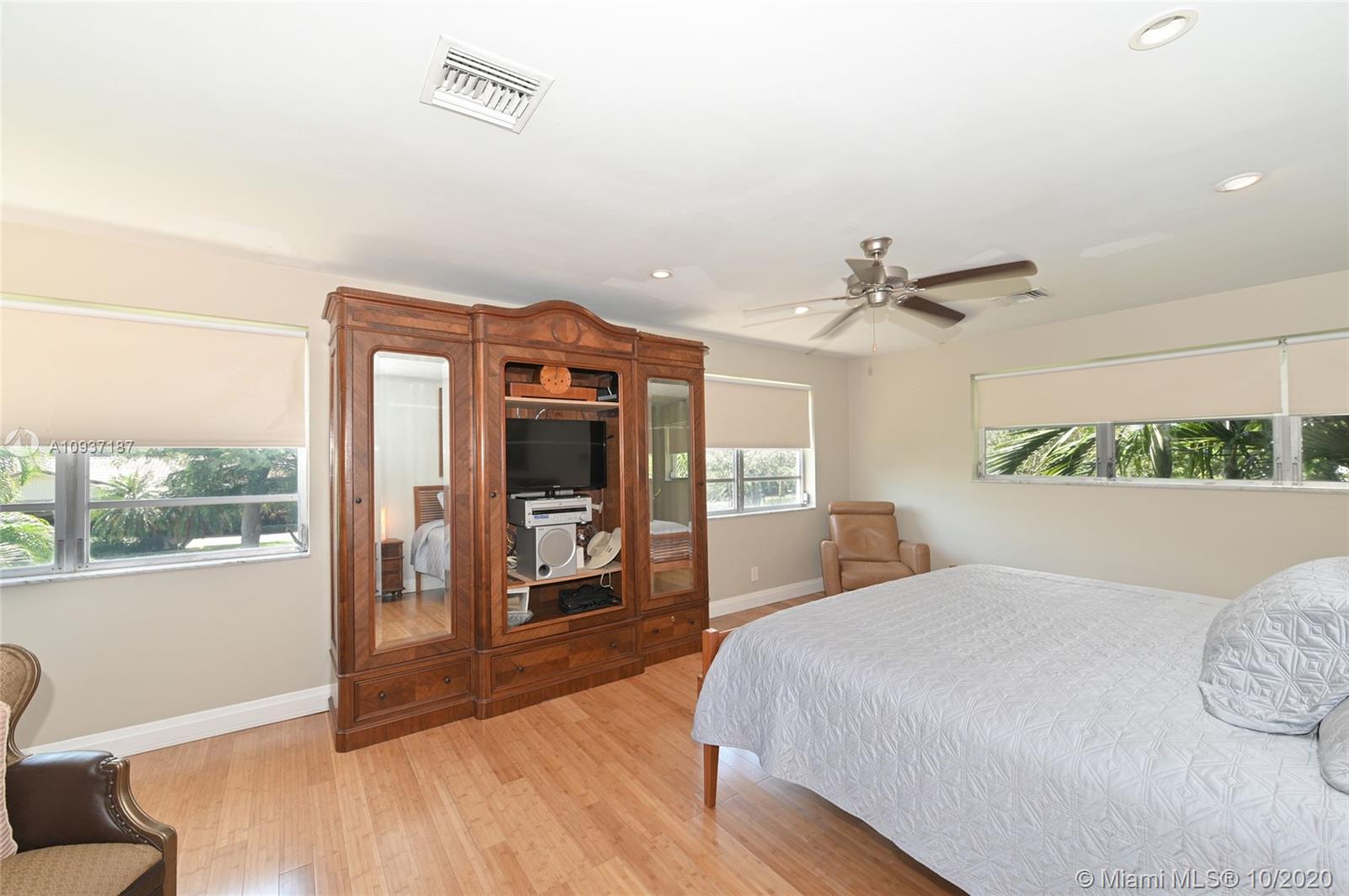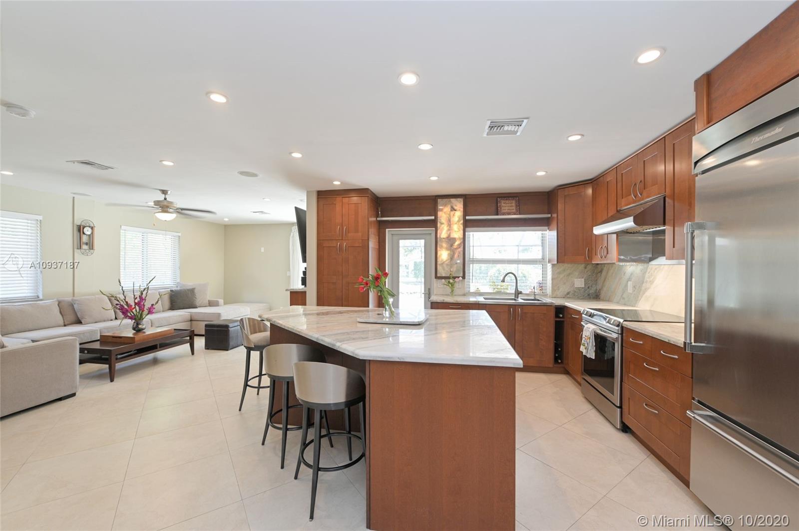 Beautiful updated 3 bedroom + office, 3 bathroom waterfront and pool home in sought after Palmetto Island, in Pinecrest. Extra large corner lot .4 acres-with mature trees,offers privacy and room to add to this upscale home. Bright, open floor plan,ideal for entertaining. Oversized kitchen island quartz countertops, Thermador refrigerator, Stainless steel appliances; water and pool views. 1st floor offers 2 large bedrooms with convertible den/office . Custom split bathroom allows for private in laws suite. Laundry room. The 2nd floor offers expansive master suite bamboo floors, walk in closet, double head rain showers & jacuzzi jetted tub. Nutone central vac cleaning system, alarm, intercom, Newer roof with warranty.Partial impact windows. Newly painted. Pristine- move in ready.