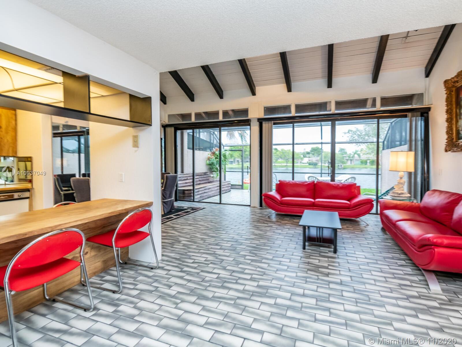 Live in Villas Lakes in the heart of Pembroke Lakes. Spectacular Lake view, 3 bedroom 3 bath townhouse with 1 full bedroom and bath on ground floor. Bright open Living & dining areas with beamed vaulted ceiling and tile throughout the first floor. Large screened patio with panoramic lake view to relax and enjoy nature. Low monthly HOA fee, 24 hr security patrol,close to Pembroke Lakes Mall,hospital & shopping plazas. Amenities include Cable TV,Olympic size pool,tennis courts,basketball and racquetball courts, 2 assigned parking spaces and plenty of guest parking.