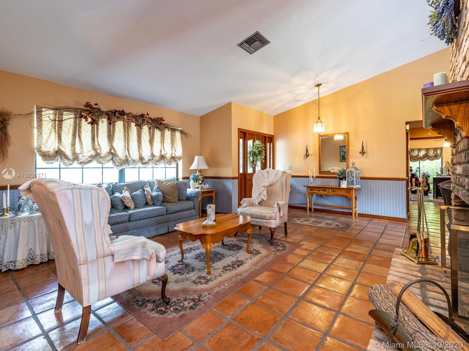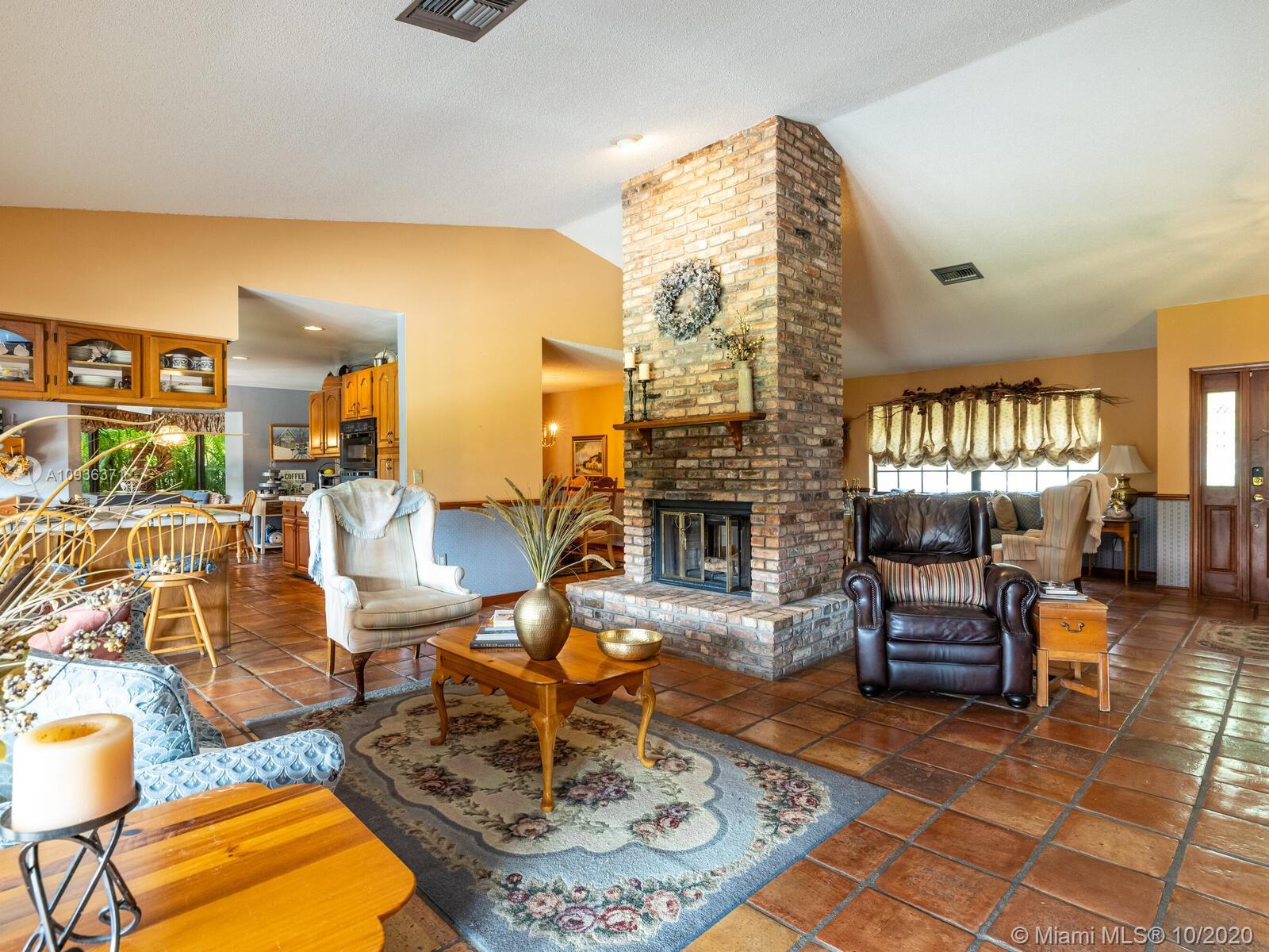 Amazing custom-built single-story 4 bedrooms, 2 ½ family home is located in the highly sought-after Country Club of Miami across the street from the golf course with a large circular driveway. It is tiled throughout, with walk in closets in all bedrooms, one of the bedrooms has a private entrance that can be used as an office and one of the bathrooms has a door to the back patio, laundry room. The home has a two-sided fireplace in a spacious open concept floor plan with vaulted ceiling and large covered patio with built-in BBQ, sink and adjacent span perfect for entertainment. Large lot with room for a pool, space in both sides of the house to store a boat, RV. Centrally located closed to I-75 and the Palmetto. No HOA. Ready for its new owners to build their memories, don’t miss out!