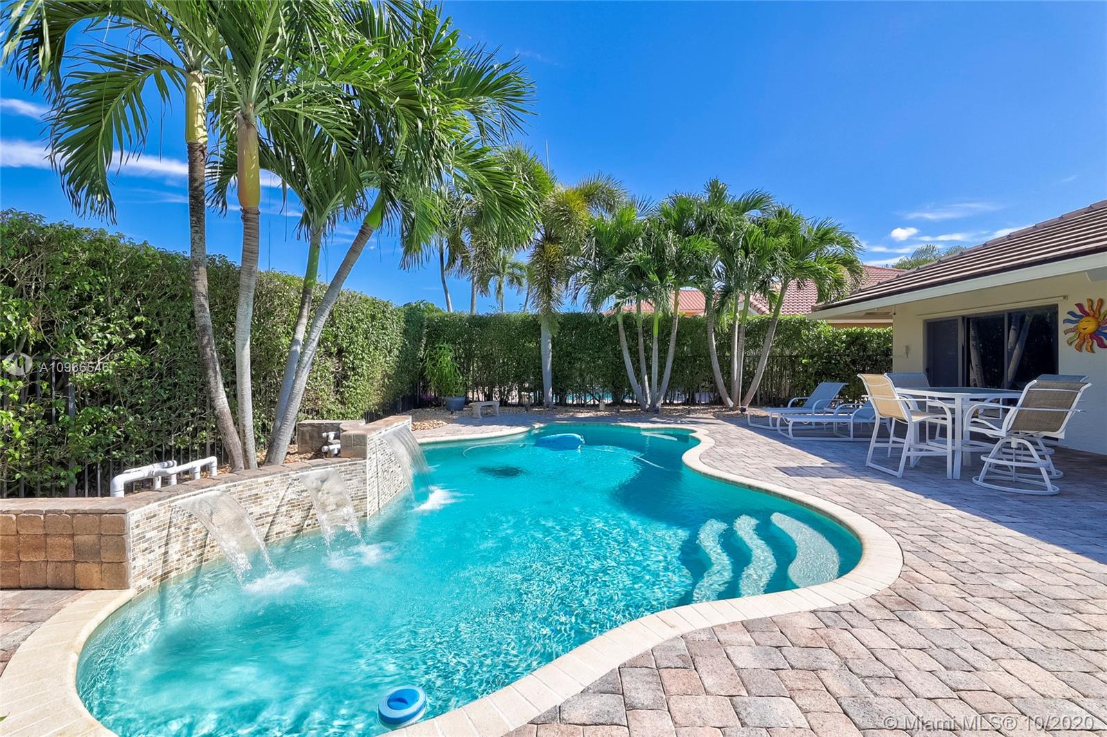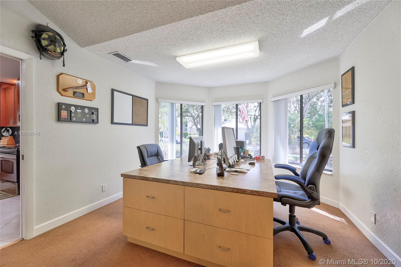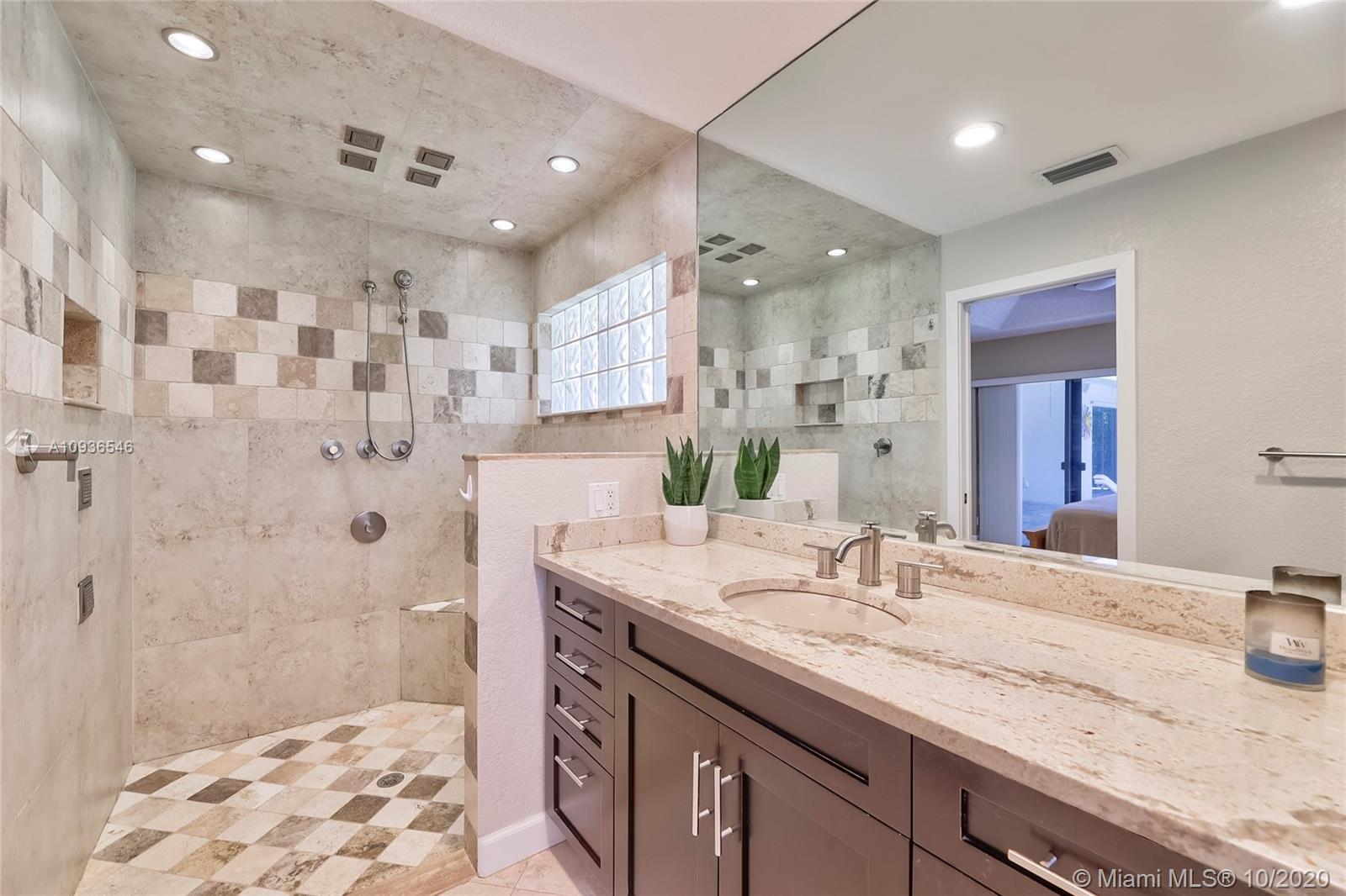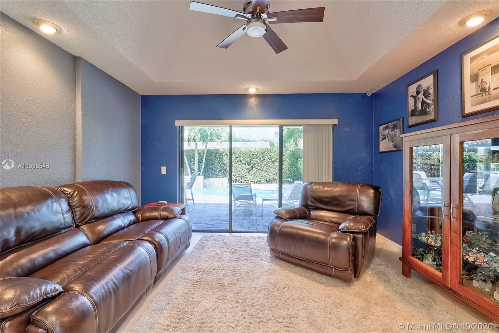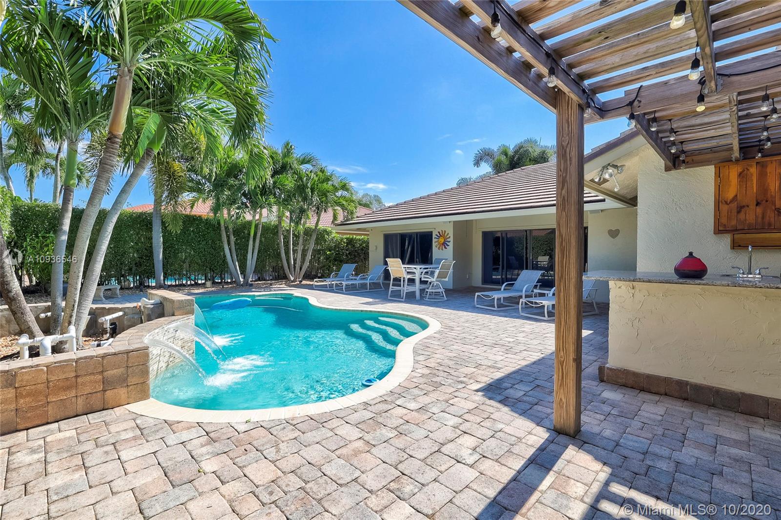 Move in ready 3/2 + office in fabulous gated Sunset Springs. Open floor plan with expansive living spaces. Updated kitchen featuring granite counter tops, wood cabinets, stainless steel appliances, undermount lighting and big center island/snack bar. Large master suite, big walk-in closet, and beautifully remodeled master bath with oversized walk-in shower. All secondary bedrooms are spacious, and second bathrooms has also been tastefully updated. Amazing pool area, with pavered deck, and built-in summer kitchen. Full hurricane protection, post Wilma Roof, 2 water heaters, and 2012 A/C.