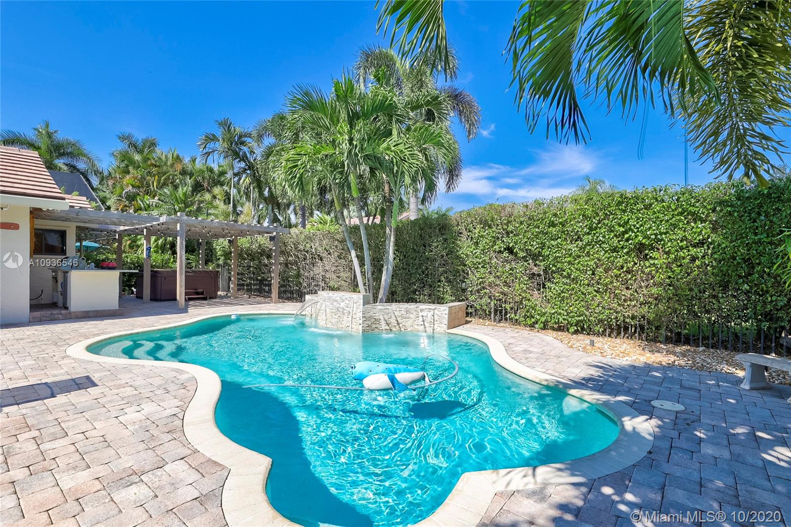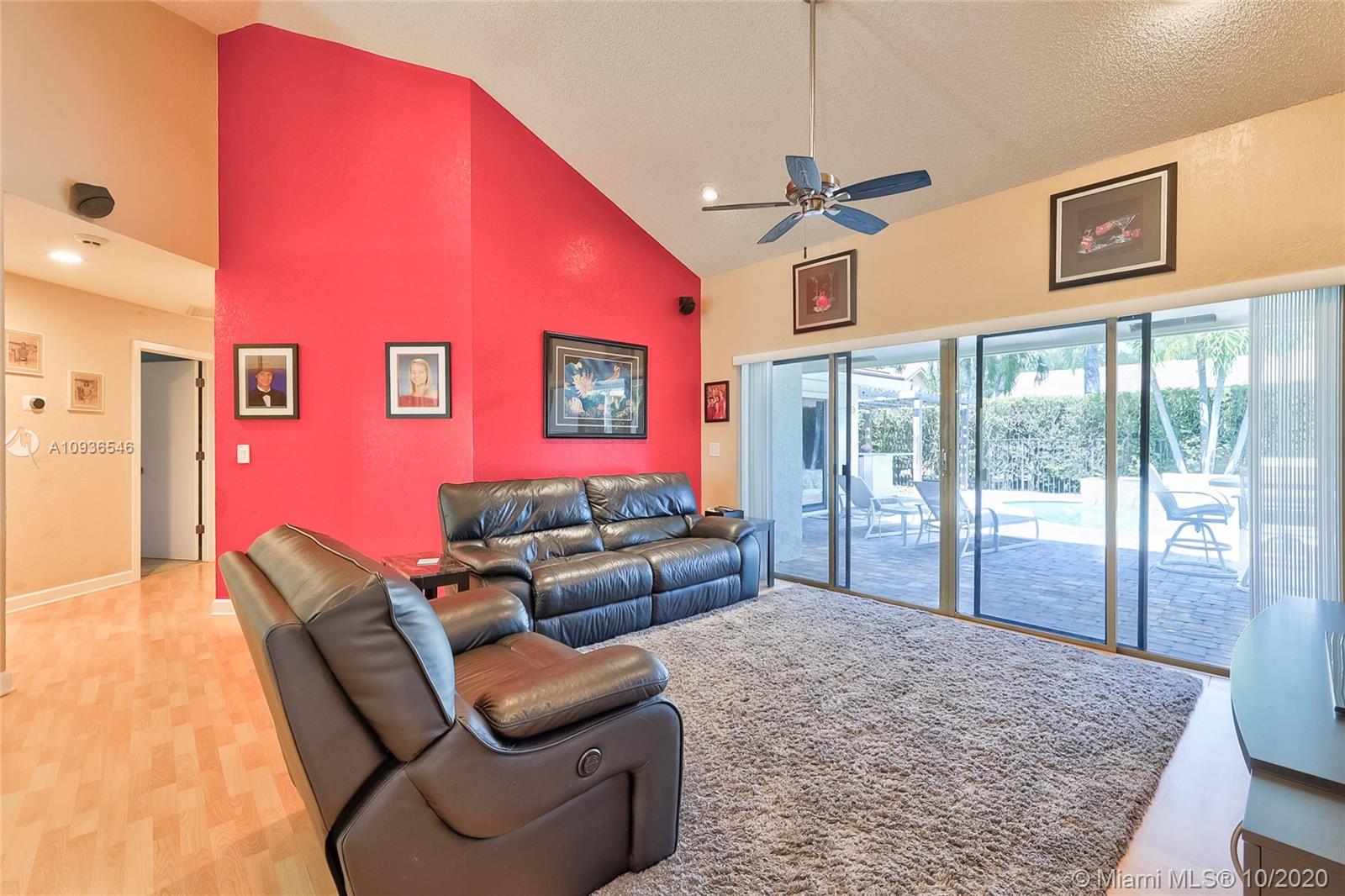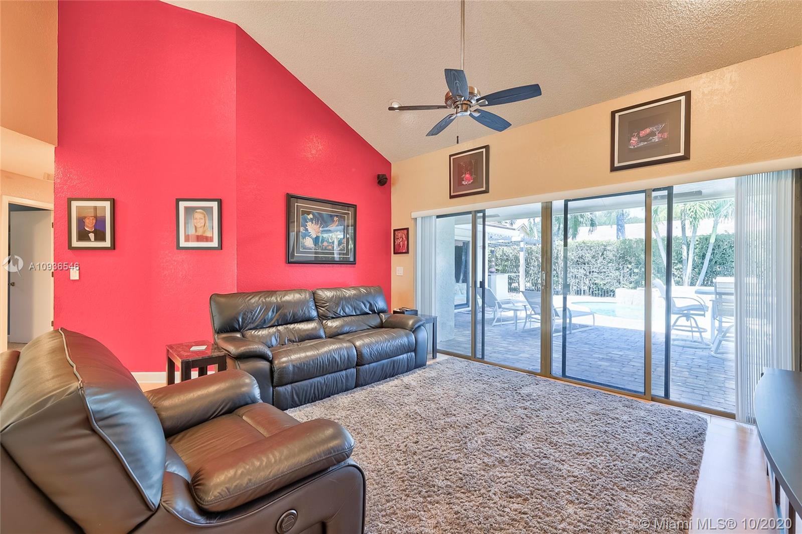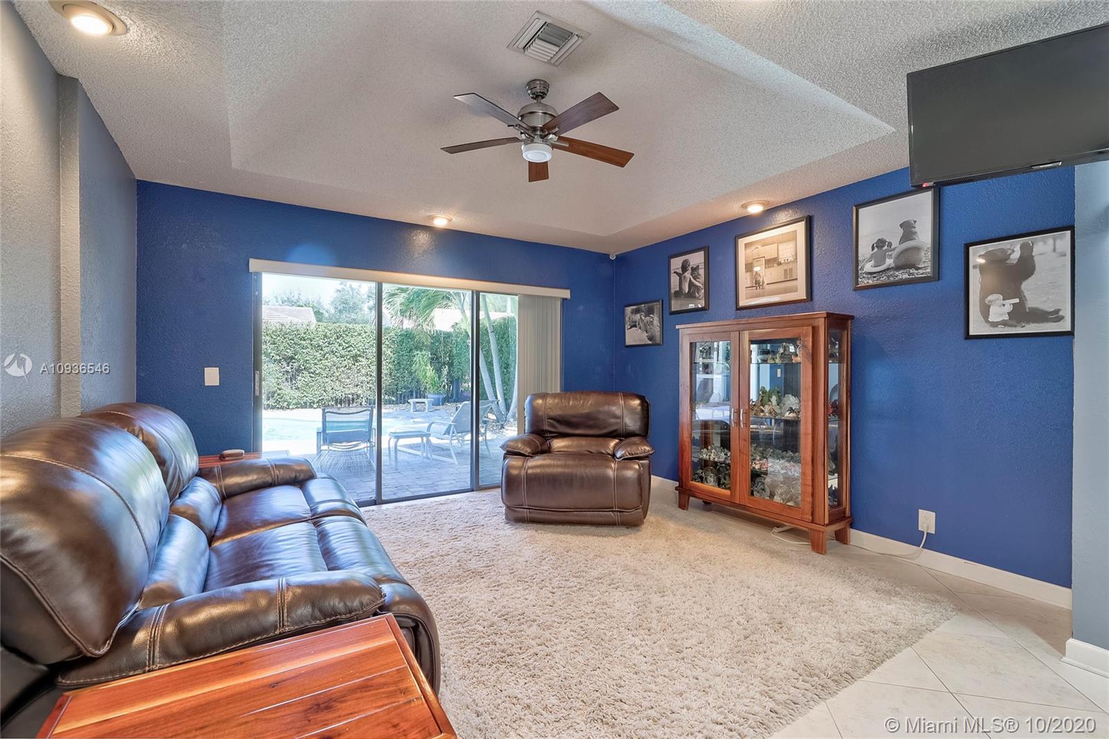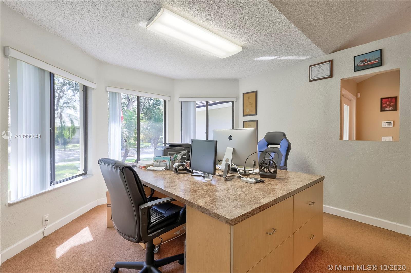 Move in ready 3/2 + office in fabulous gated Sunset Springs. Open floor plan with expansive living spaces. Updated kitchen featuring granite counter tops, wood cabinets, stainless steel appliances, undermount lighting and big center island/snack bar. Large master suite, big walk-in closet, and beautifully remodeled master bath with oversized walk-in shower. All secondary bedrooms are spacious, and second bathrooms has also been tastefully updated. Amazing pool area, with pavered deck, and built-in summer kitchen. Full hurricane protection, post Wilma Roof, 2 water heaters, and 2012 A/C.