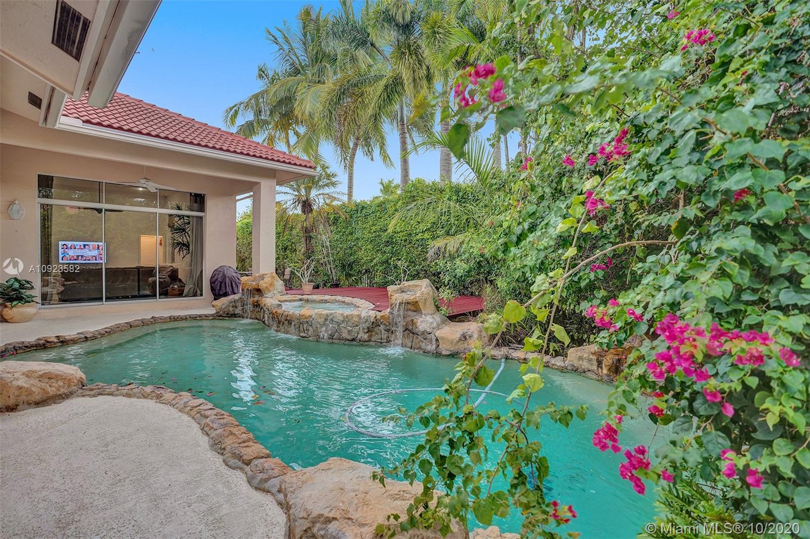 Four spacious bedrooms plus den/office. Tucked in the boutique community of Maple Island in The Islands at Weston. This custom one-story home features soaring ceilings with windows on the pool. Fully fenced yard with lush tropical landscaping and deck. Freeform pool with waterfall function and spa. White kitchen with renovated granite countertops and stainless steel appliances. Triple split plan with grand owners suite plus sitting area with door to the pool. Newly renovated owners bath with roman tub, new floorings, granite countertops, white cabinetry, and shower. NEWER ROOF