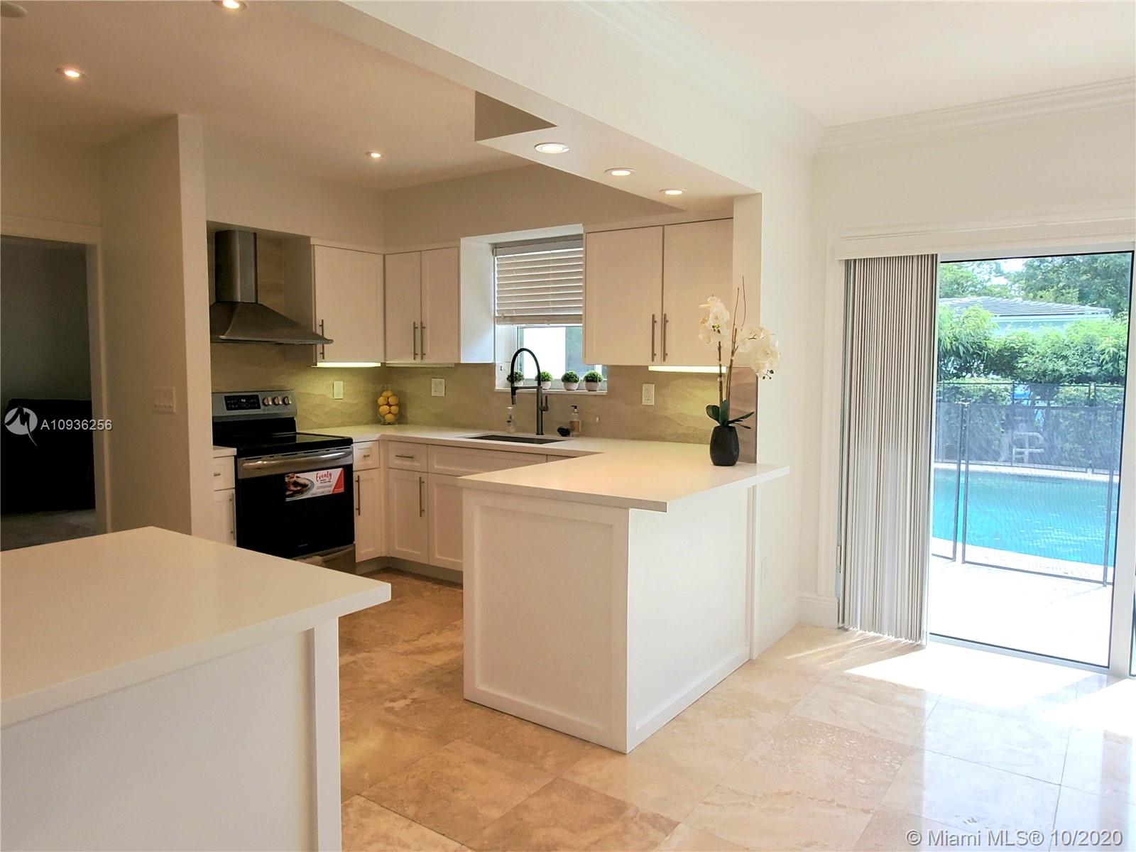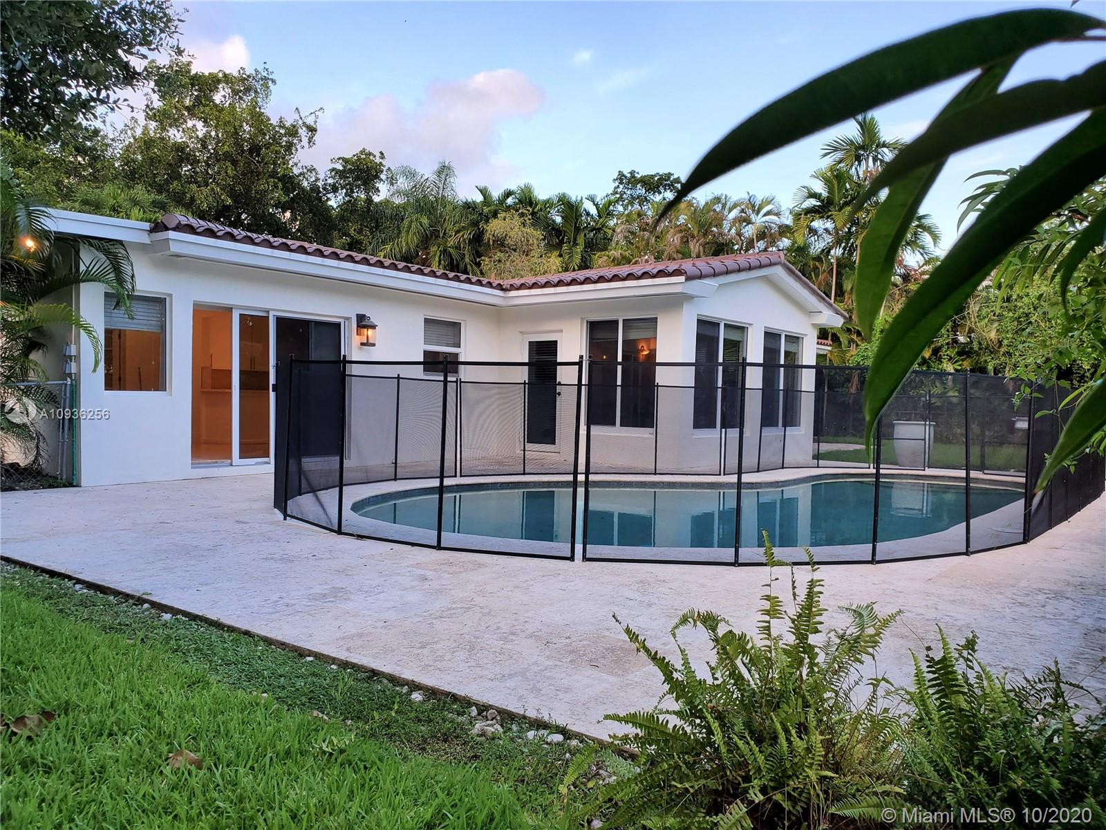 Stunning Riviera home just hit the market in Coral Gables! This beautiful pool home offers 4 Bedrooms 2.5 Bath and 2,253 sq. ft. living space. It features impeccable finishes throughout, from beautiful travertine marble floors, gorgeous great room with cathedral ceilings, multiple exposures and amazing garden views. The updated kitchen boasting quartz countertops, kitchen aid stainless steel appliances, white cabinets, breakfast counters and large nook. There are also plenty upgrades; new roof, tank less water heater, new sod, interior and exterior painting, impact windows and doors, solar exterior lighting and irrigation system. Entertain under the stars and relax near the sparkling pool. Located walking distance to UM, in a highly coveted Gables school district. It won't last long.