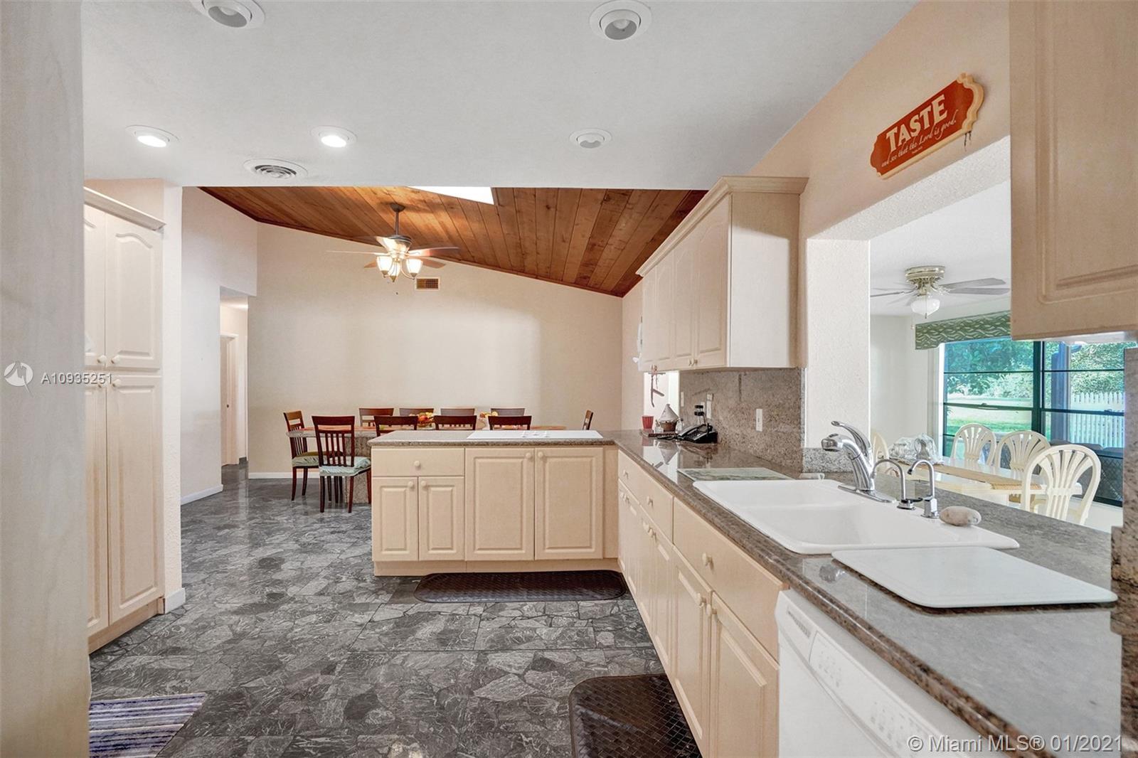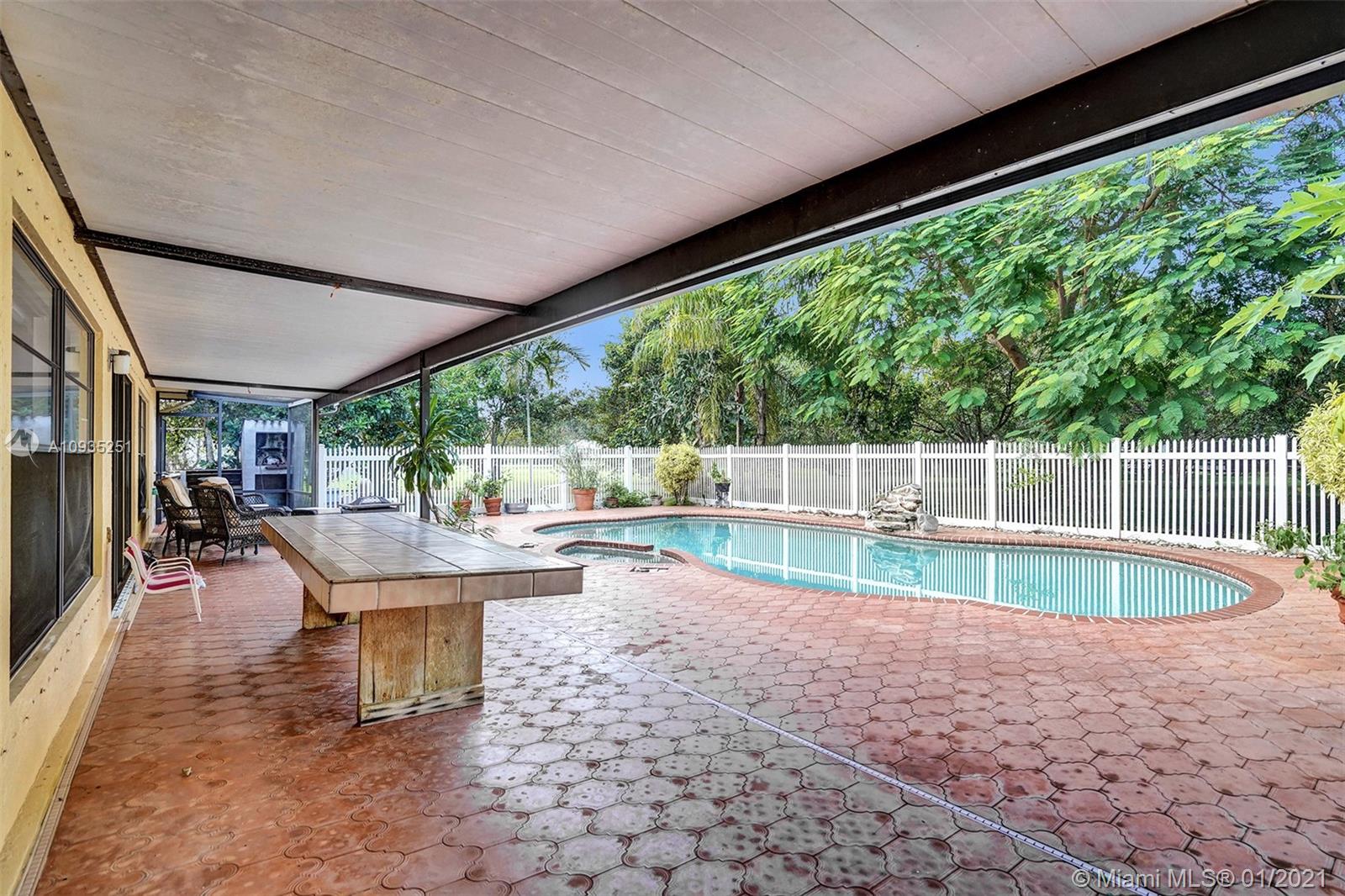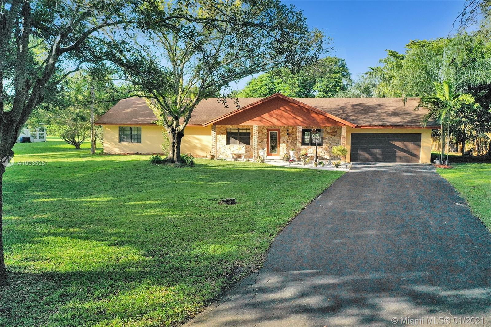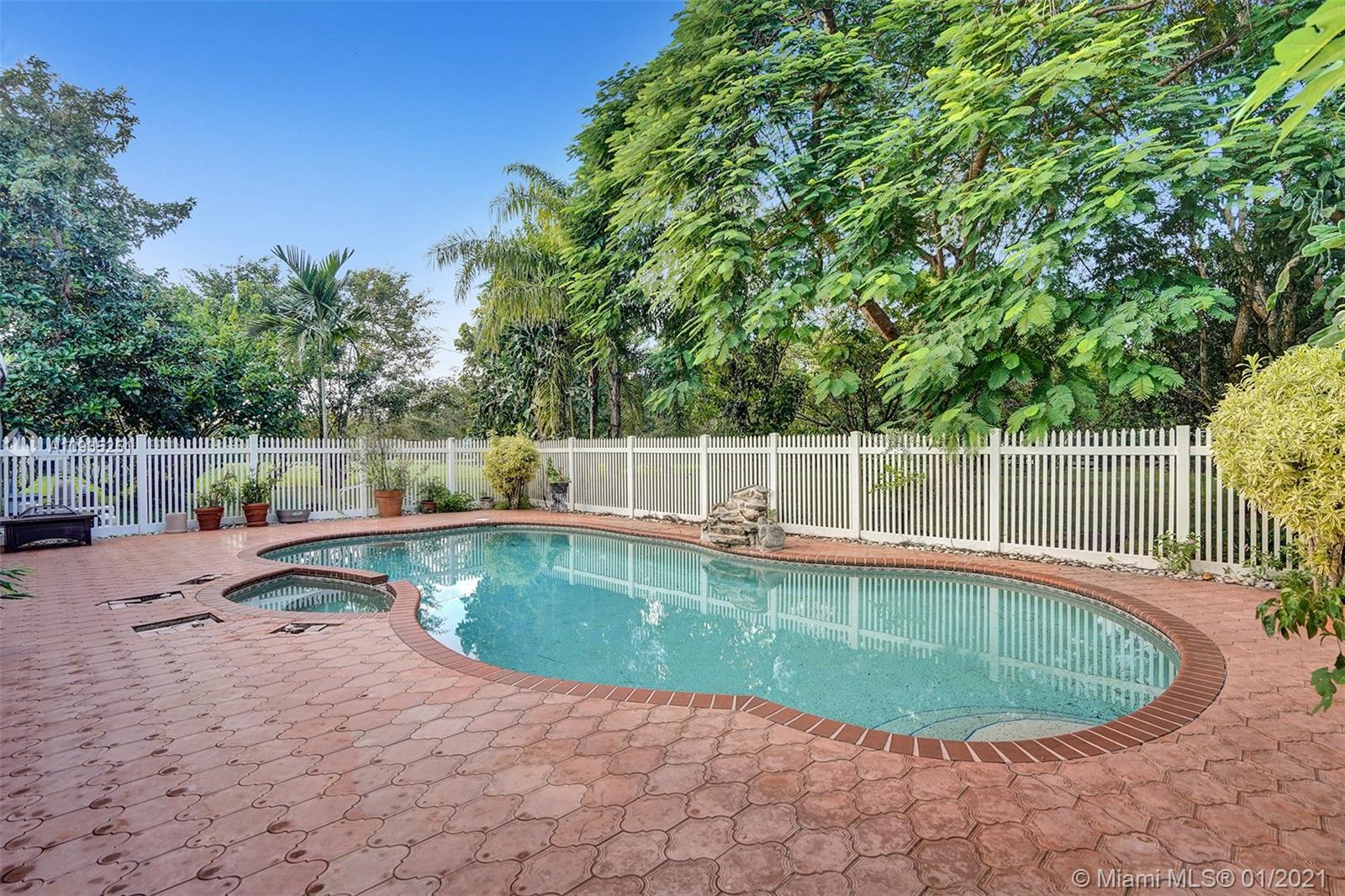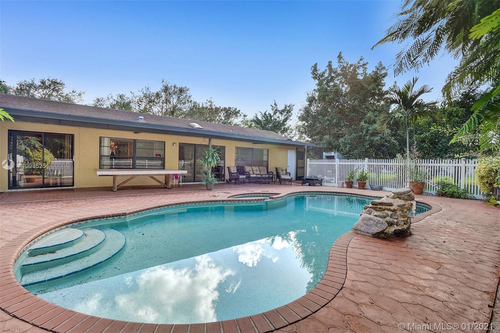 NO homeowners Association! Almost an ACRE of manicured landscaping and fruit trees surround this 4 bedroom, 3 full bath home with formal living and dining rooms, family room and covered patio to the pool and spa! Newer garage door, hurricane protection, marble floors in main living area. All 3 bathrooms newly remodeled, garage being used as a commercial type kitchen but can easily be revised back into a garage or office for your business. BRICK WOOD FIRED Pizza oven shipped directly from Italy and included in sale. Many Fruit Trees on the property. Plenty of room to let your imagination expand especially if you have a business or just a big family! dining room light fixture does NOT convey