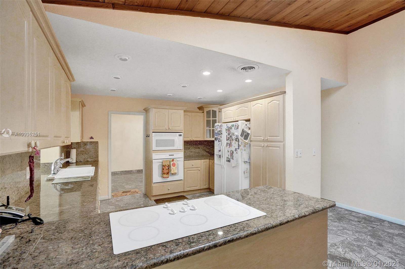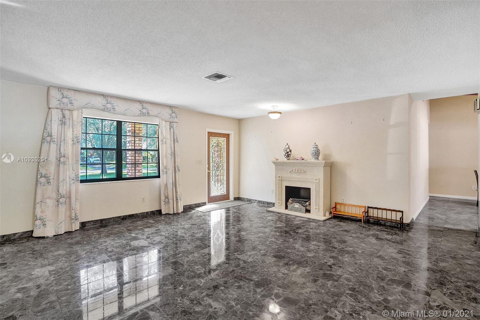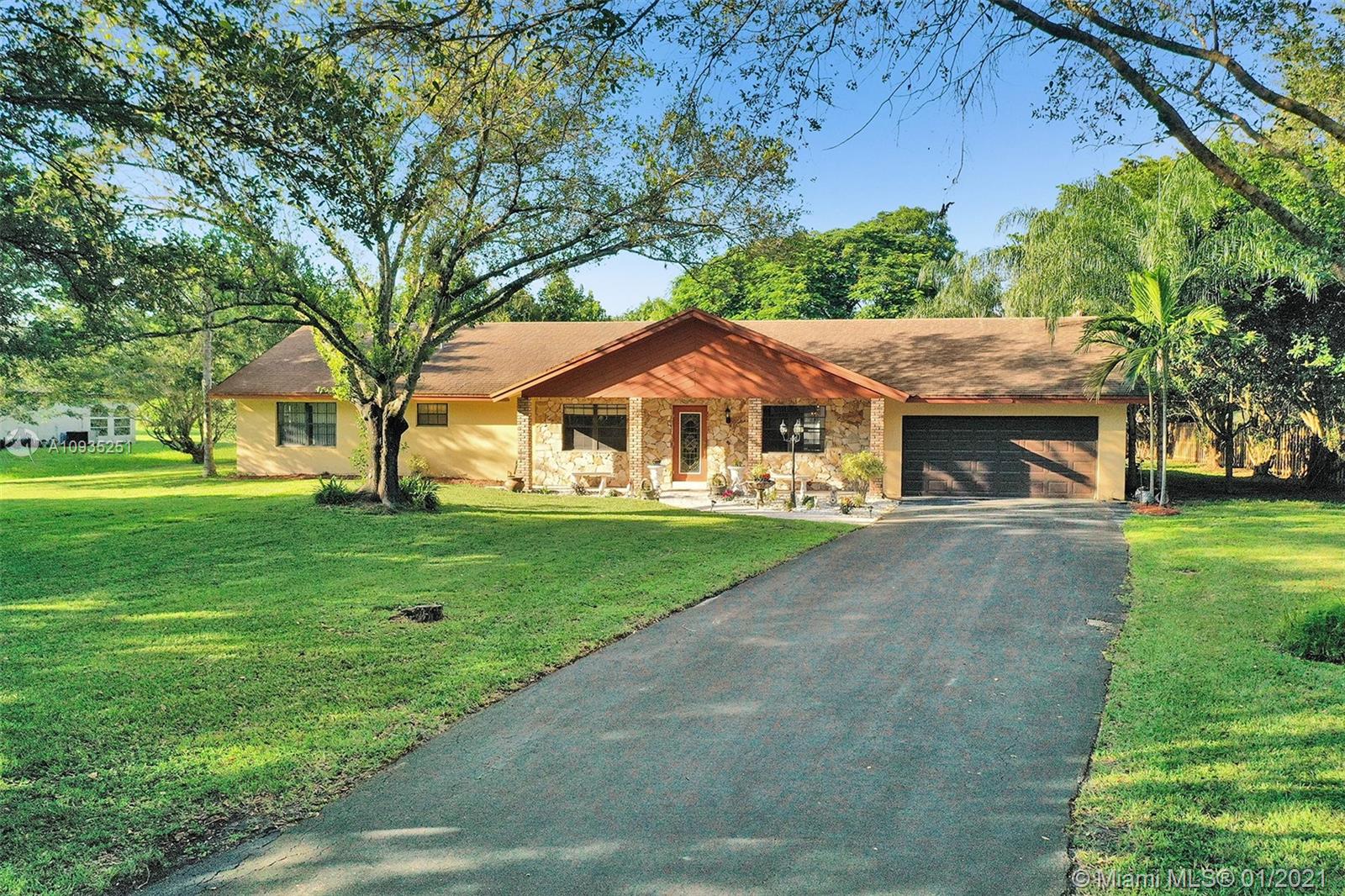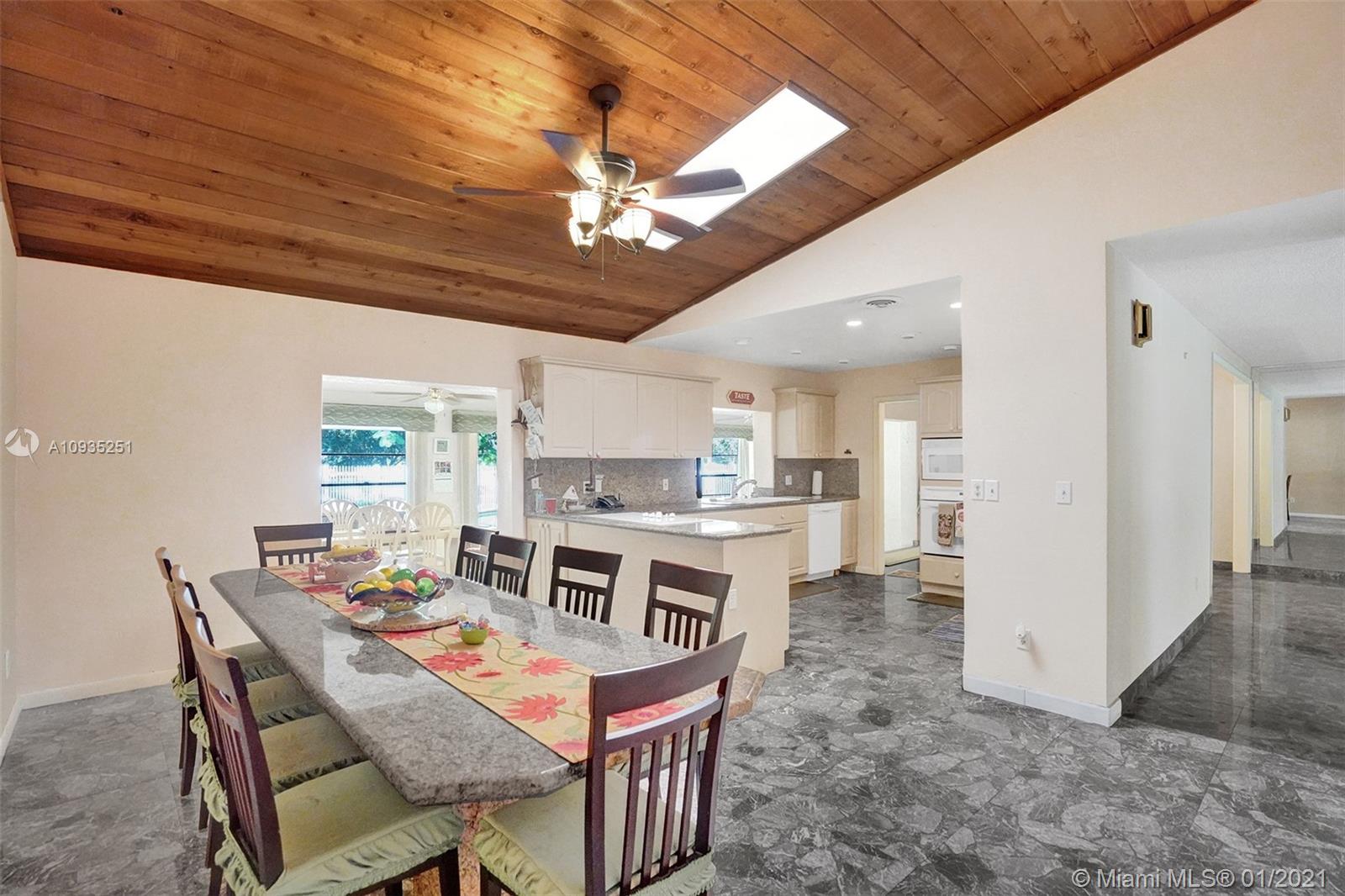 NO homeowners Association! Almost an ACRE of manicured landscaping and fruit trees surround this 4 bedroom, 3 full bath home with formal living and dining rooms, family room and covered patio to the pool and spa! Newer garage door, hurricane protection, marble floors in main living area. All 3 bathrooms newly remodeled, garage being used as a commercial type kitchen but can easily be revised back into a garage or office for your business. BRICK WOOD FIRED Pizza oven shipped directly from Italy and included in sale. Many Fruit Trees on the property. Plenty of room to let your imagination expand especially if you have a business or just a big family! dining room light fixture does NOT convey