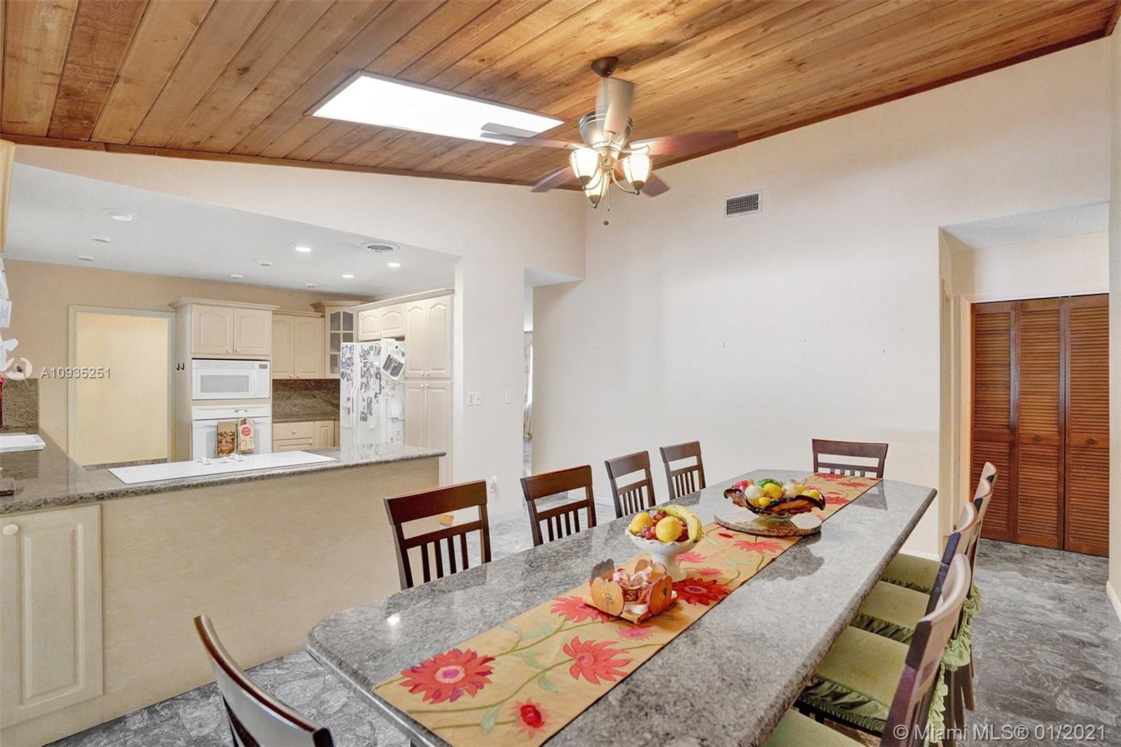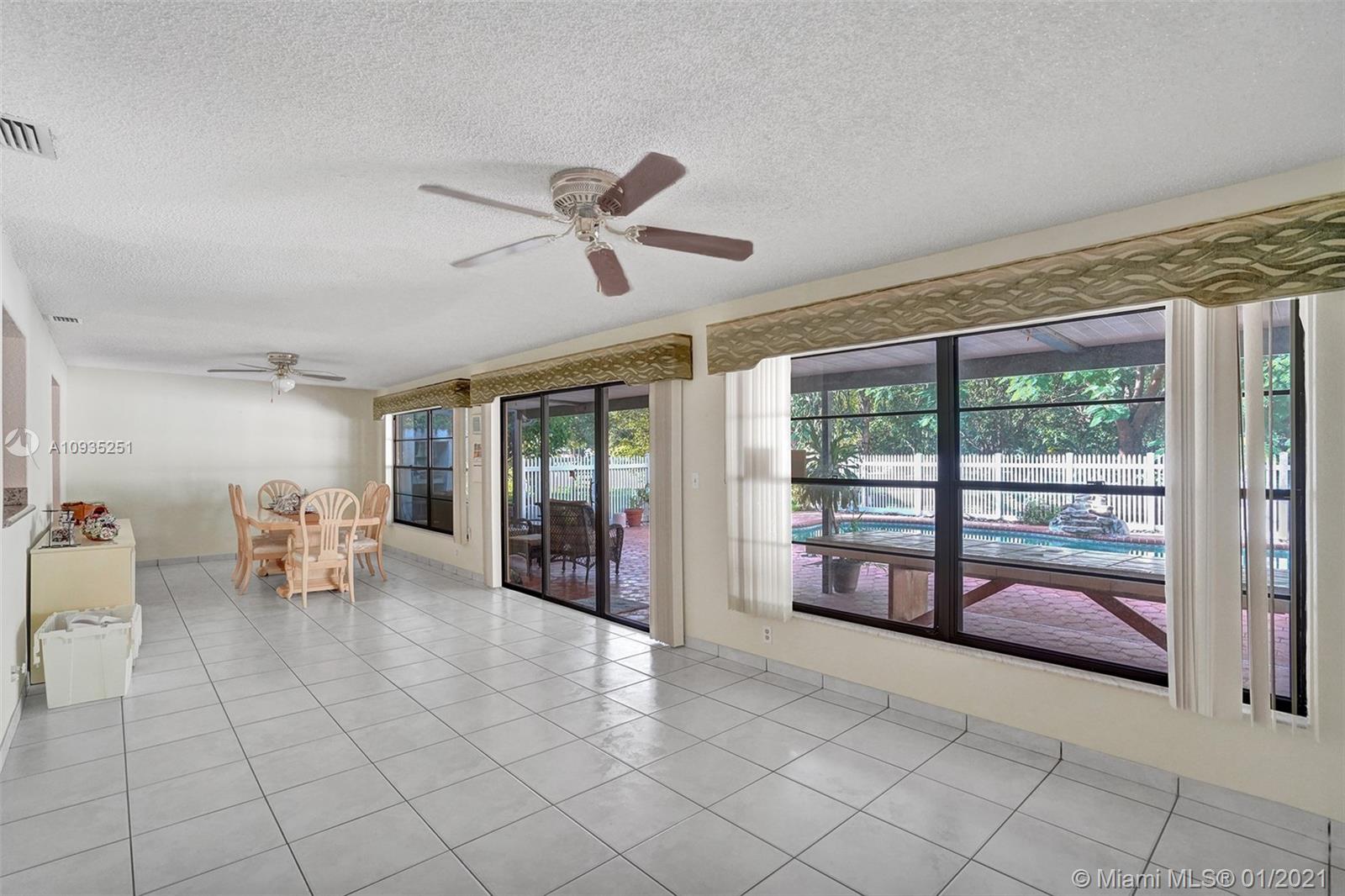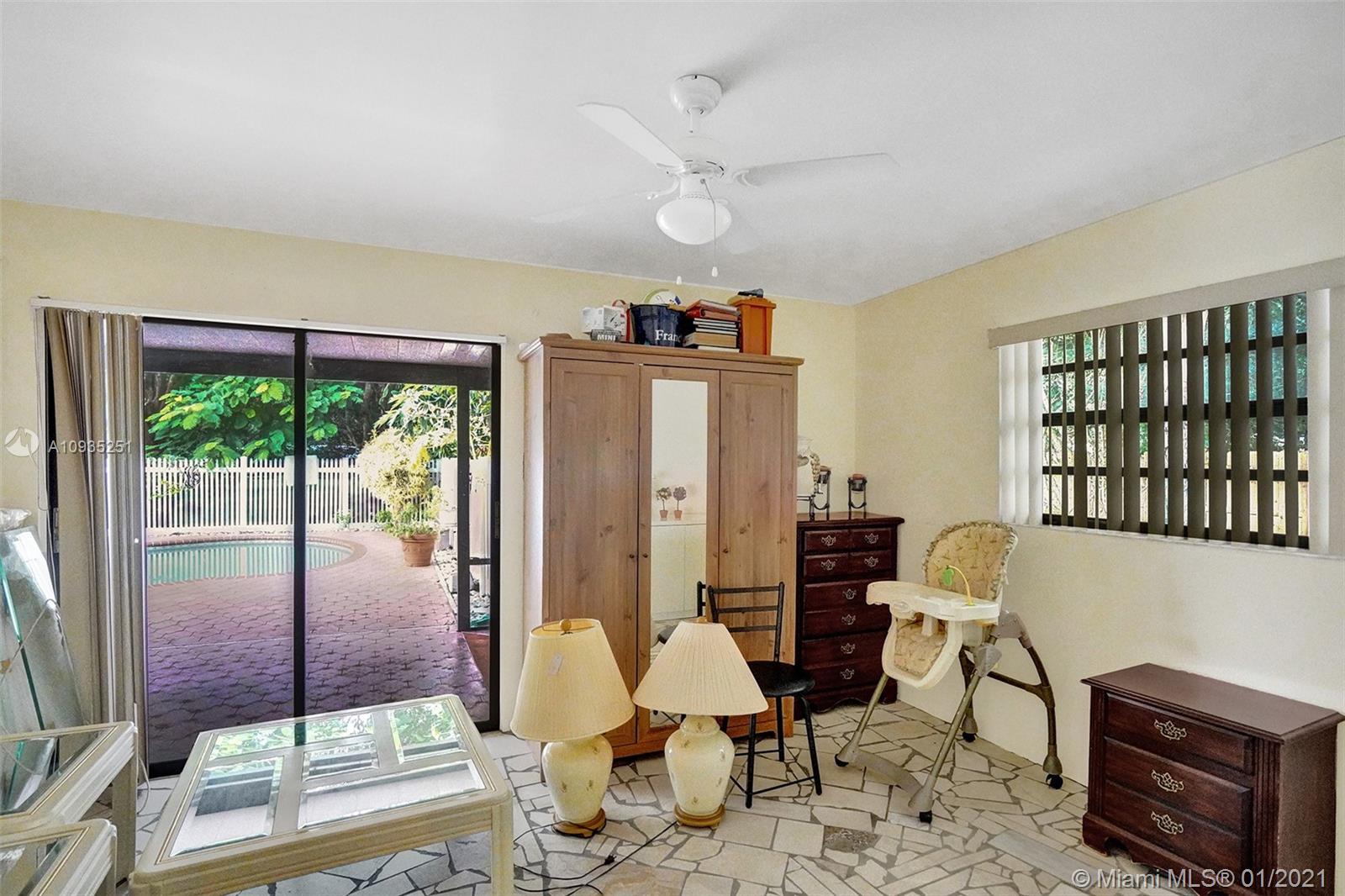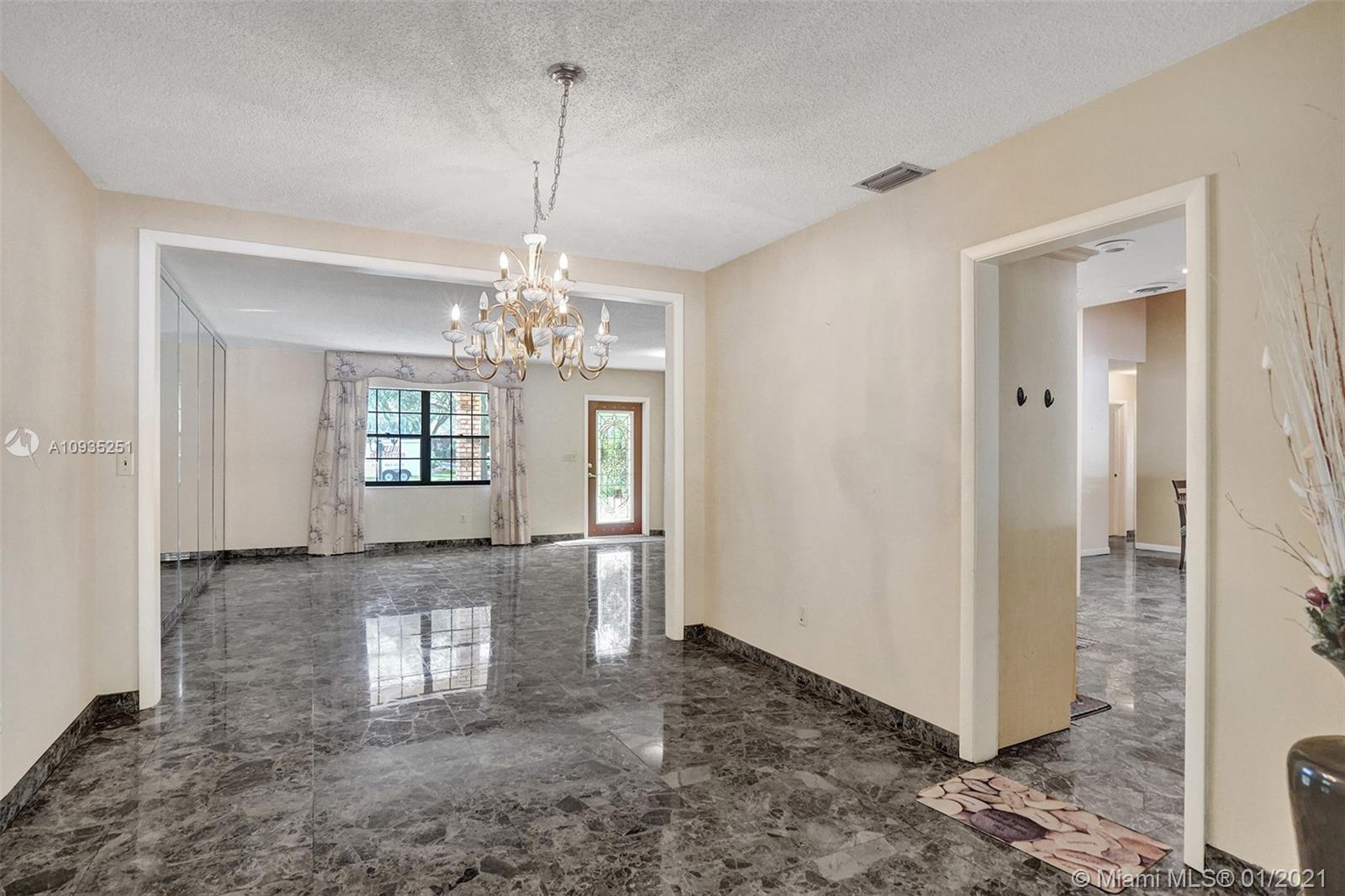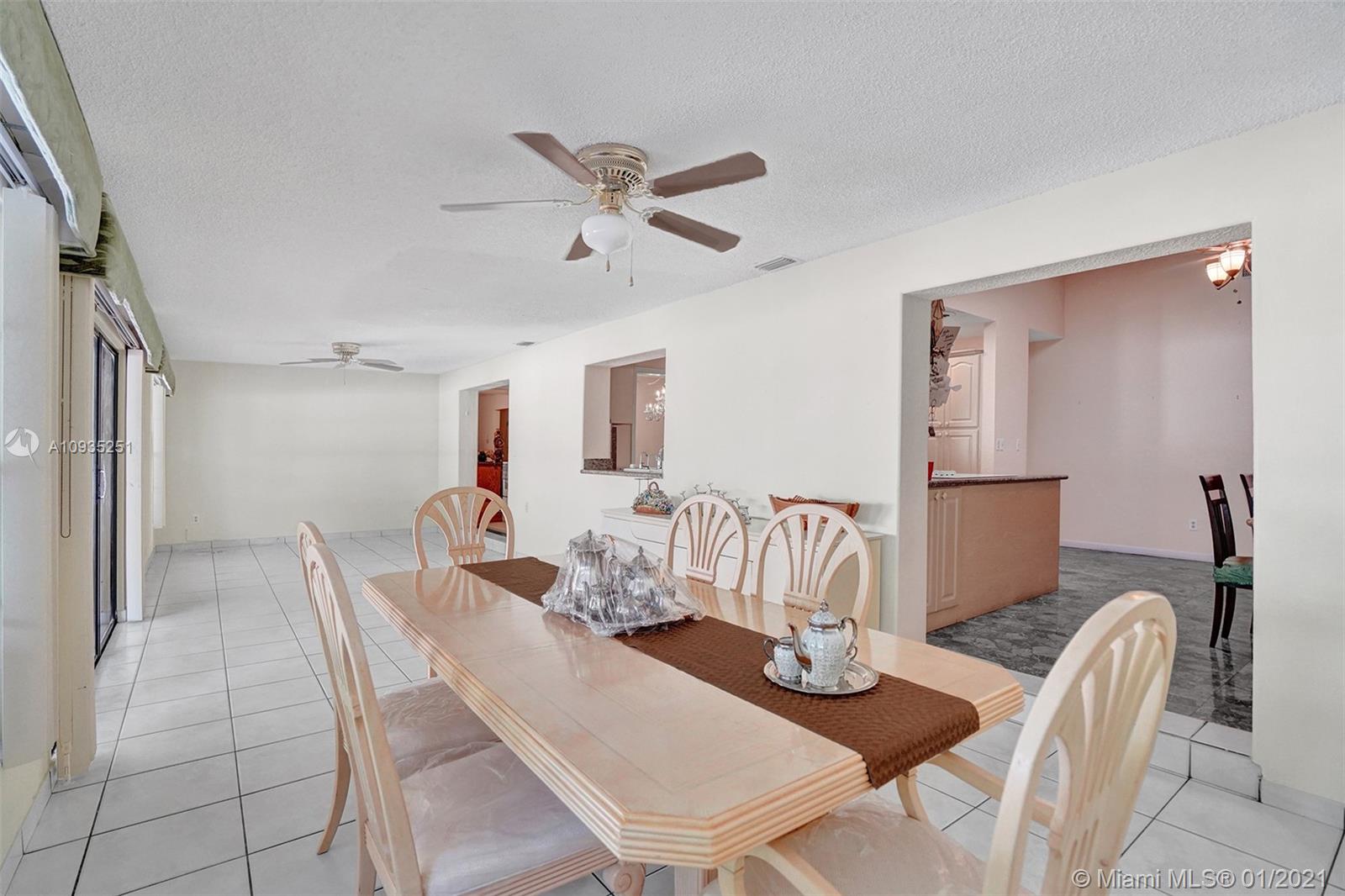 NO homeowners Association! Almost an ACRE of manicured landscaping and fruit trees surround this 4 bedroom, 3 full bath home with formal living and dining rooms, family room and covered patio to the pool and spa! Newer garage door, hurricane protection, marble floors in main living area. All 3 bathrooms newly remodeled, garage being used as a commercial type kitchen but can easily be revised back into a garage or office for your business. BRICK WOOD FIRED Pizza oven shipped directly from Italy and included in sale. Many Fruit Trees on the property. Plenty of room to let your imagination expand especially if you have a business or just a big family! dining room light fixture does NOT convey