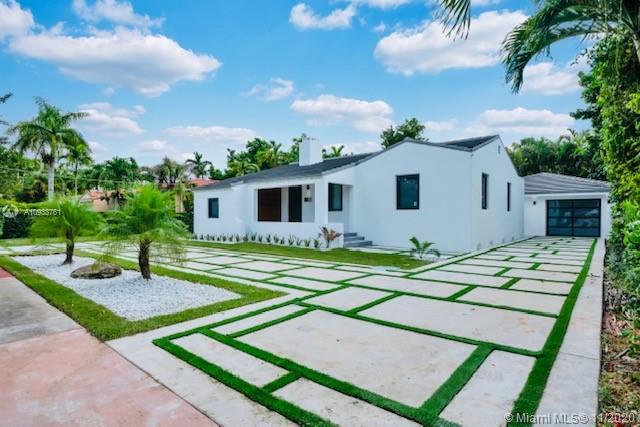 Stunning 4 bedroom, 2 bathroom home with detached 1 bedroom/1 bathroom guest suite and garage on quiet Coral Gables street with "no thru" traffic! This open concept home is perfect for entertaining! Extensive renovations include gorgeous kitchen with quartz countertops and new stainless steel appliances, carrara marble tile in main home bathrooms, all new impact windows and doors, AC, and electrical...and last but not least, an amazing driveway that gives this home the wow factor! 7500 sq ft lot with room for a pool. Come see for yourself all the details that this home has to offer!