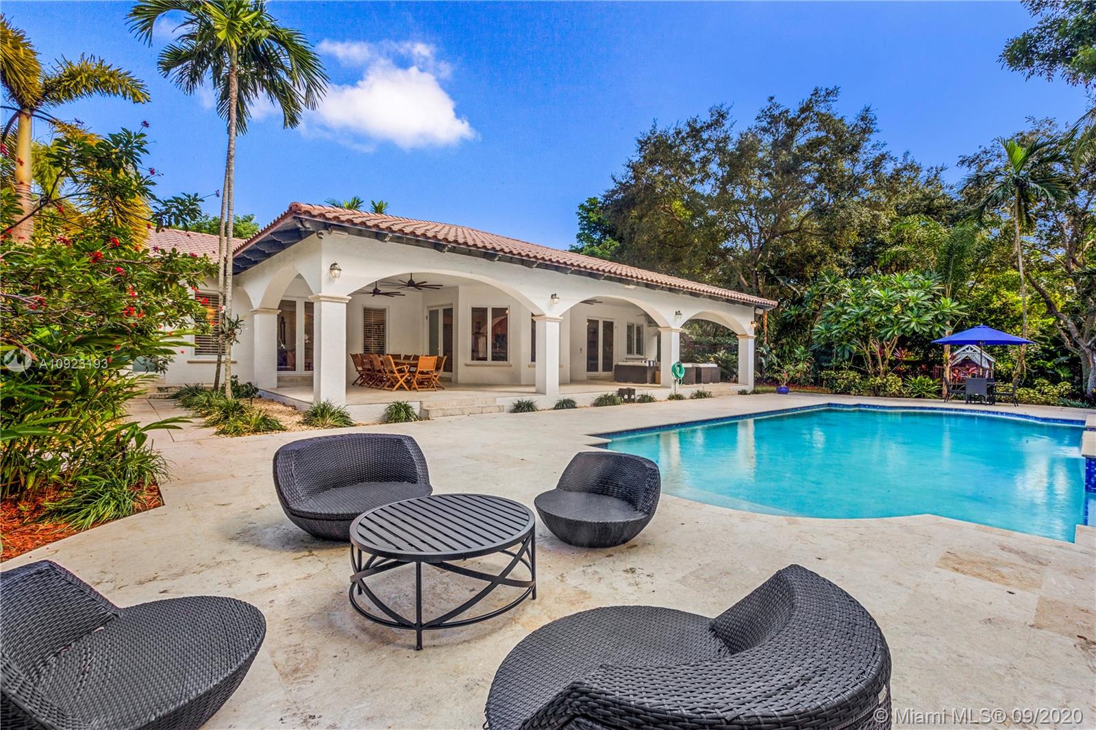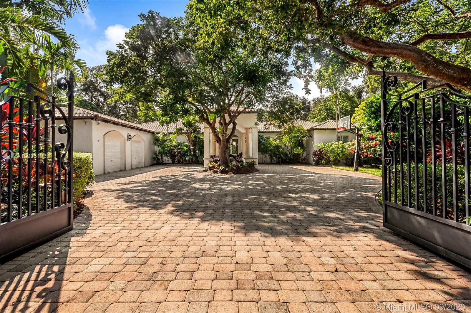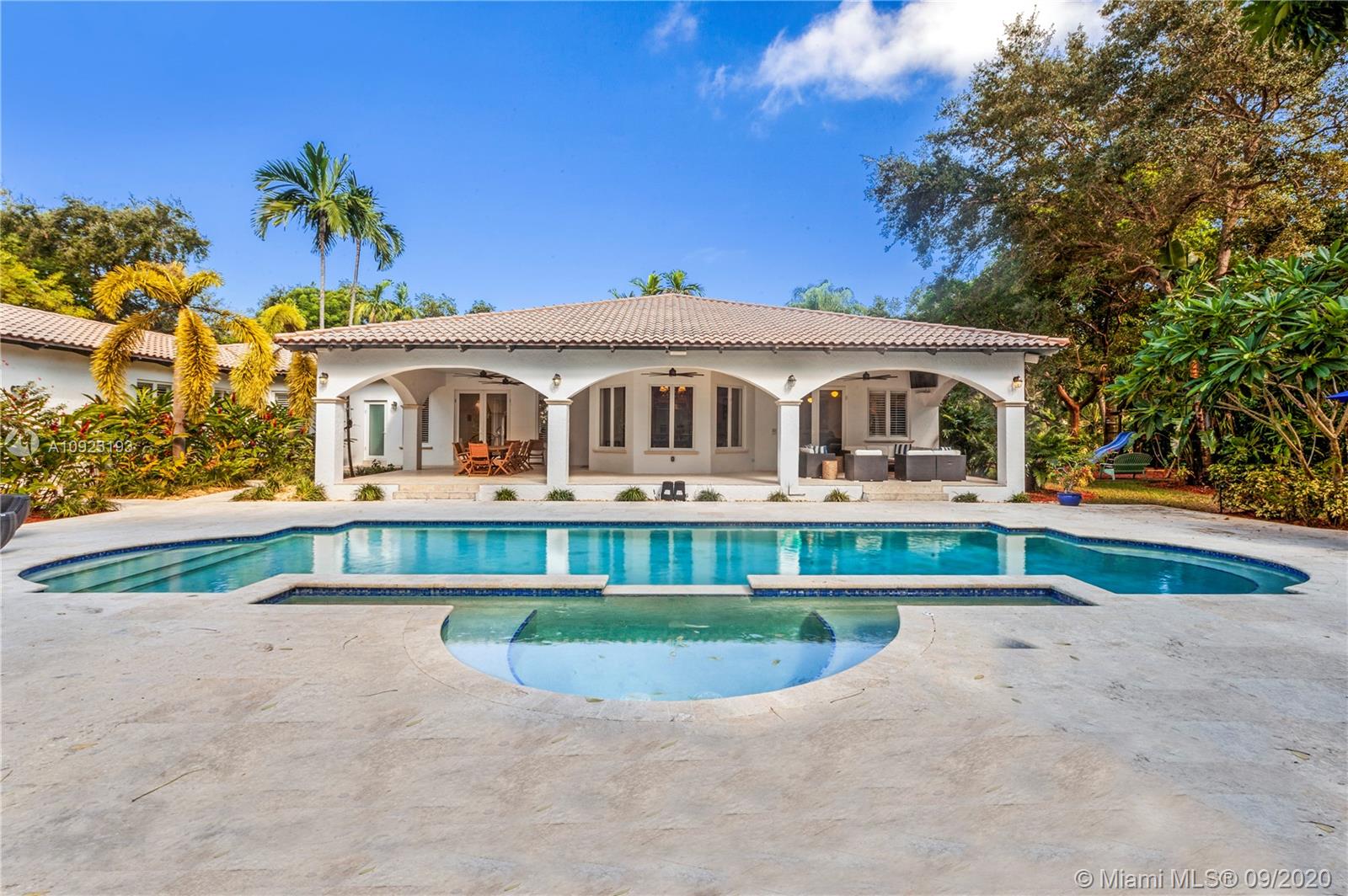 Find your way to this meticulously maintained Pinecrest retreat on highly desirable Moss Ranch Road. Behind the gates, you will find a lush tropically-landscaped property with over-sized heated pool, expansive covered porch, large patio and your own playground nestled in the trees. The 5BR/4.5BA home features an expansive ensuite bedroom with a sitting area and private office, formal dining room, family/media room with HD projector and screen, large chef's kitchen with seating, ensuite guest or staff bedroom, over-sized 2 car garage, separate laundry and utility. Impact windows and doors throughout and whole home generator with 1000 gallon tank. Freshly painted interior and exterior.