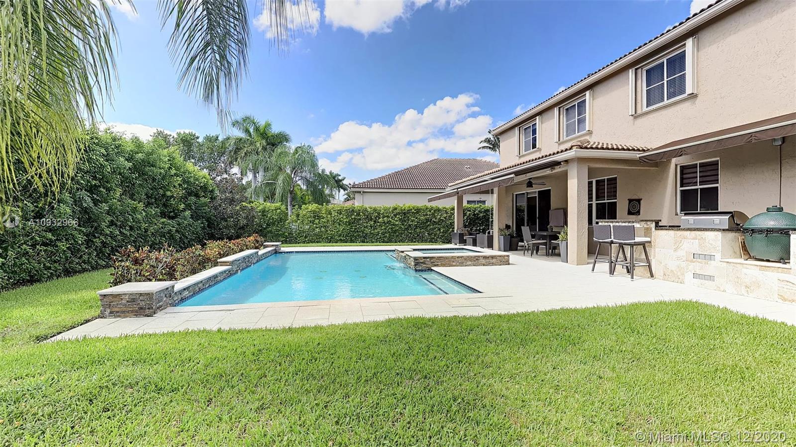 Welcome home to this amazing property located in the desirable gated community of Savannah. A two story home with vaulted ceilings, 5 bedrooms, 3.5 bathrooms, The kitchen was totally remodeled with Italian style custom made cabinets, exotic marble countertops and stainless steel appliances. Pool deck has a temperature stable stone pool deck, full out door kitchen, it has multi level platforms, raised spa, salt water pool system, exquisitely designed with plenty of space for entertaining, two car garage, accordion hurricane shutters. This house was upgraded  with impeccable taste in a  very exclusive community, with a children's playground, beautiful lakes, and 24hrs Security. community gym,  A+Schools, shopping centers, parks, major highways and main streets.