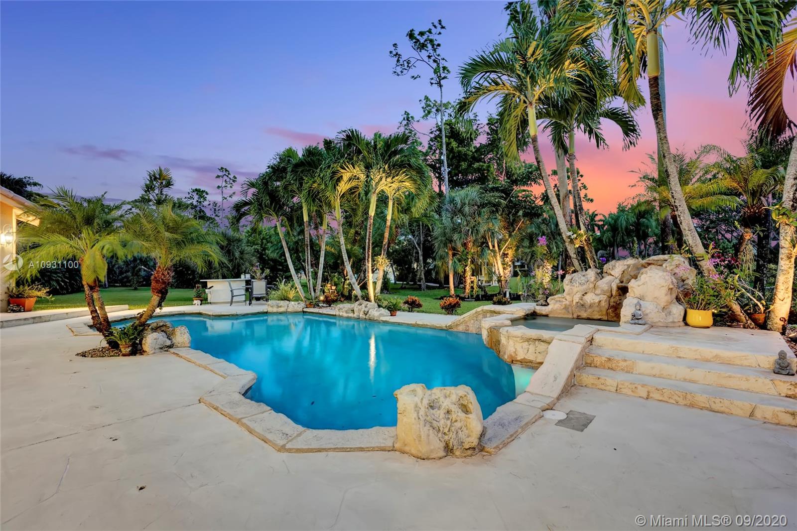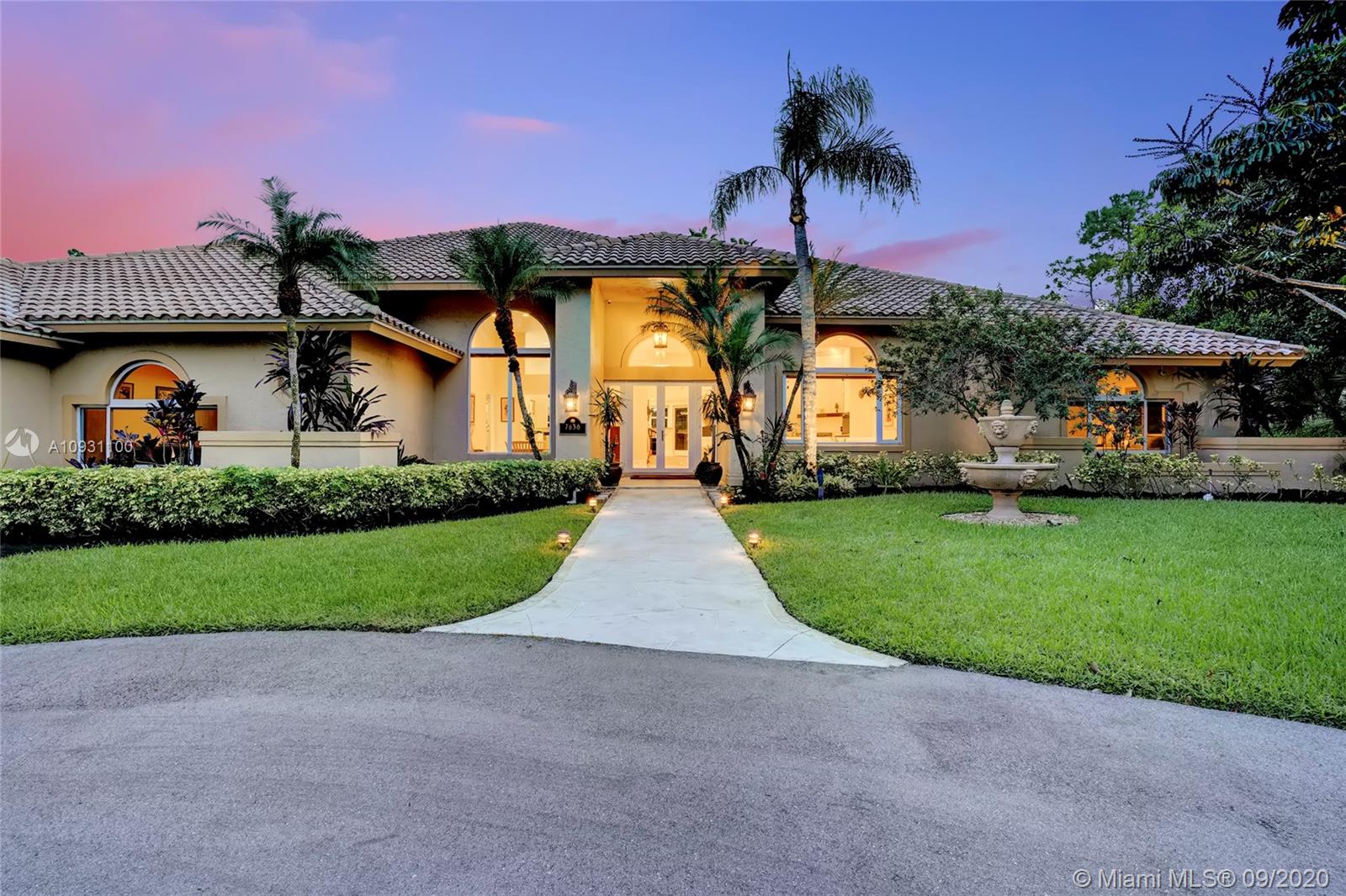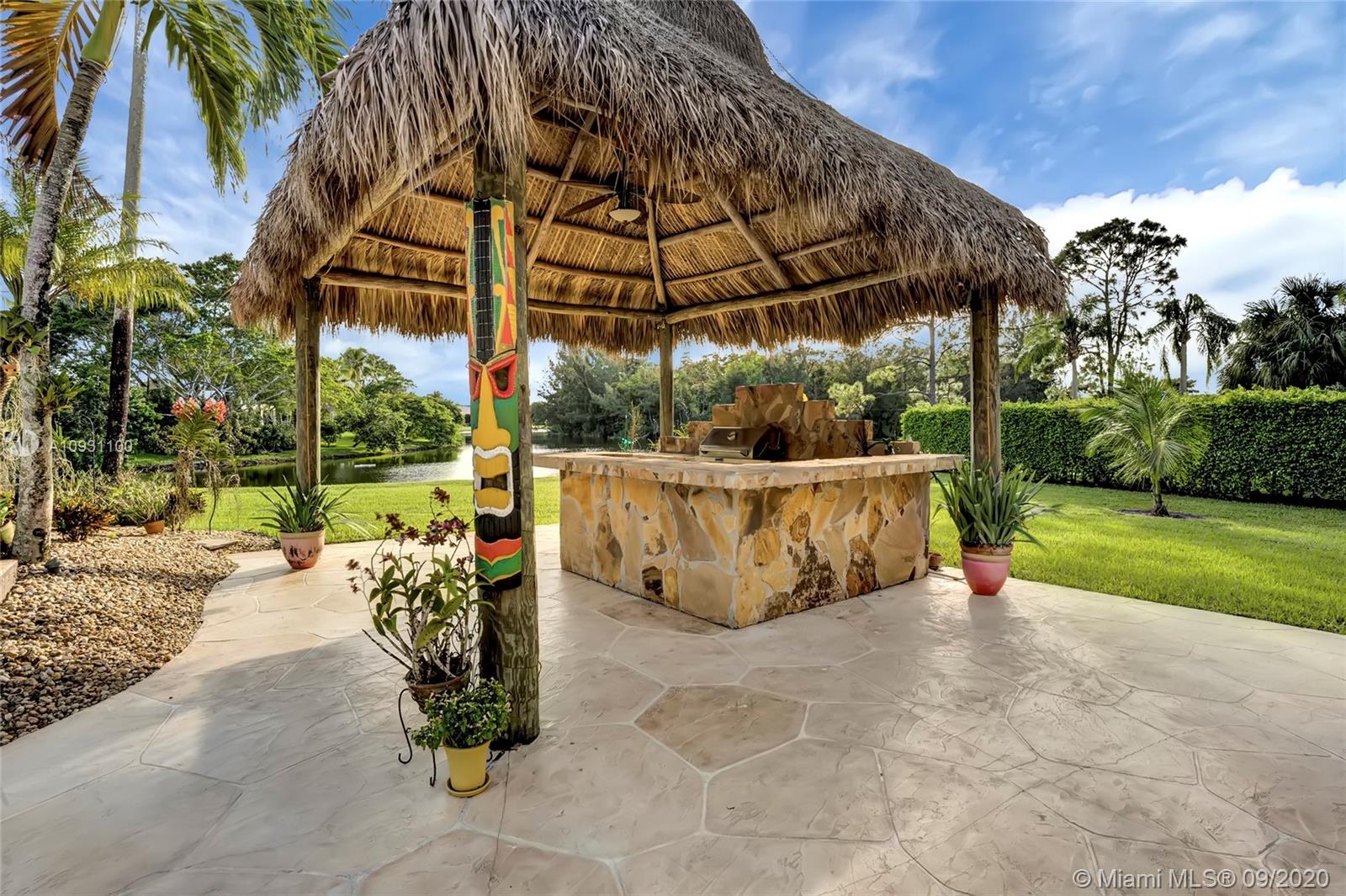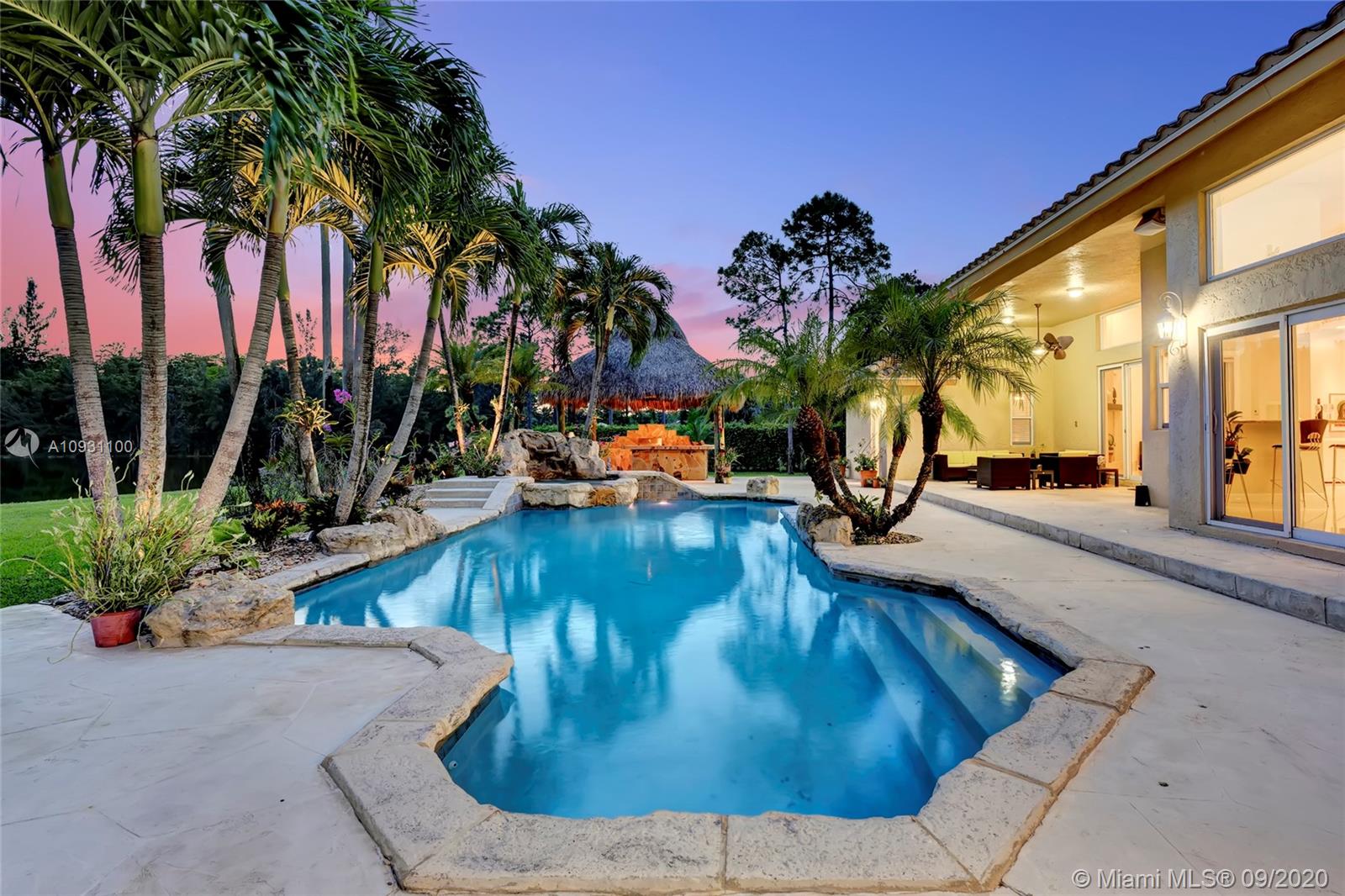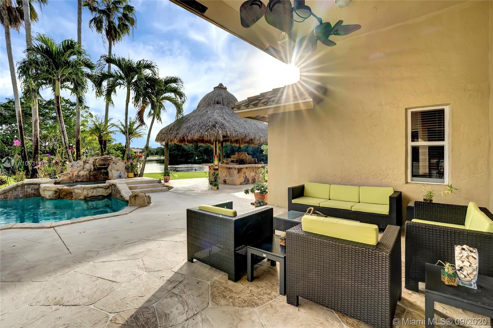 Located in prestigious Whispering Woods, this 4,600 sqft residence features 5 bedrooms, 4.5 bathrooms and a 3-car garage. One of its most breathtaking attributes is the outdoor space and view! Showcasing an exquisite custom pool with spa and waterfall, the lushly landscaped 1-acre lot opens onto a wide, tranquil lake. This spectacular home brings together the perfect blend of indoor outdoor living, complete with Tiki Hut and Summer Kitchen. With its unique ability to function as an intimate home for a family as well as an ideal space to entertain large gatherings, the triple split floor plan features an expansive open concept layout in an elegant transitional style. Other features include a wet bar, 2014 roof, all impact windows and doors, and newer AC units and soaring 16 ft ceilings.