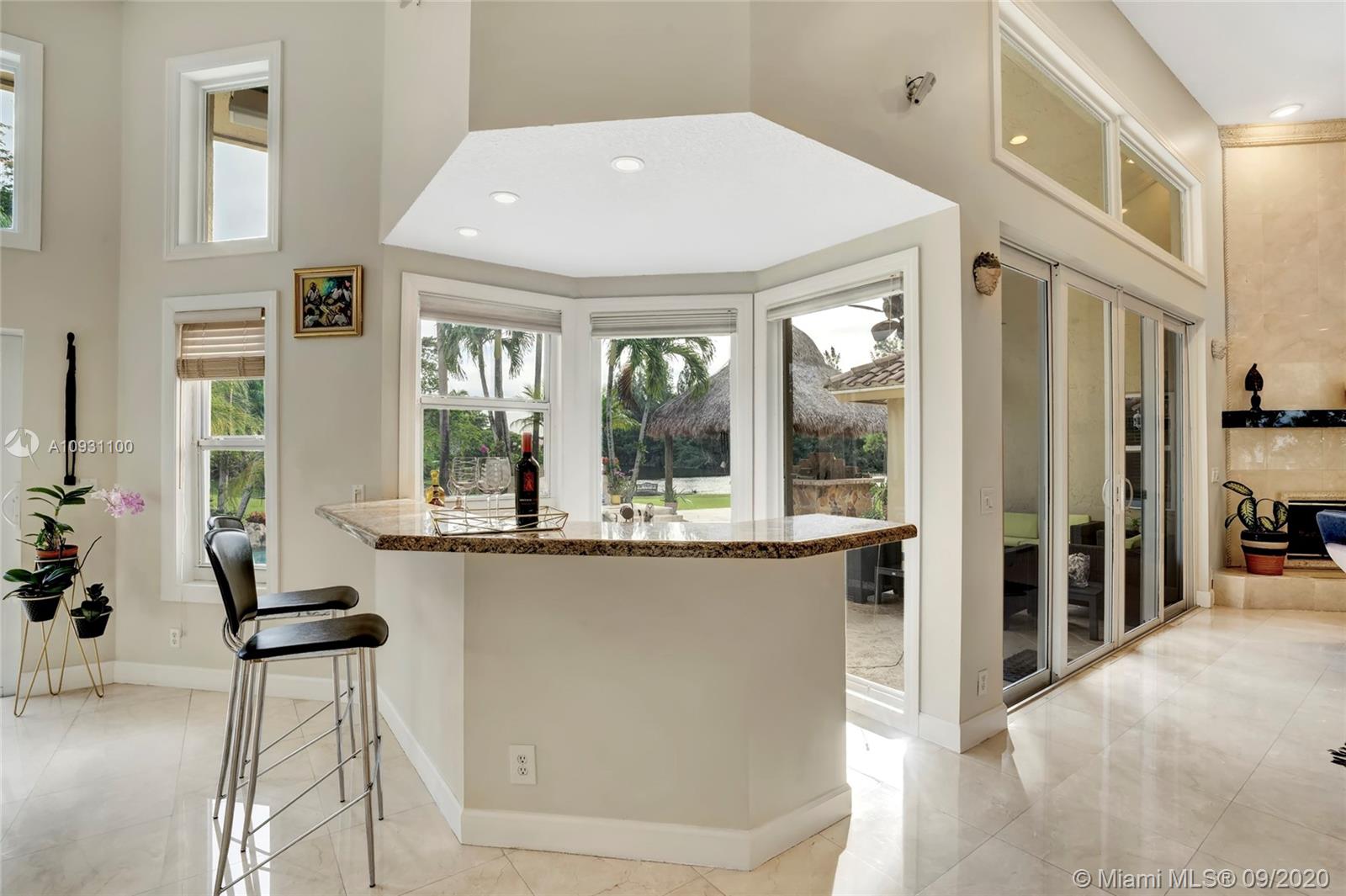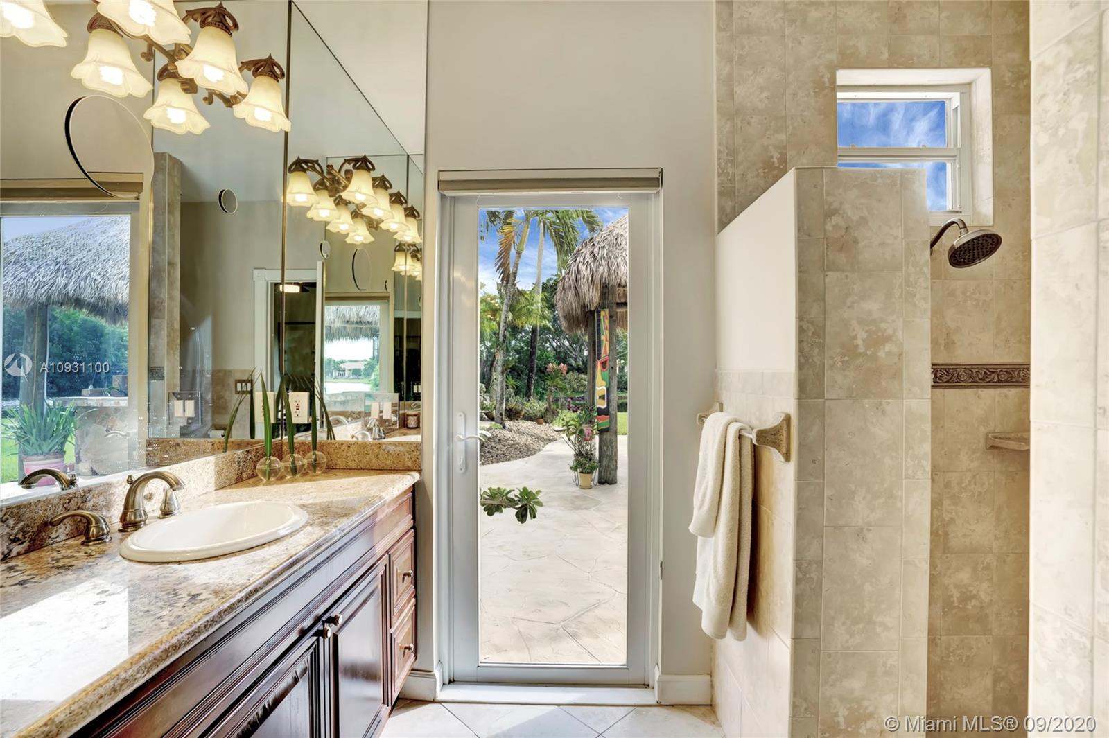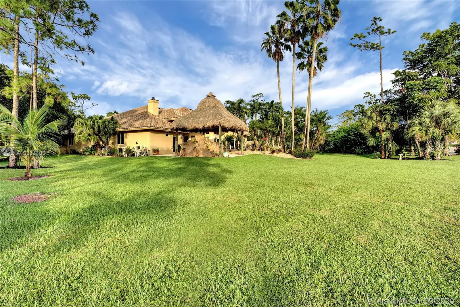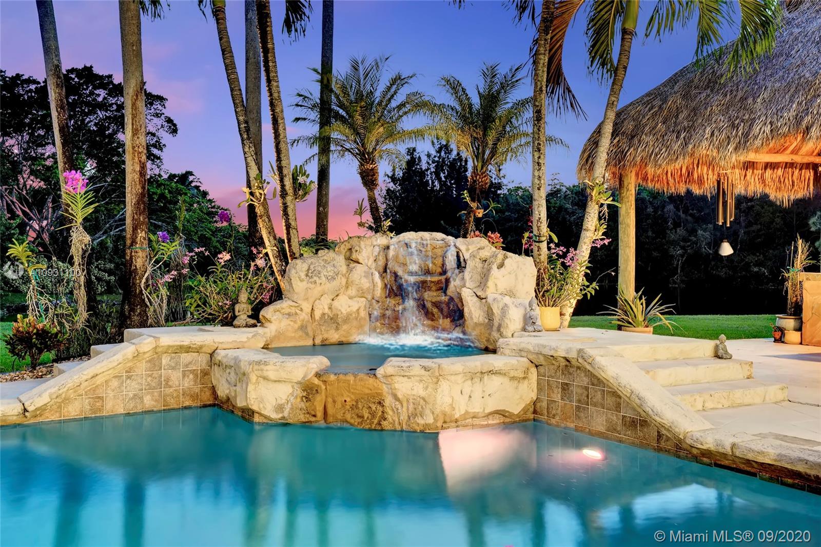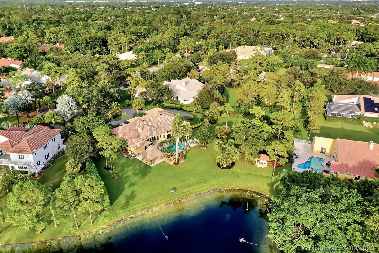 Located in prestigious Whispering Woods, this 4,600 sqft residence features 5 bedrooms, 4.5 bathrooms and a 3-car garage. One of its most breathtaking attributes is the outdoor space and view! Showcasing an exquisite custom pool with spa and waterfall, the lushly landscaped 1-acre lot opens onto a wide, tranquil lake. This spectacular home brings together the perfect blend of indoor outdoor living, complete with Tiki Hut and Summer Kitchen. With its unique ability to function as an intimate home for a family as well as an ideal space to entertain large gatherings, the triple split floor plan features an expansive open concept layout in an elegant transitional style. Other features include a wet bar, 2014 roof, all impact windows and doors, and newer AC units and soaring 16 ft ceilings.