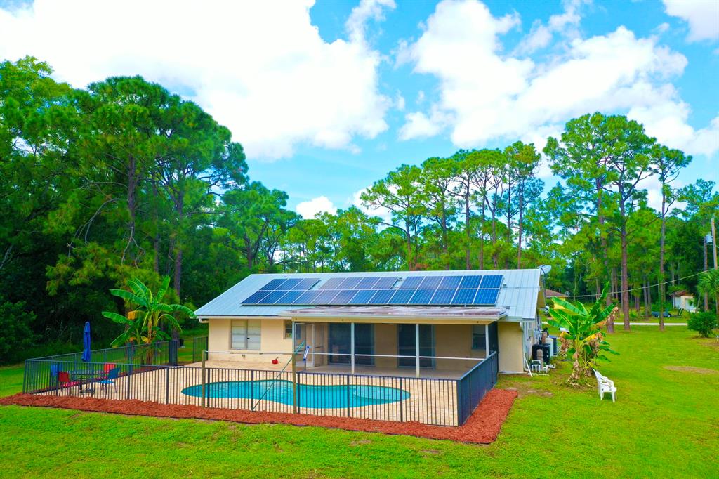 AMAZING HOME WITH ALL NEW HIGH TICKET ITEMS !!! *** 1.2 ACRES *** NO HOA *** NEWER POOL *** NEWER METAL ROOF WITH 50 YEAR TRANSFERABLE WARRANTY *** NEWLY INSTALLED WHOLE HOUSE SOLAR POWER - PAY VERY MINIMAL LIGHT BILL *** GREAT SAVINGS FOR THE NEXT 15 YEARS !! ** NEWER AC *** THIS FABULOUS 3 BEDROOM 2 BATHROOM FENCED POOL HOME WITH SCREENED BACK PATIO IS PRICED RIGHT !!!! **** REMODELLED KITCHEN WITH GRANITE, STAINLESS STEEL APPLIANCES. MASTER SUITE WITH WALK IN CLOSET, REMODELLED BATHROOM AND SITTING AREA. THIS BEAUTY BOASTS HUGE FAMILY ROOM WITH RELAXING VIEW OF NEWER POOL !! *** CIRCULAR DRIVEWAY ** MINUTES TO SHOPPING, SCHOOLS, BANKS, LIBRARY, HIGHWAY - ALL THE MODERN COMFORTS- AND EXTREME PRIVACY *** JUST THE PERFECT COZY AND CUTEST HOME. NO HOA- BRING YOUR