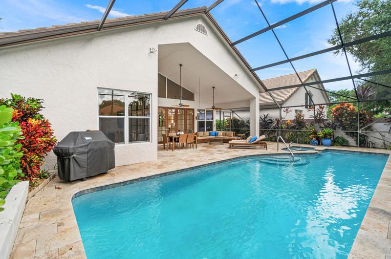 GORGEOUS POOL . NEW ON MARKET. Amazing light and bright 3 bedroom, 2 bath home with private heated pool in Whisper Trace. Two bedroom plus den. Meticulously maintained. Great paved pool deck with outdoor shower, heated pool with hot tub and new diamond bright. Tile floors throughout main areas of home. Remodeled kitchen with Stainless Steel appliances and granite countertop. New Kitchenaid dishwasher and new LG washer & dryer. GE cooktop ,oven, and microwave. Kitchenaid refrigerator is 2 years old. Remodeled bath with Horchow cabinet/sinks. Tropical landscape and travertine paver screened patio. Home features 5 ton Carrier AC (2019), new LED lighting , and upgraded window treatments. 5313 NW 21st Ave in Whisper Trace just sold for $467,000-EXACT MODEL