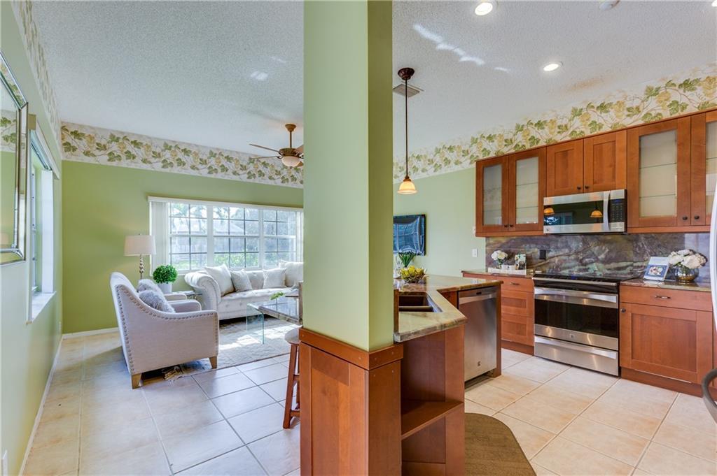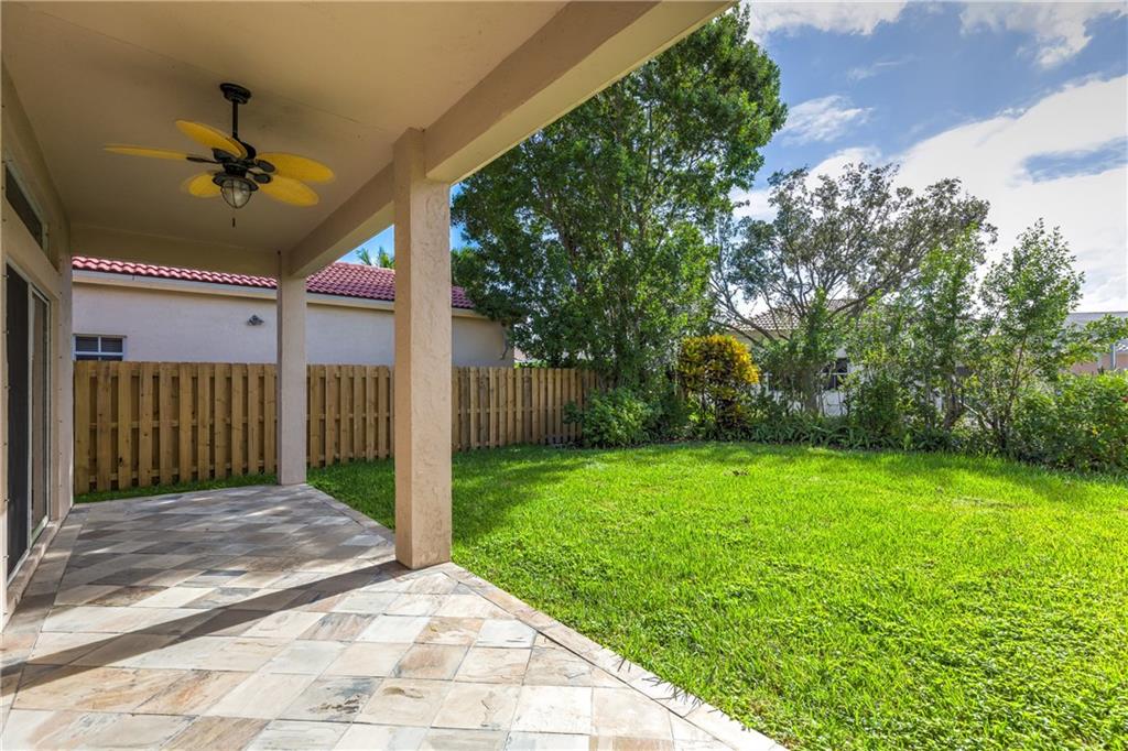 Beautiful home in desirable 24/7 guard gated Weston community of The Meadows. A paver driveway and front walkway greets you as you enter. 4 bedrooms, 2 1/2 bath one story home. Spacious family room and breakfast bar, in addition to formal dining room and living room. Split floor plan with 10 foot ceilings in living room. Neutral ceramic tile in social areas and baths, laminate in bedrooms. Walk-in closet in master. Very nice covered slate rear patio. Backyard has room for a pool! Large 20' x 20' two-car garage plus room for two cars on paver driveway. Guest bath was recently renovated. Beautiful updated kitchen with 42 inch wood cabinets, stunning quartzite counters and backsplash, under-cabinet lighting and stainless steel Kenmore Elite appliances.