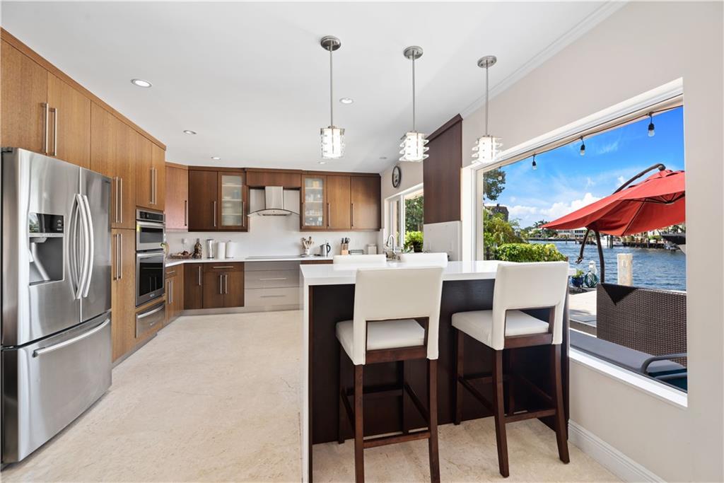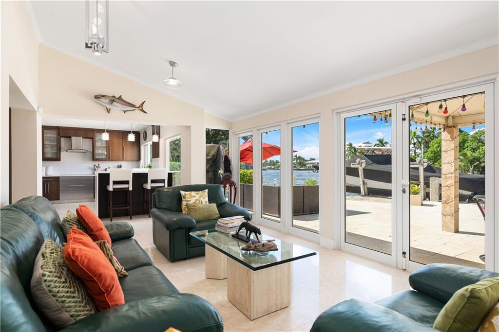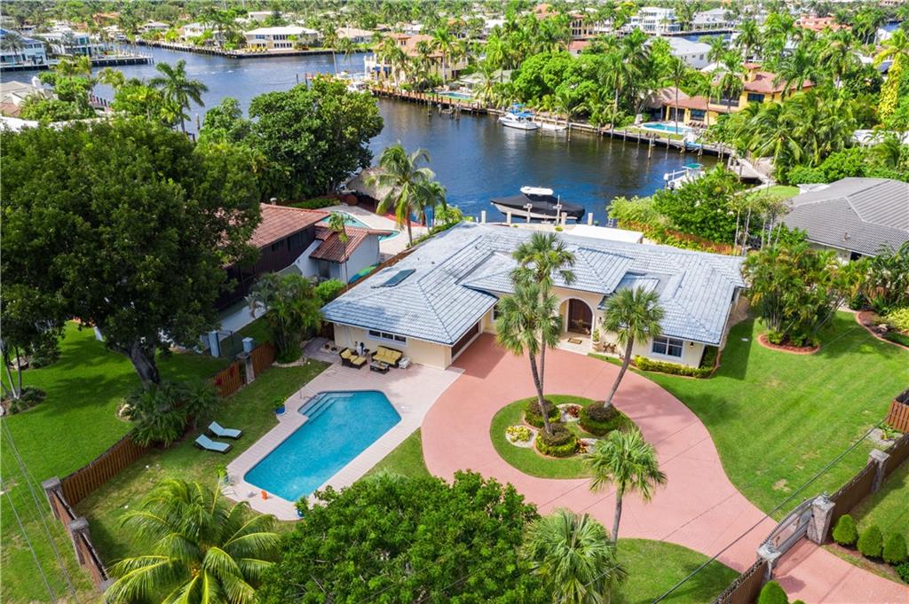 Direct Intracoastal Views from this Oversized 1/2 Acre lot on the 200' Wide Canal in Dolphin Isles. Approx 50 Ft Waterfront with 5 Ft Set-Backs. Walled & Electric Gated with Lots of Privacy. Re-Built Circa 2014 to Includes Additional 500 Sq Ft. New Concrete Dock. Solar Hot Water. 15,000 Lb Boat Lift. Impact Glass. Newer Roof. Marble Floors. Plumbing & Electric Upgrades. Egyptian Stone Patio Area has Covered Awning. Four Bedrooms + Den/Office. Walk Directly Three Blocks East to the Ocean or Walk to Birch Park. Master BR: Wide Plank Wood Floors & Walk-In Closet w/Built-Ins. Kitchen: Solid Wood & Stainless Steel Appliances. The family room has 10 Ft Ceilings & Bar Area. Floor Plan Attached. Matterport Virtual Tour: https://my.matterport.com/show/?m=XMqFeVHpuHH&mls=1